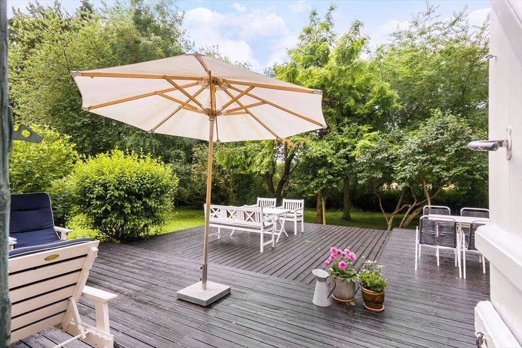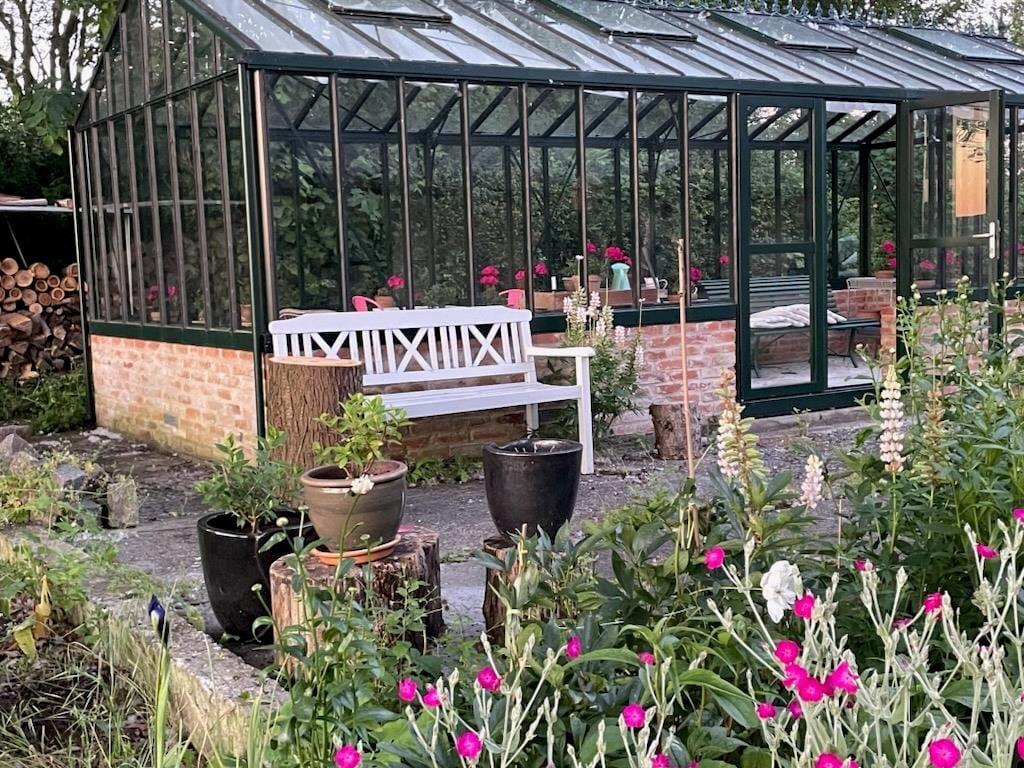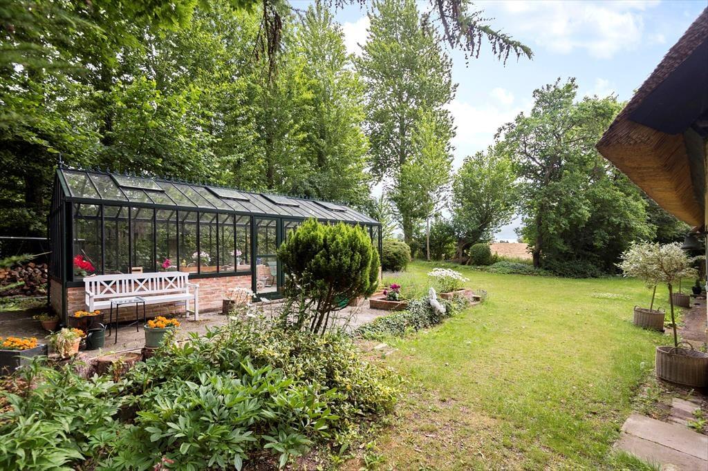 I den dejlige store ugenerte have, kan I nyde de varme dage og lune aftner, og her er et fint orangeri hvor I kan trække ind hvis duggen falder og er der noget bedre end at sidde og nyde mørket og roen med et glas vin eller en god kop te eller kaffe? Her finder I både plads til hygge, afslapning og natureventyr. Fra huset har I udkig til åbne marker og skøn natur.