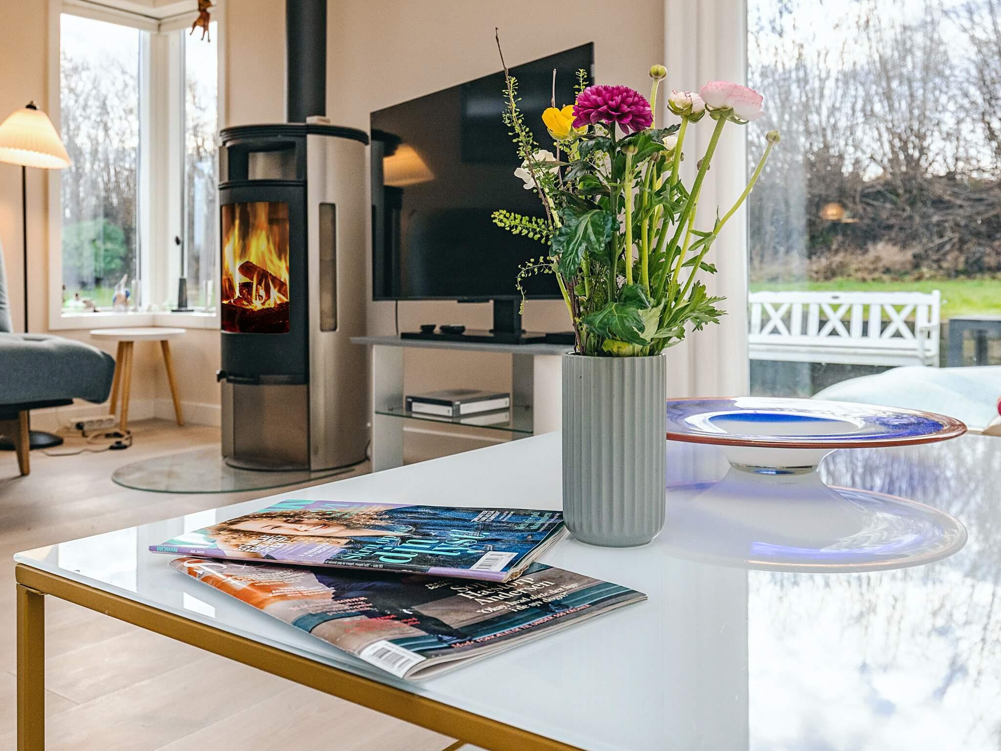 1 Opholdsstue: Brændeovn, tv, høj stol