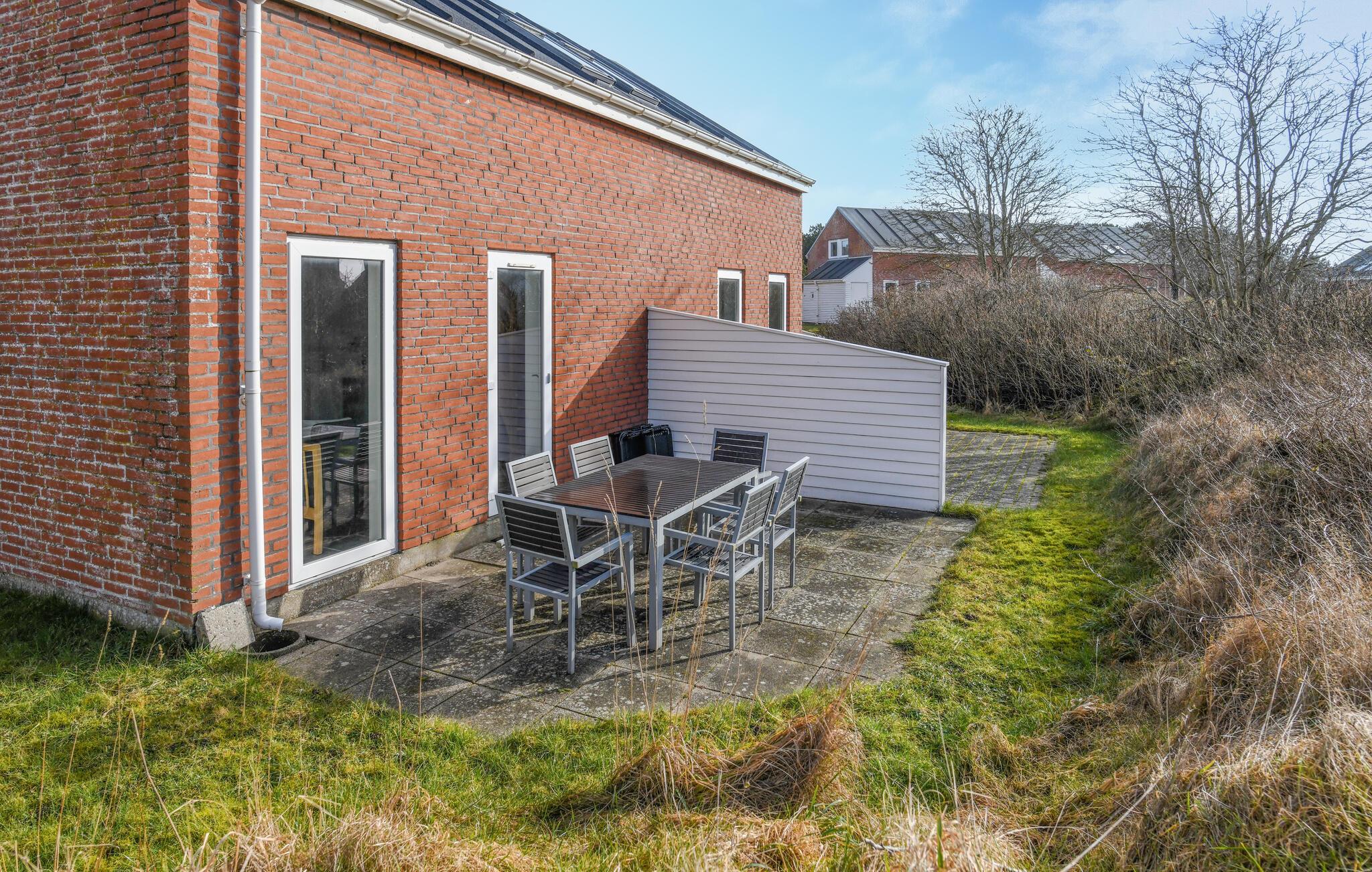 Udenfor er der et lille terrasseområde med havemøbler. Her kan I nyde livet og mærke den friske brise fra Vesterhavet. Slap af i solen eller nyd en hyggelig aften med familien. De rolige omgivelser tilbyder de perfekte rammer til at slappe af.