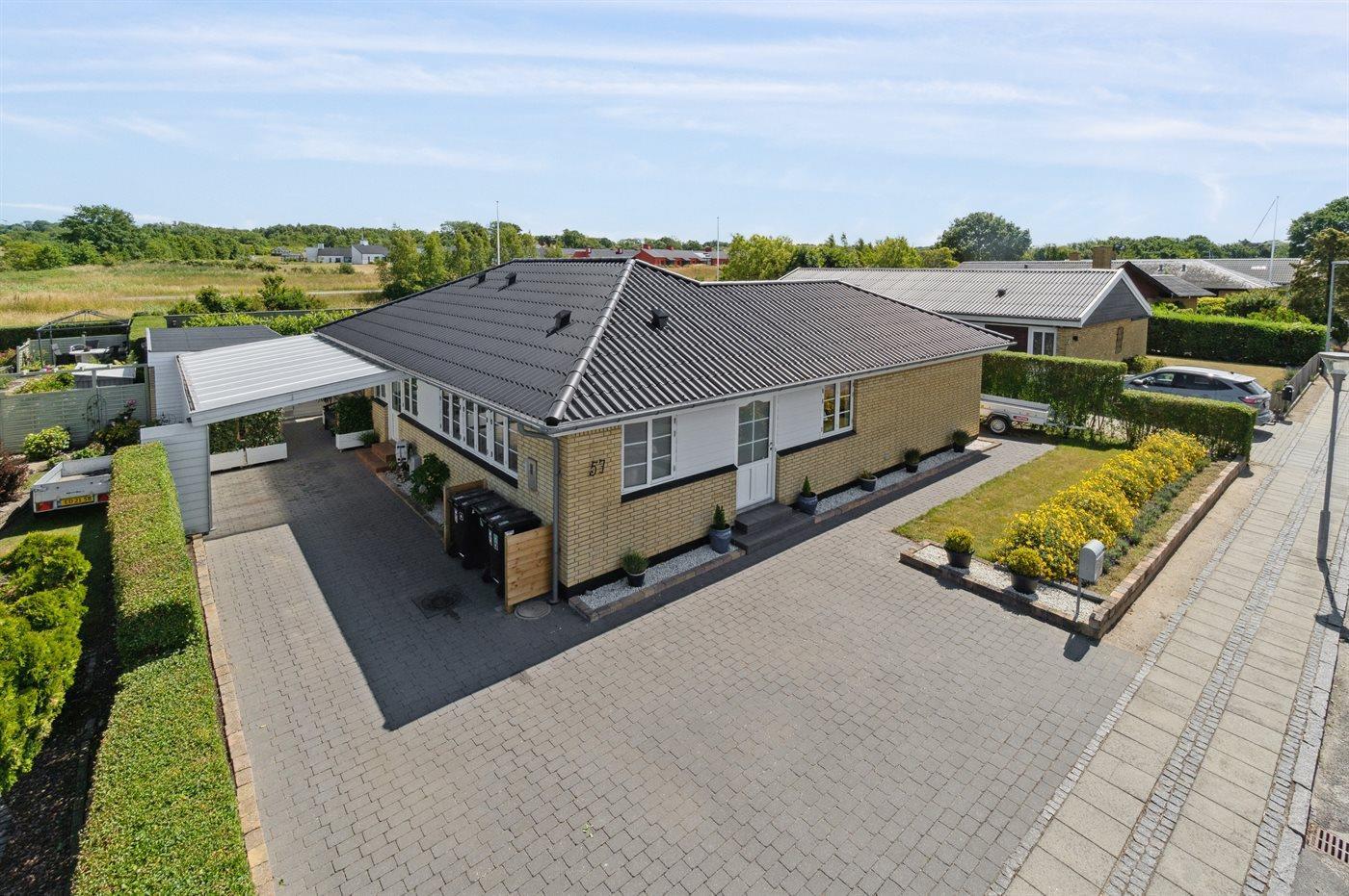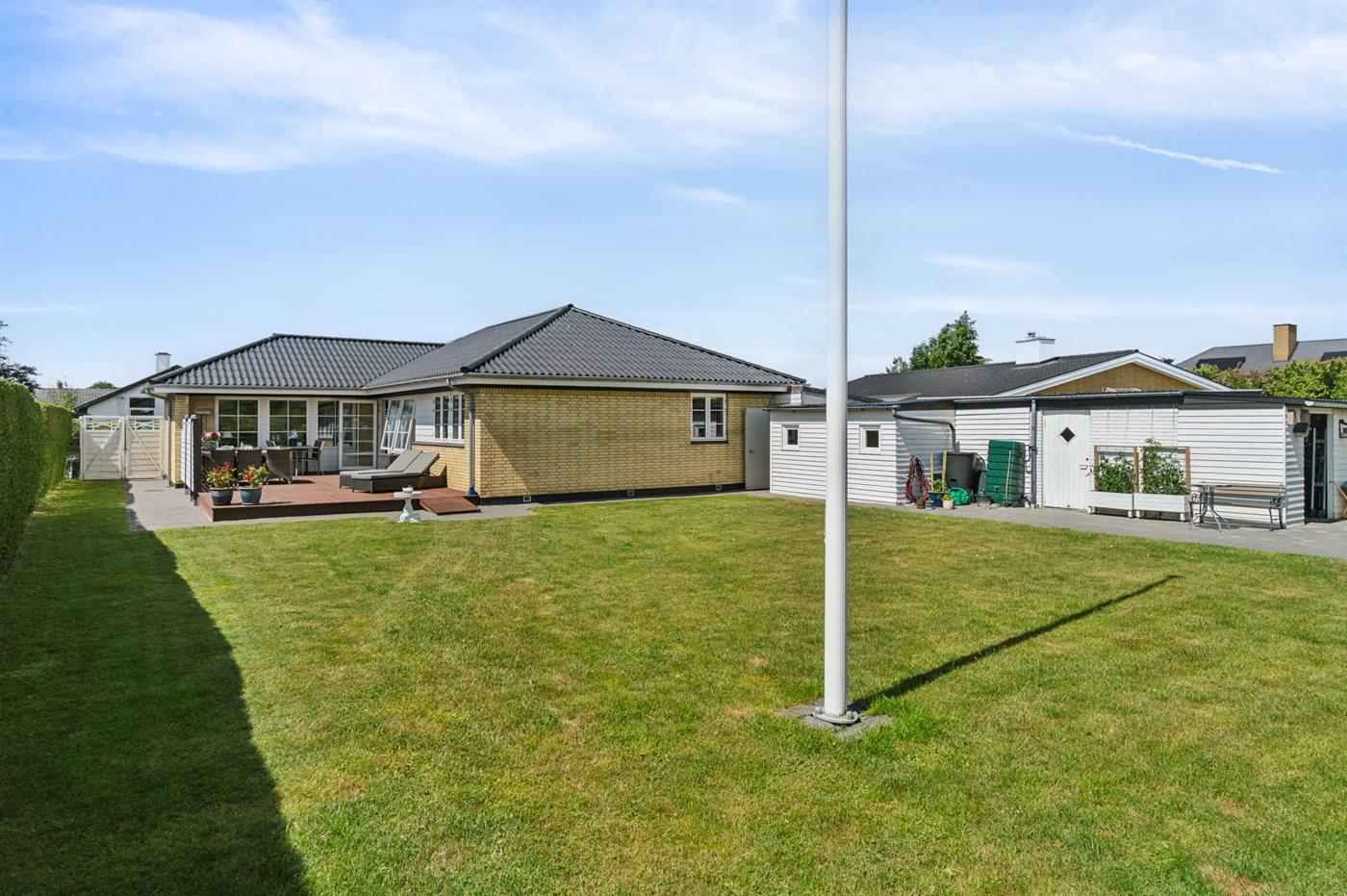 Ferieboligen er beliggende på en 800 m² stor naturgrund. Der er 1500 m til havet. Nærmeste forretning er beliggende i en afstand af 1500 m. Til ferieboligen hører åbent terrasseareal. Desuden er der overdækket terrasse. Der er installeret stik til opladning af elbil. Parkering ved ferieboligen.