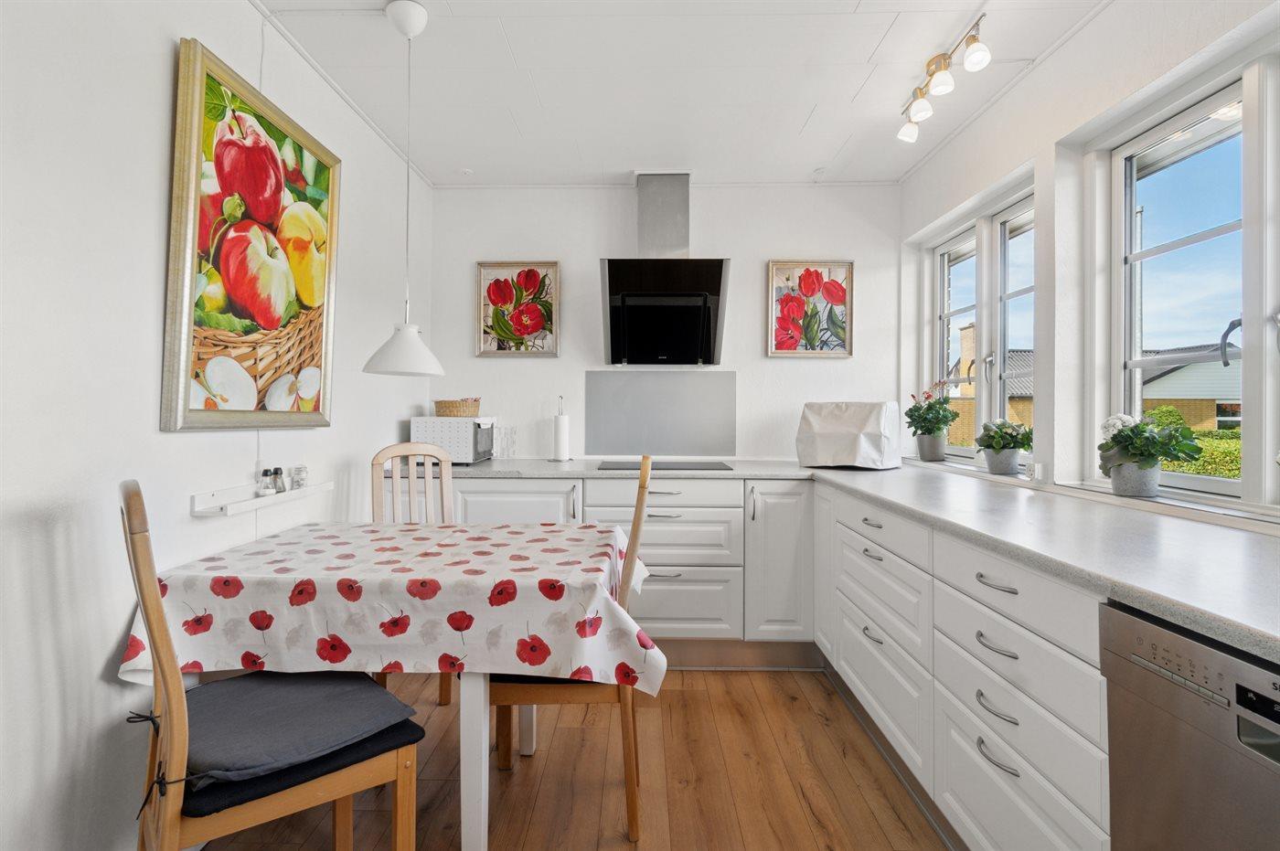 Køkkenet er udstyret med 1 køleskab. Der er 4 induktionskogeplader, varmluftovn, mikrobølgeovn samt opvaskemaskine.