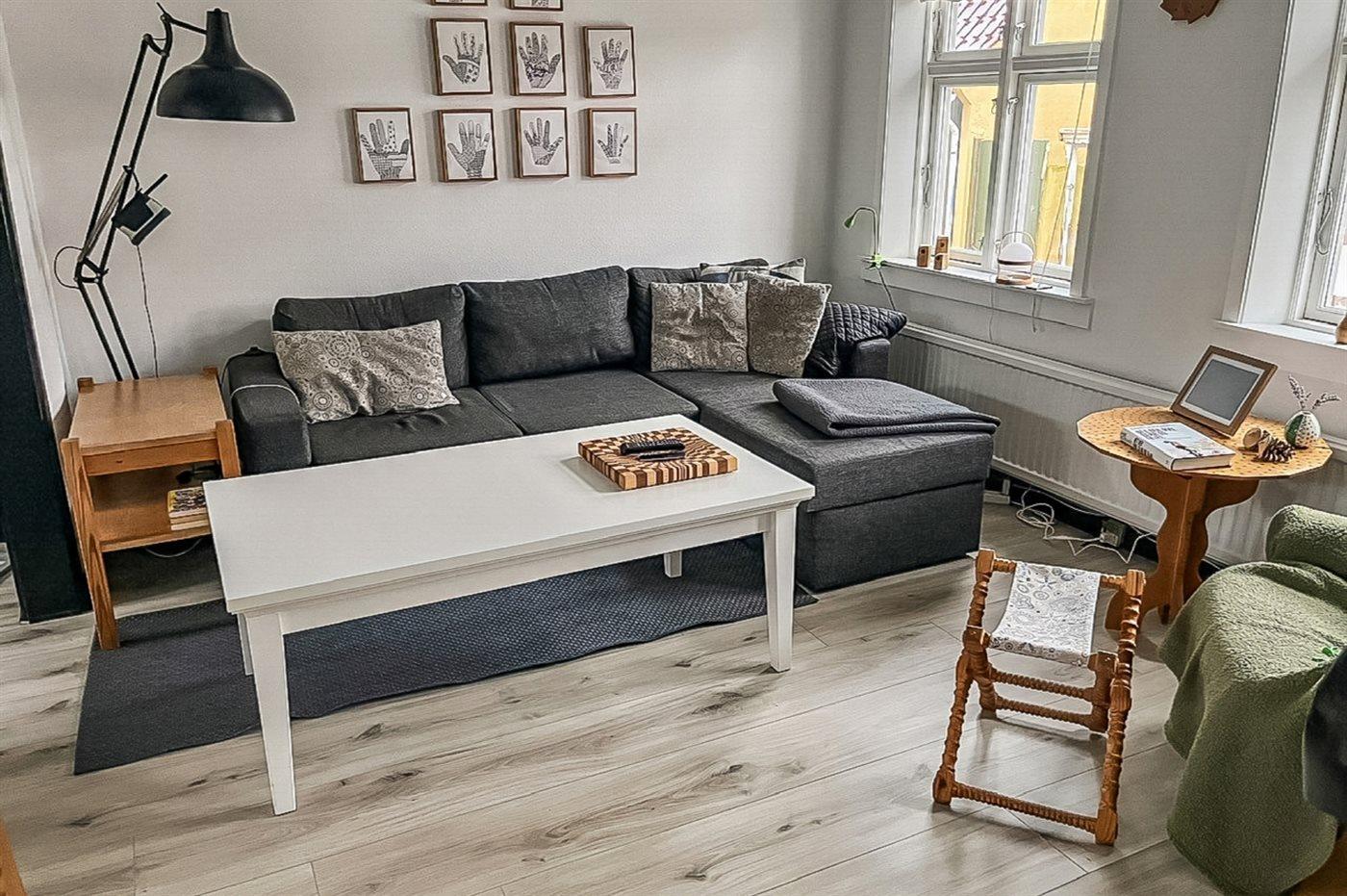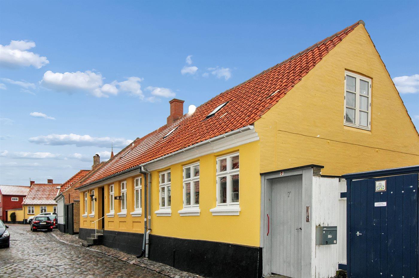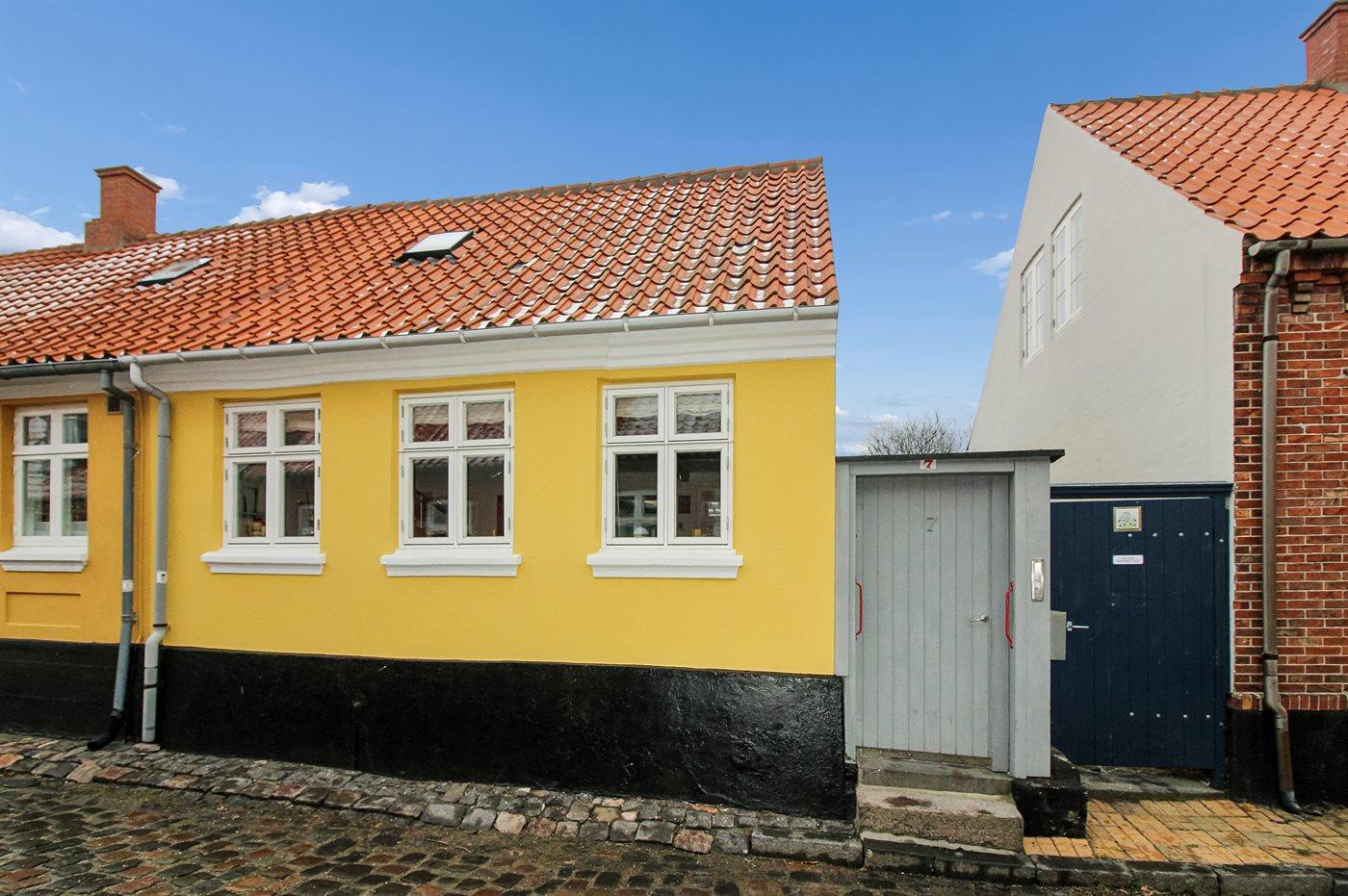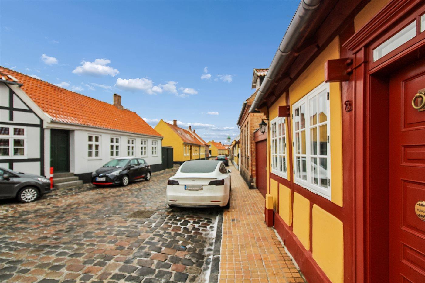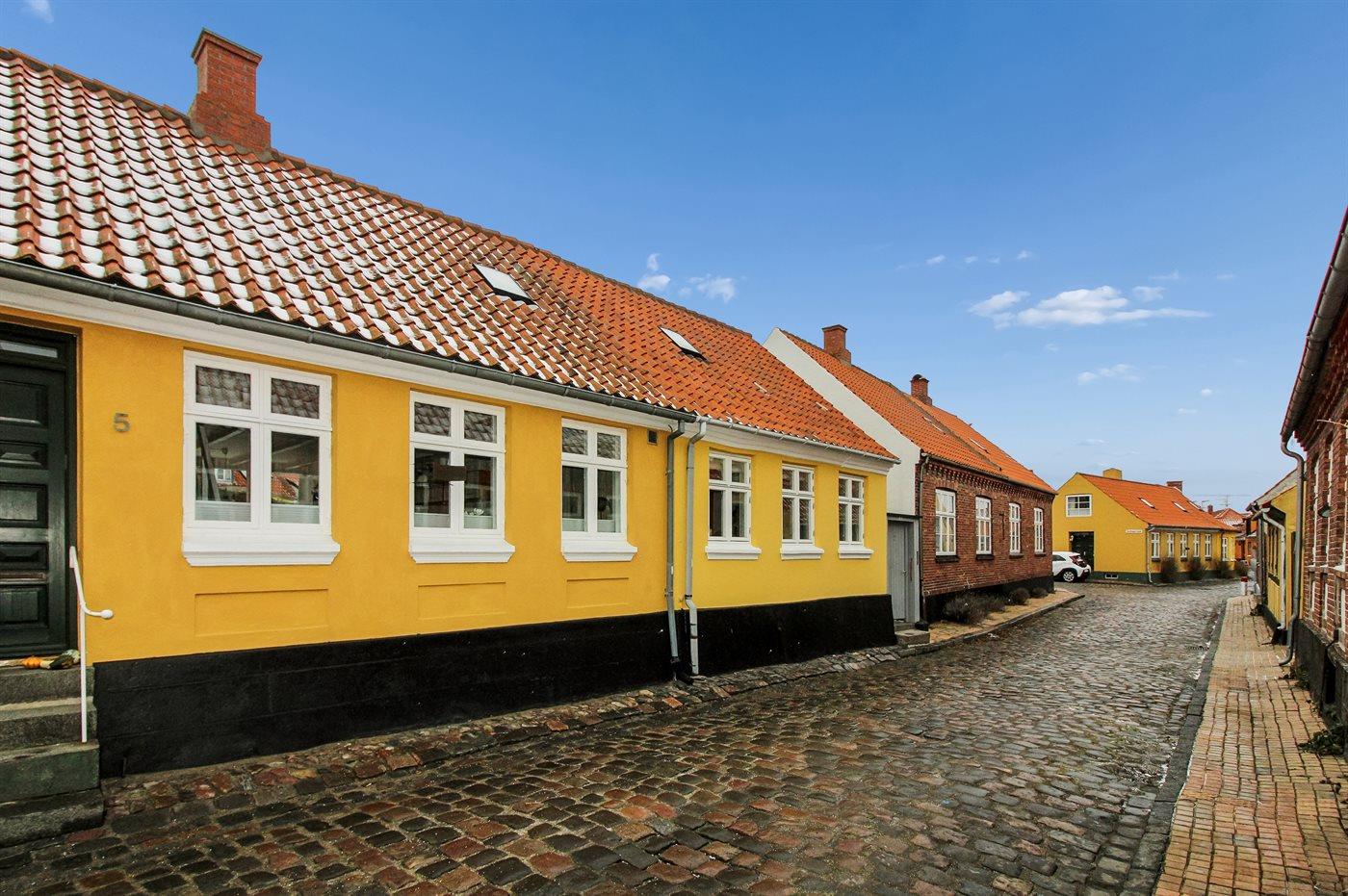 Hyggeligt byhus i Rønnes gamle bydel med charmerende gader, tæt på havn og torv, perfekt til en afslappende ferie på Bornholm.