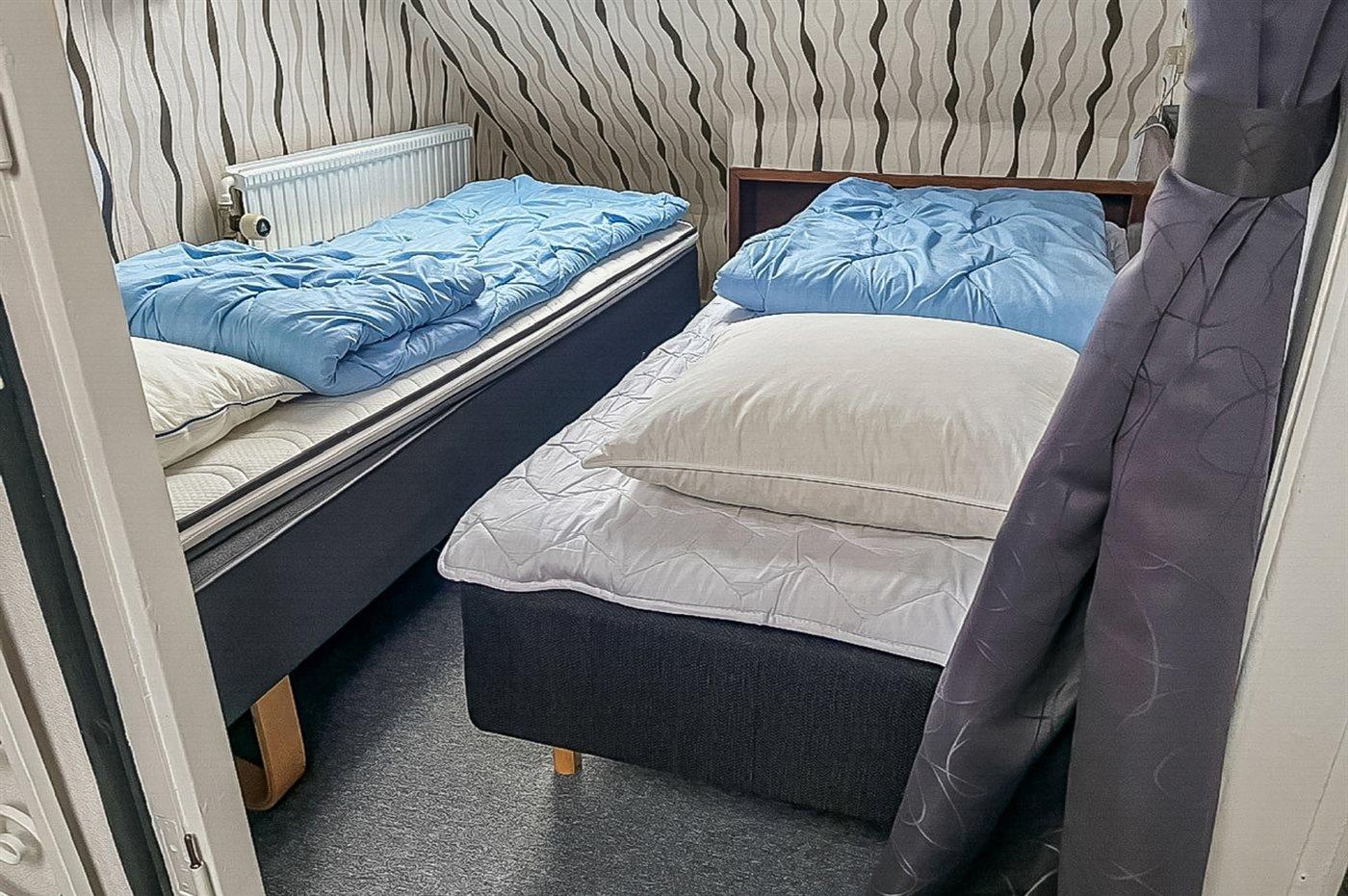 Der er i alt 2 soveværelser. Sovepladserne fordeler sig på: 2 sovepladser i dobbeltseng. 2 sovepladser i enkeltsenge. 2 sovepladser i sovesofa (dobbelt). 2 af disse sovepladser befinder sig i stuen.