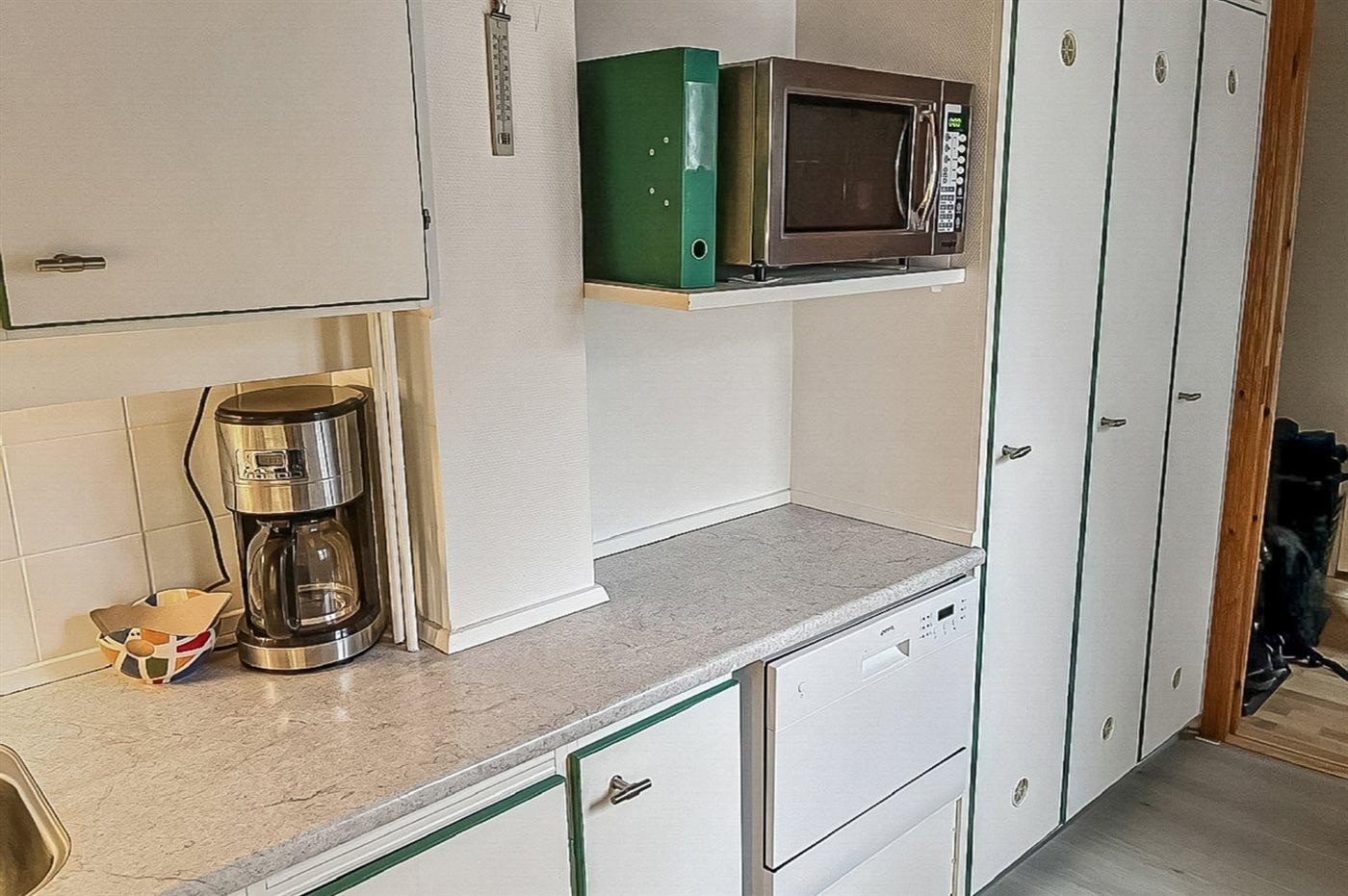Køkkenet er udstyret med 1 køleskab. Der er 4 keramiske kogeplader, varmluftovn, mikrobølgeovn samt opvaskemaskine.