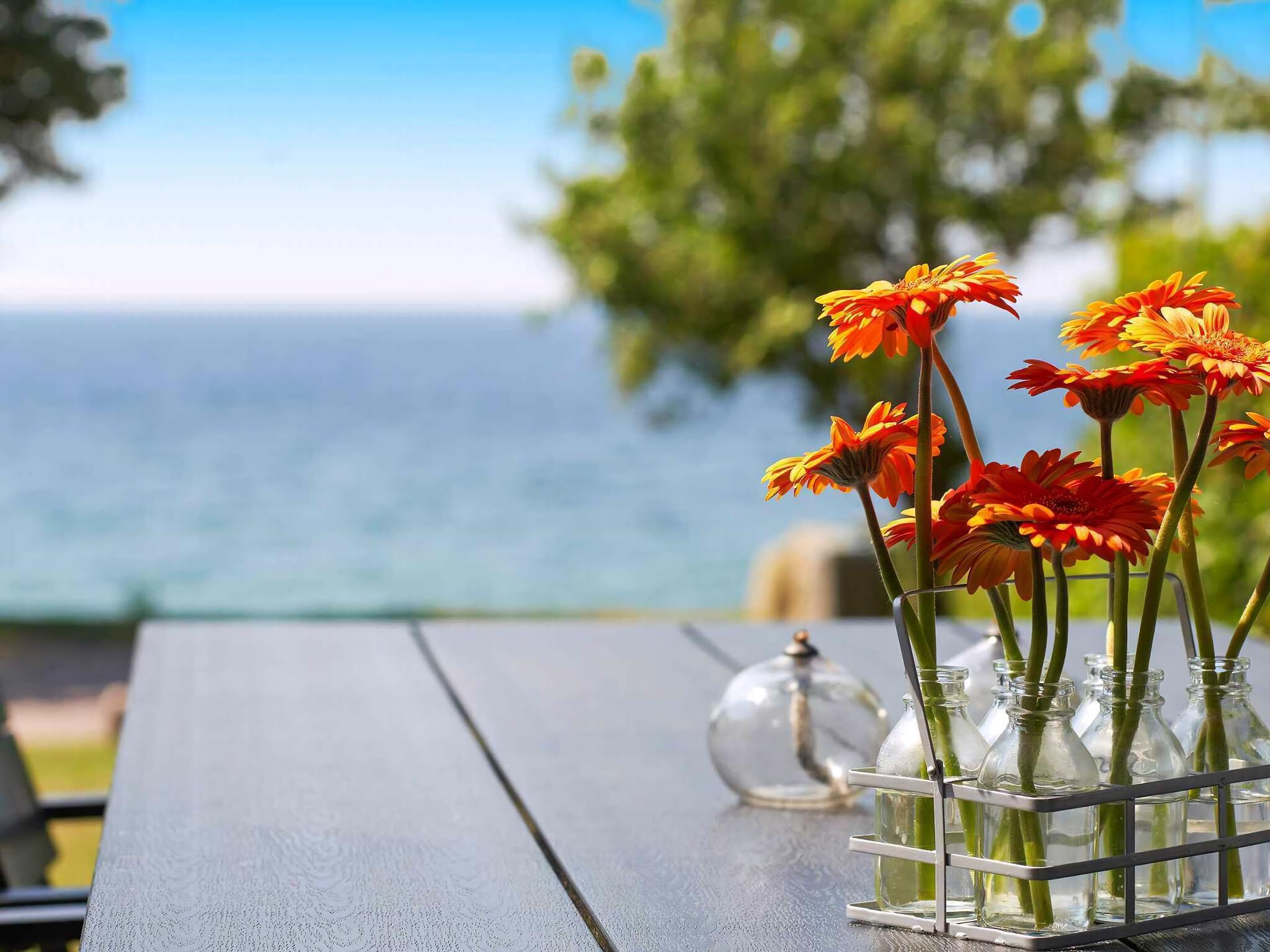 Moderne sommerhus fra 2021 med panoramaudsigt og direkte adgang til vandet nær Rønne.