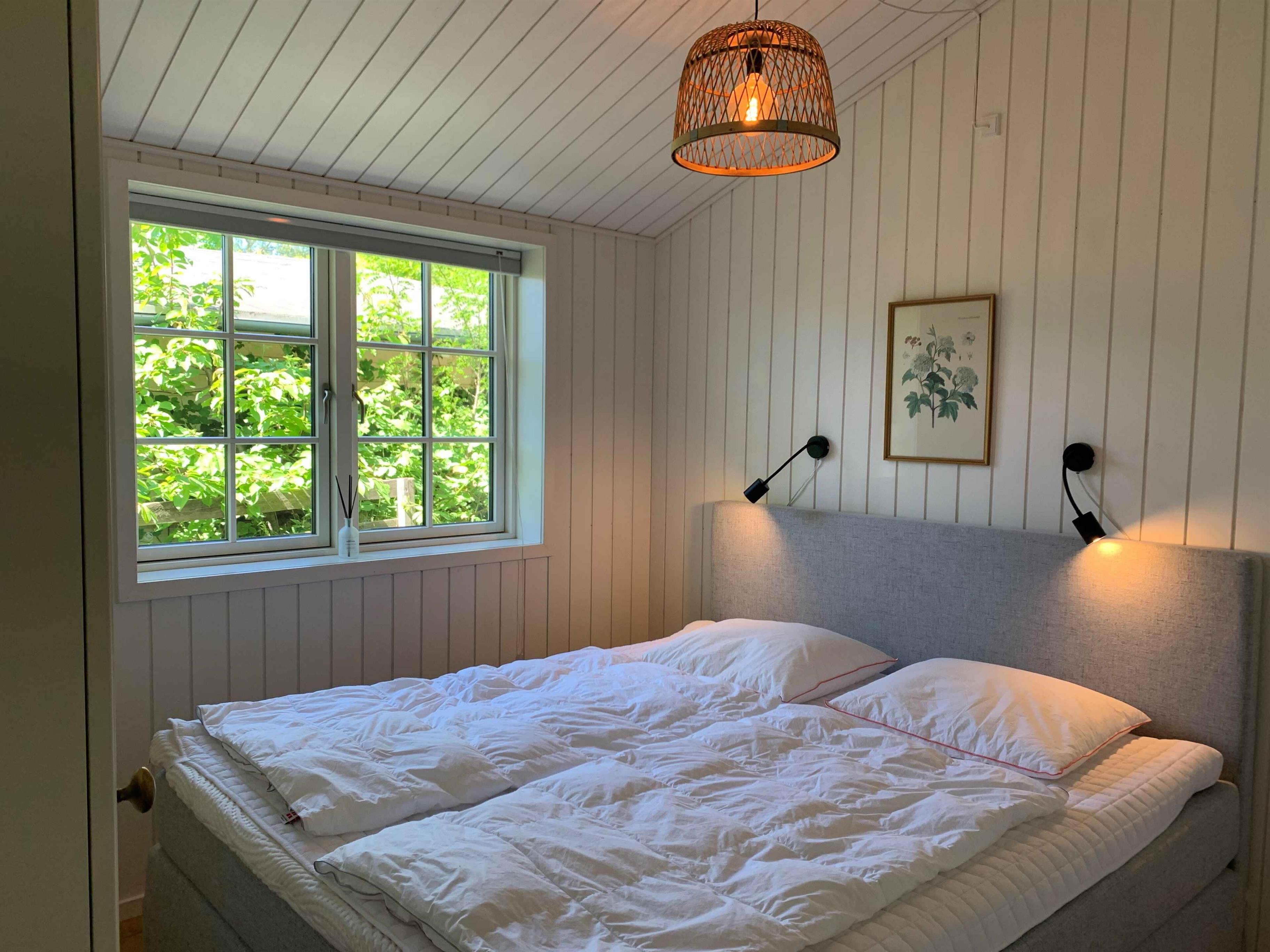 Sommerhus med fantastisk beliggenhed direkte ud til vandet og i kort afstand til stor, offentlig badestrand og skov og kun ca. 3 km fra Rønne centrum. Huset er fra august 2021 og indrettet i lys og let sommerhusstil. Huset indeholder stor, lys stue med loft til kip, åbent køkken og skøn udsigt over vandet. 2 soveværelser med kontinentalsenge (dobbeltsenge 180x200) og 1 soveværelse med 2 enkeltsenge (80x200). Badeværelse med gulvvarme, brusekabine og vaskemaskine. Sydvendt terrasse med sol hele dagen. Der er mulighed for at benytte en gasgrill af mærket Weber Q3200. Udebruser bag huset (kun i sommerperioden). Ejer har bevidst fravalgt fjernsyn, men der er mulighed for streaming via egne tjenester gennem trådløst internet. Huset er beliggende som næstsidste hus på privat grusvej. Udlejes ikke til ungdomsgrupper. Obs, udlejes ikke til erhversmæssigt brug.