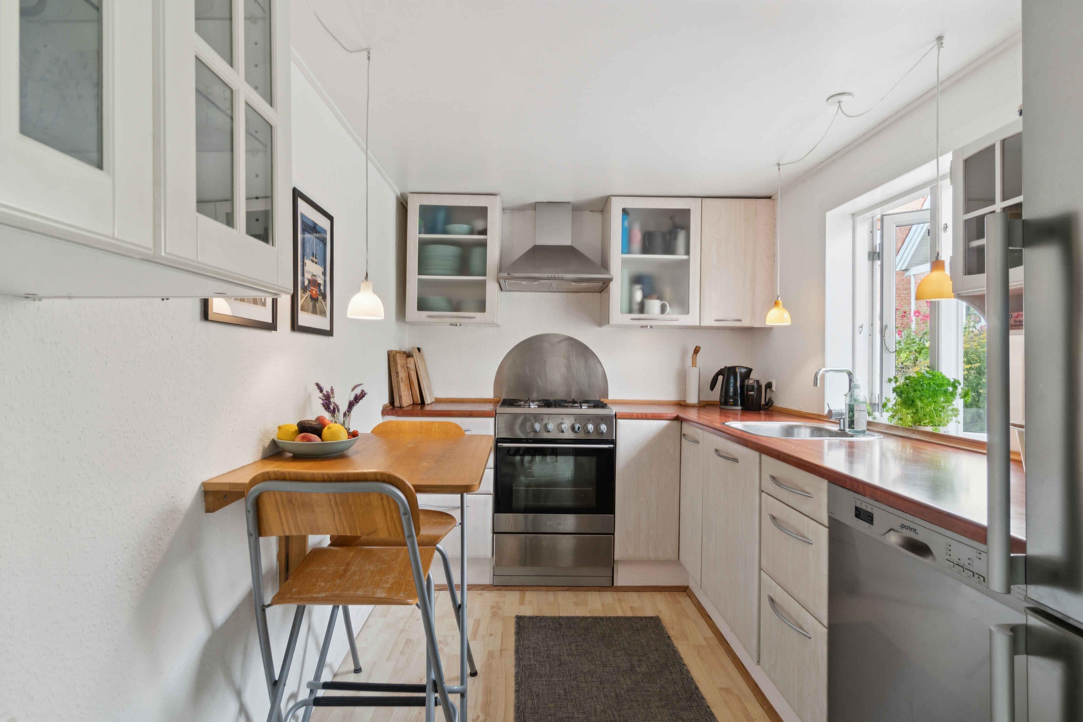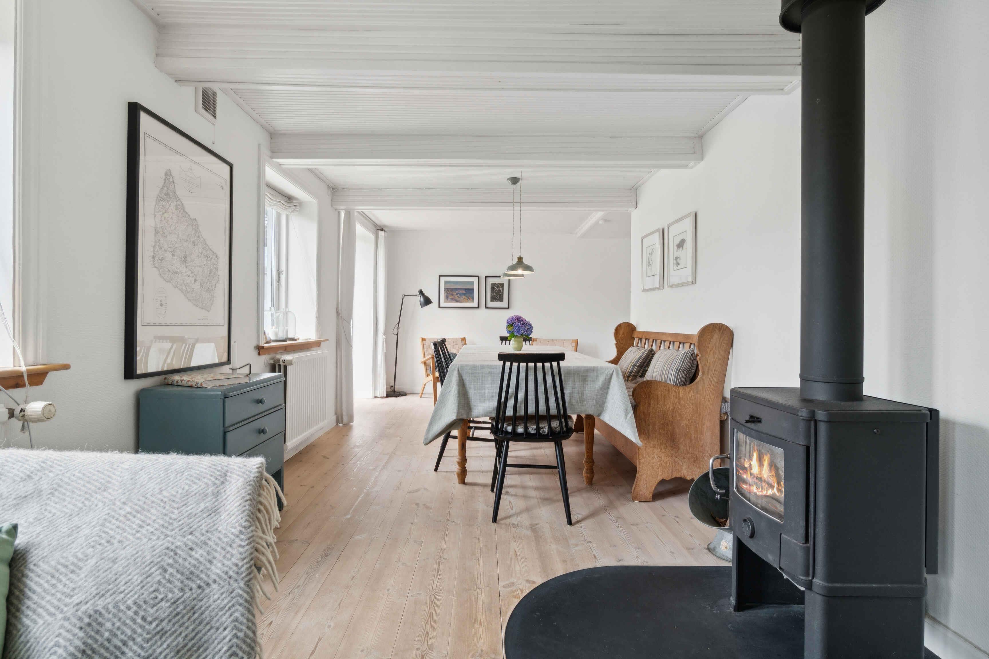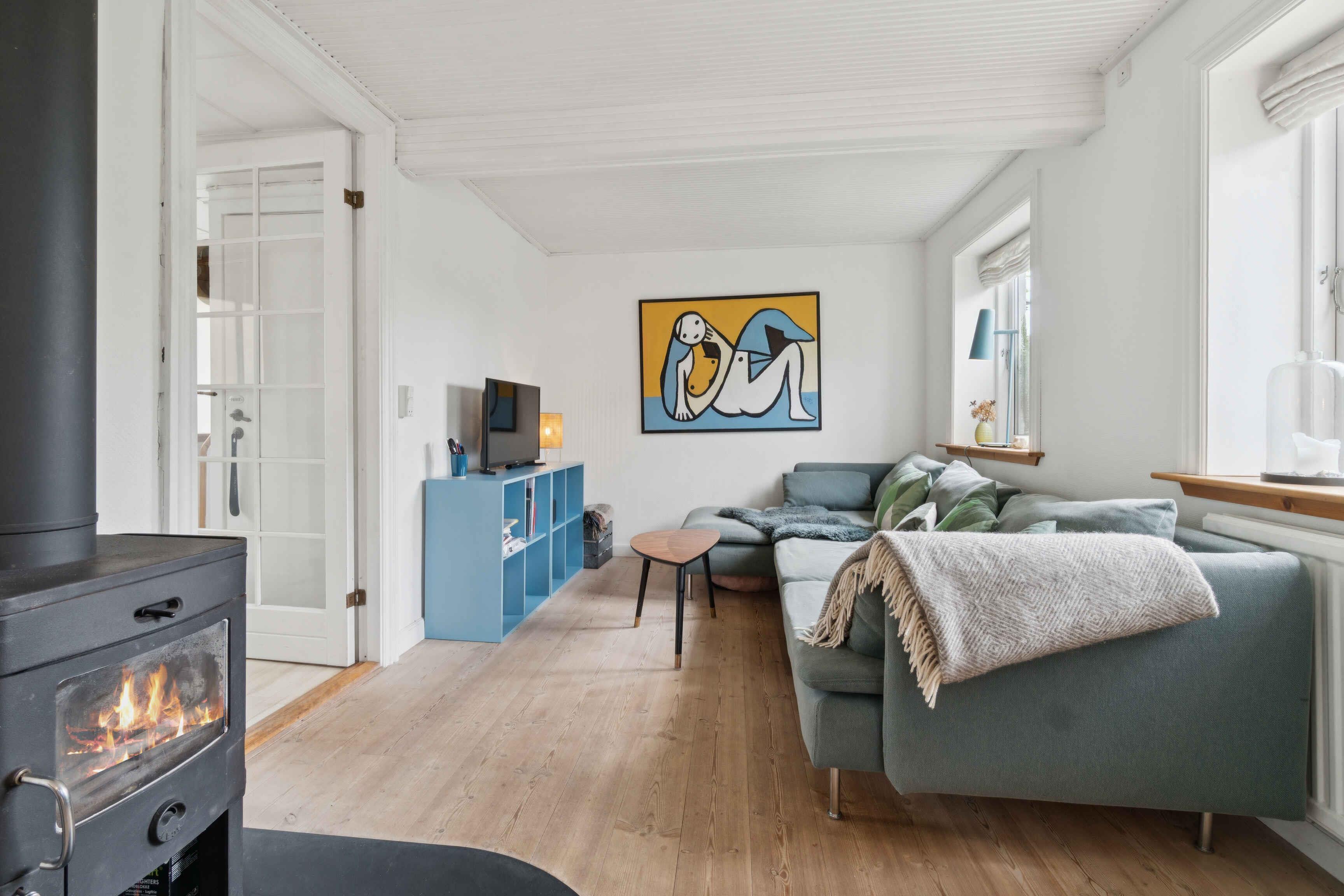 Dejligt sommerhus med historisk charme og privat have. Dette lyse og venlige sommerhus byder velkommen til op til fire voksne og et barn med sine to soveværelser, et badeværelse, en køkken og en stue. På de flotte, delvist overdækkede terasser kan I spise morgenmad og senere lade dagen gå på hæld ?med et godt glas vin. I kan slappe dejligt af i haven, hvor børnene har god plads til at lege. En grill er til rådighed til hyggelige grillaftener. Den nærmeste strand ligger kun 100 m væk. Her kan I bade, dyrke vandsport, slappe af, fiske eller bare gå en skøn tur. Der er en legeplads omkring 200 m væk.