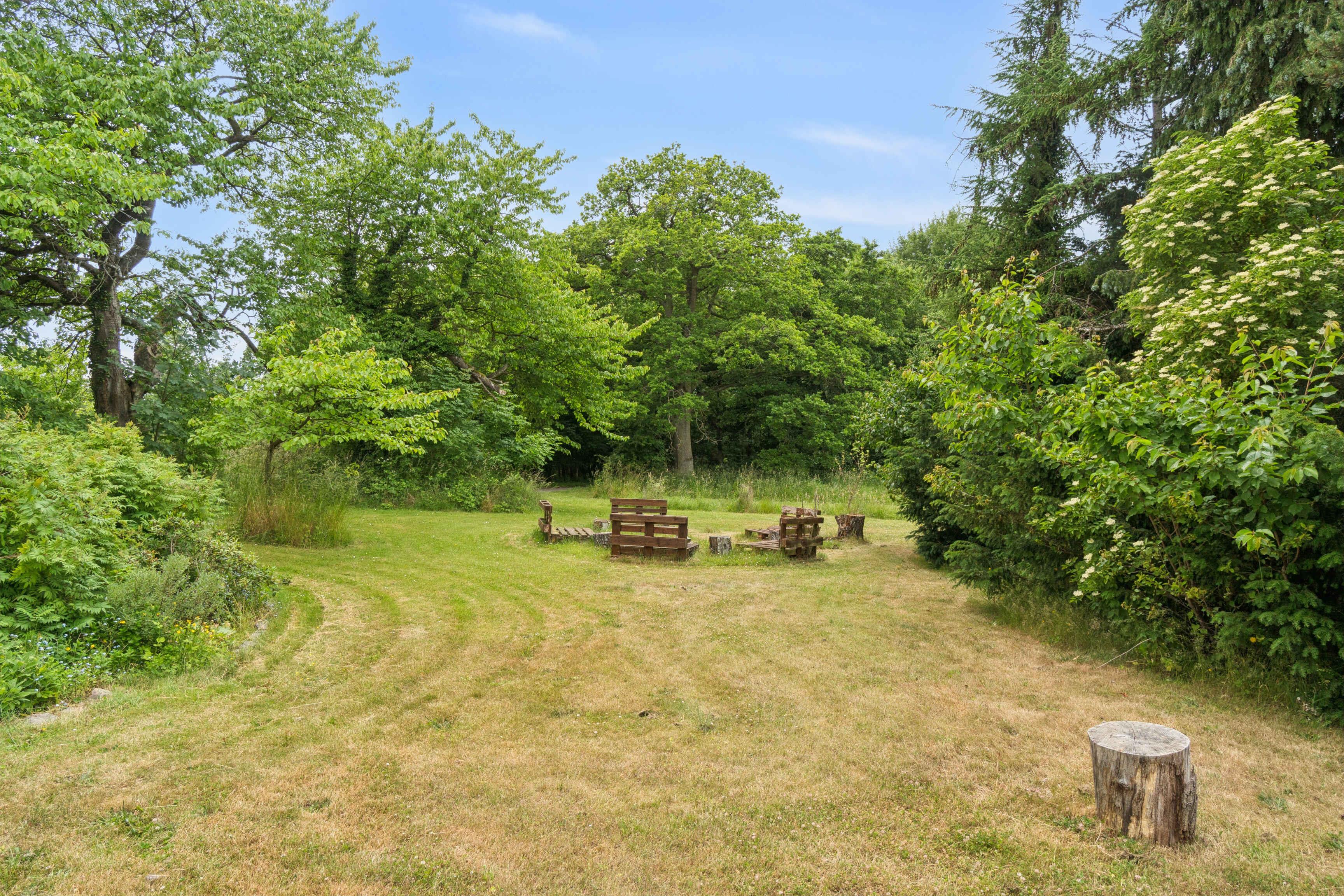 Vores skønne sted er en fredfyldt oase tæt på både skov, strand og golf – et naturskønt fristed, hvor roen falder på, Udenfor finder man et udendørs bad og bålsted hvor man kan sidde og nyde solnedgang og stjernehimlen - der er plads til 5-6 pers
