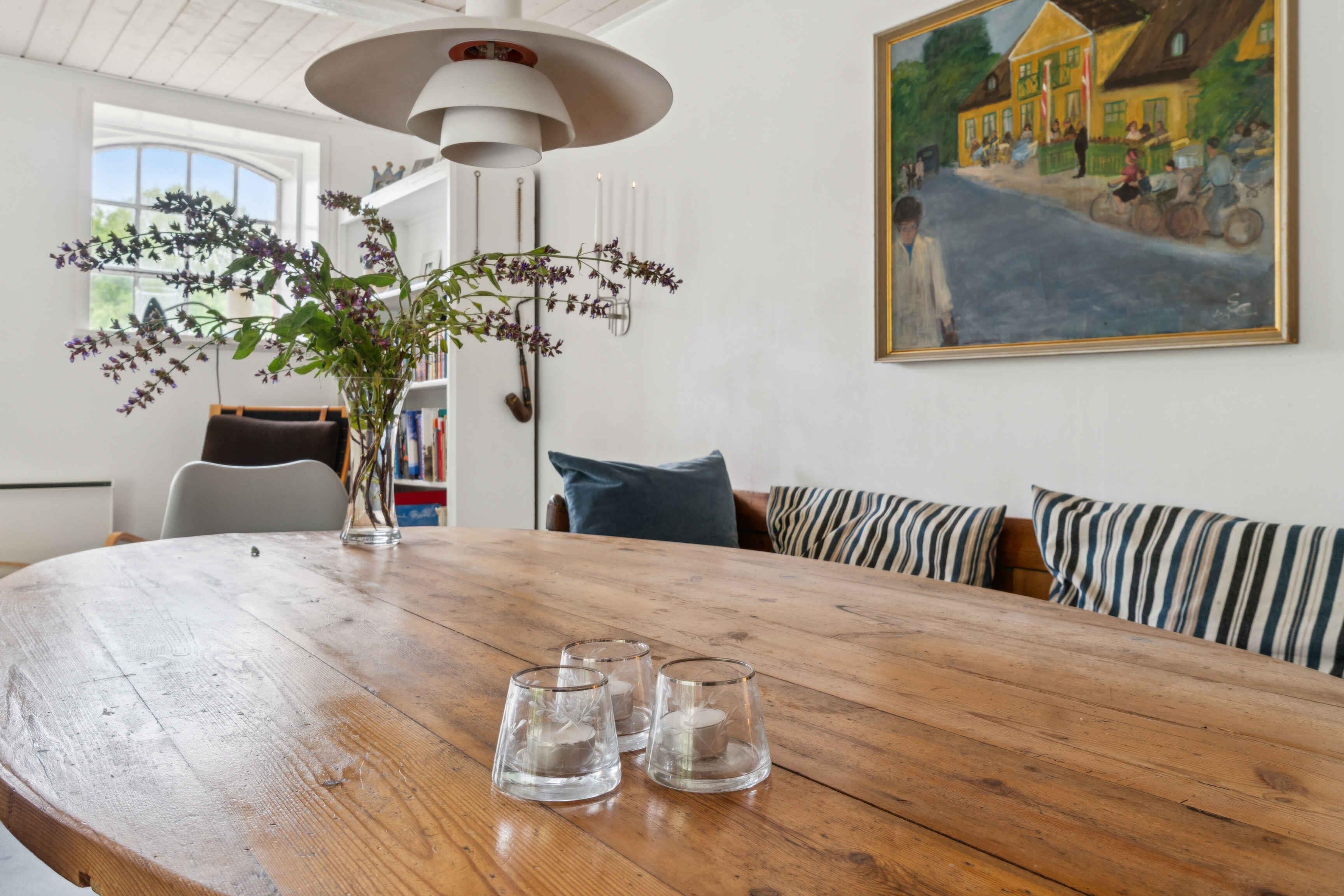 Naturskønt fristed tæt på skov, strand og golf Velkommen til et stemningsfuldt og personligt sommerhus, hvor natur, ro og komfort går hånd i hånd. Perfekt til dig, der ønsker at slappe af, nyde omgivelserne og have let adgang til både skov, strand og golfbane. Om boligen Nænsomt istandsat med sans for detaljer Tre gode soveværelser med dobbelt senge Lys og hyggelig stue med god plads til afslapning og samvær Indretning med karakter: en blanding af kvalitetsmøbler og udvalgte loppefund Veludstyret køkken med alt, du behøver for at lave mad hjemme Udendørs liv Stor terrasse med udendørs sofa og spiseplads Grill til hyggelige aftener under åben himmel Udendørs bad – perfekt til en frisk start eller afslapning i solnedgangen Cykler til låns – oplev området i dit eget tempo Omgivelser Tæt på smuk skov og naturskønne stier Kort cykelafstand til strand og by Golfbane i nærheden Fred og ro – kun afbrudt af fuglesang Stjerneklar nattehimmel og masser af luft omkring dig