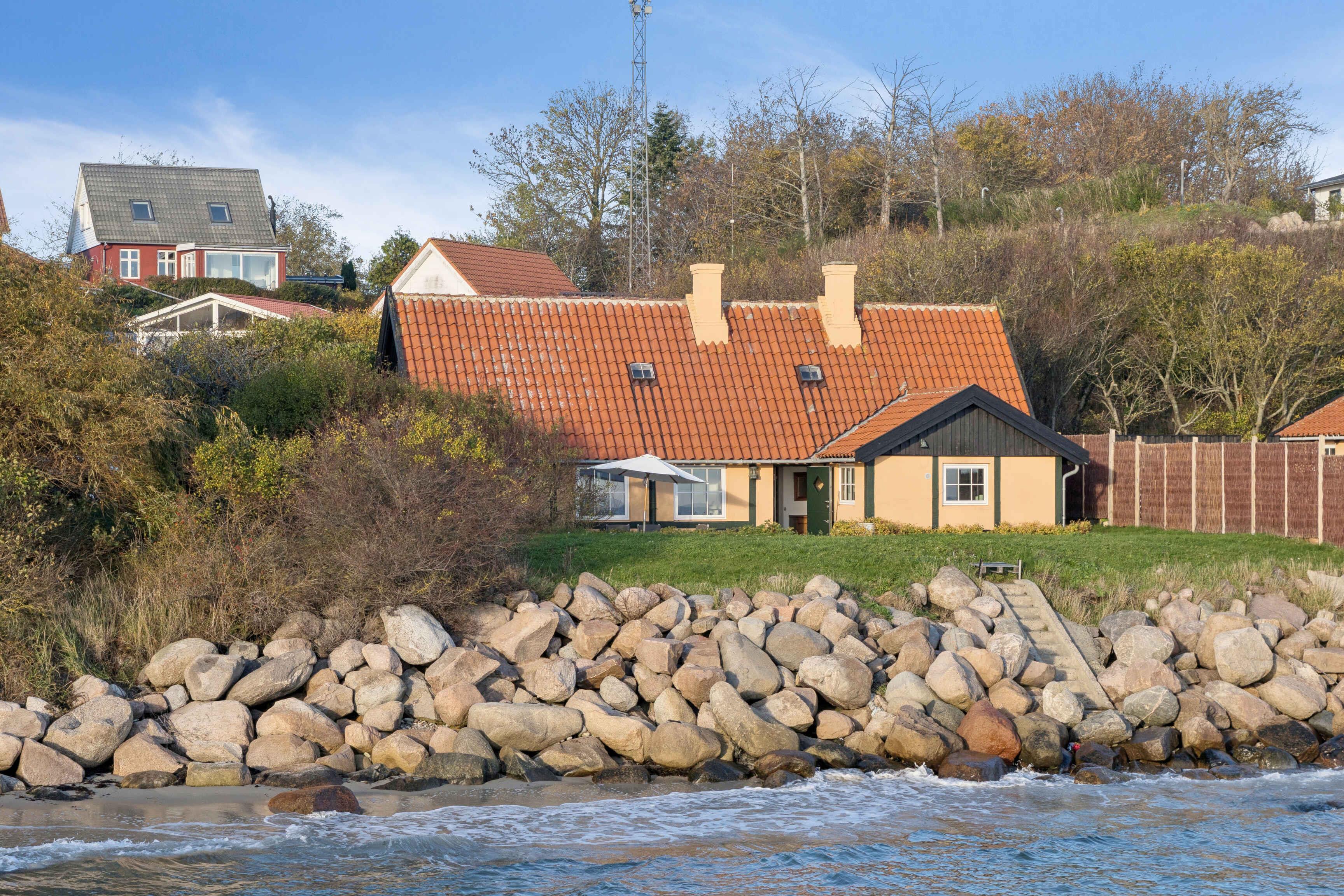 Sommerhus på 120 m² med tre soveværelser, fem sovepladser og direkte havudsigt. Funktionel indretning, stor terrasse og få skridt til strand og kyststier. Ideelt for familier, der ønsker ro, natur og nærhed til Arnagers havnemiljø.