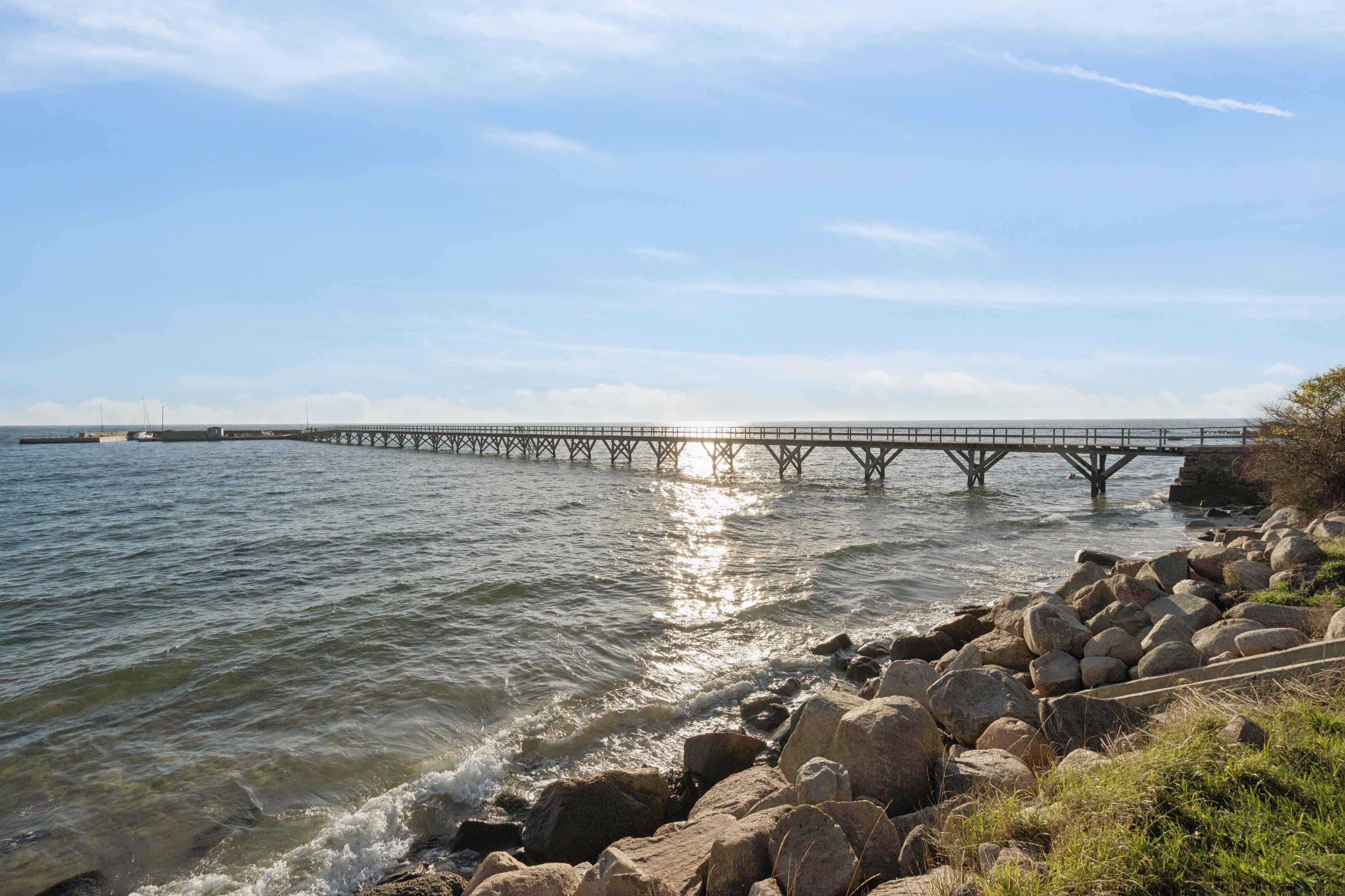 Brohuset er et rummeligt sommerhus på 120 m² med tre soveværelser og fem sovepladser. Den direkte nærhed til havet giver en særlig ro, hvor bølgerne er en naturlig del af opholdet. Her får du en feriebase, der kombinerer udsigt, enkelhed og afslappet kystliv. Indretningen er funktionel og inviterer til afslapning efter en dag ved vandet. Store vinduer giver lys og gør det muligt at følge havets skiftende udtryk fra flere rum. Huset passer godt til både familier og små grupper, som ønsker et roligt udgangspunkt. Terrassen giver mulighed for udetid fra morgen til aften. Her kan du nyde måltider, læse en bog eller følge livet langs kysten. Den korte afstand til stranden gør det let at bade eller gå en tur i det åbne landskab. Området byder på unikke feriekvaliteter. Arnager er et lille fiskerleje med en autentisk havnestemning, hvor livet omkring vandet er i fokus. Den lange træbro fører ud til den lille havneø og er et oplagt mål for en rolig gåtur eller et aftensbesøg. Stranden ved broen er familievenlig og velegnet til både badning og leg. Kysten giver mulighed for vandreture, cykelture og oplevelser i det karakteristiske sydbornholmske landskab. I nærheden finder du Arnager Gamle Røgeri, lokale stier og et levende maritimt miljø, der giver området sin særlige charme. Brohuset er oplagt for dig, der ønsker en ferie tæt på hav, natur og et lokalt miljø med personlighed. Her får du rammerne for et ophold med tid til både ro, nærvær og aktiviteter.