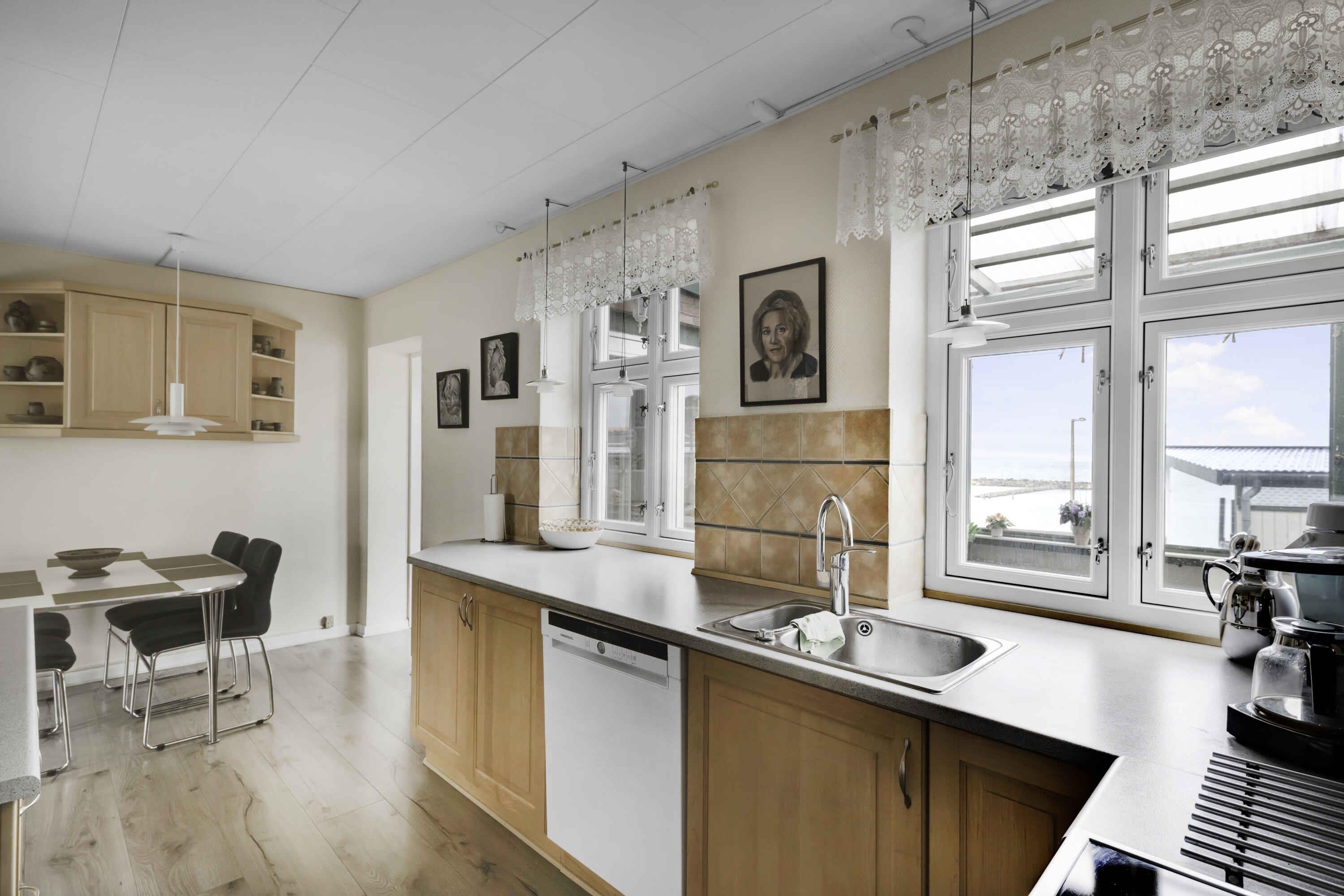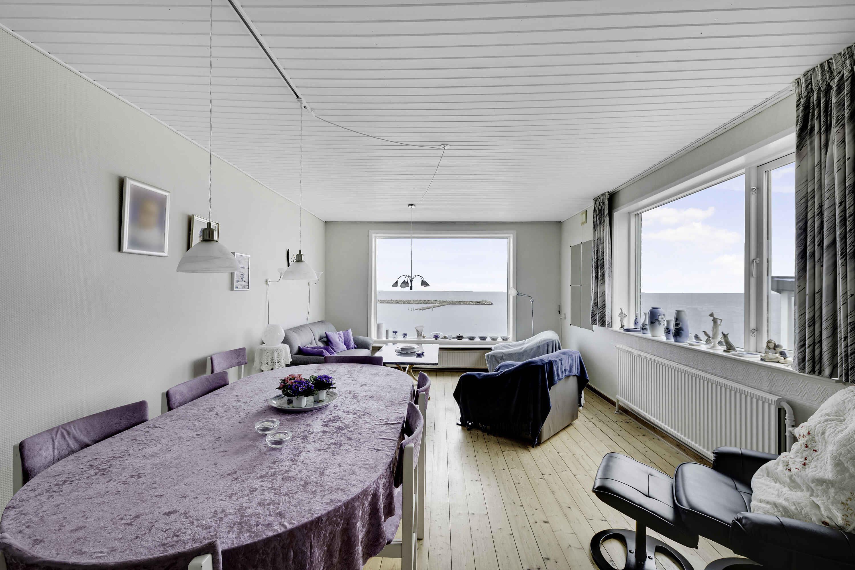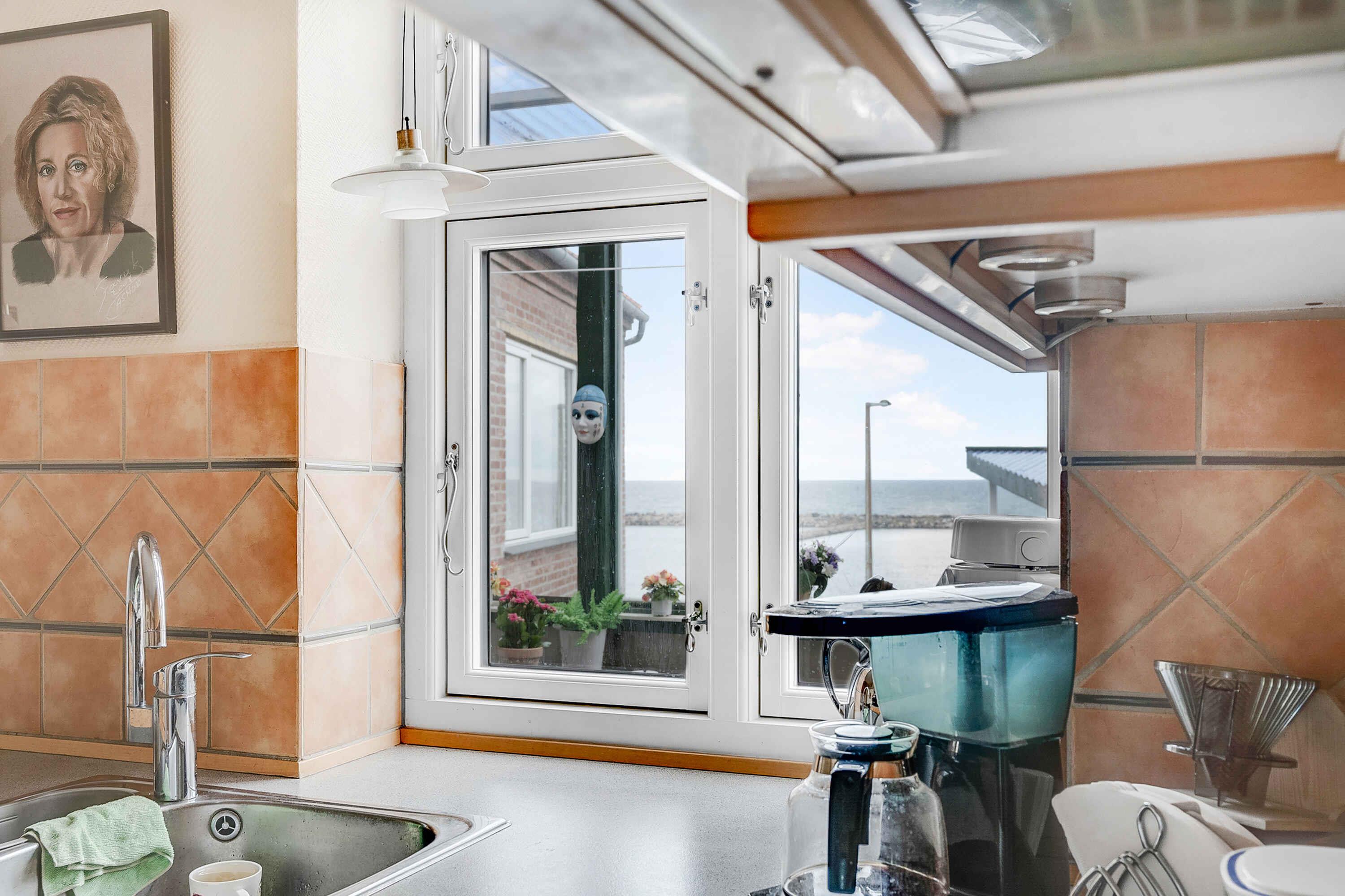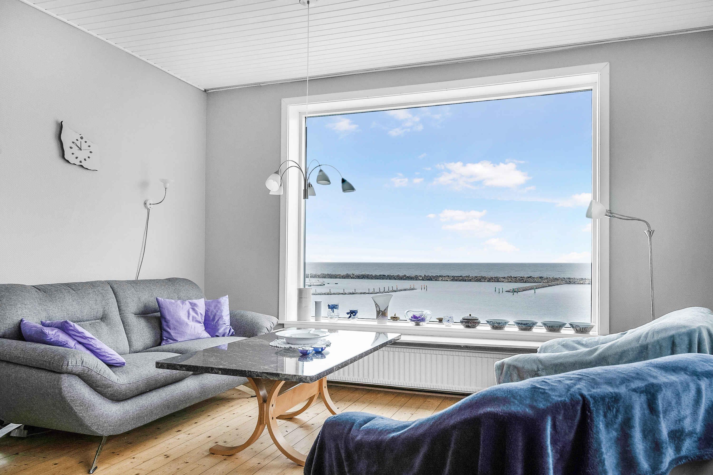 Rummeligt hus med skøn havudsigt fra alle rum. Solnedgang, lystbådehavn, badestrand og strandpromenade. Gågade 100 m væk med cafeer. Nær indkøb men roligt område.