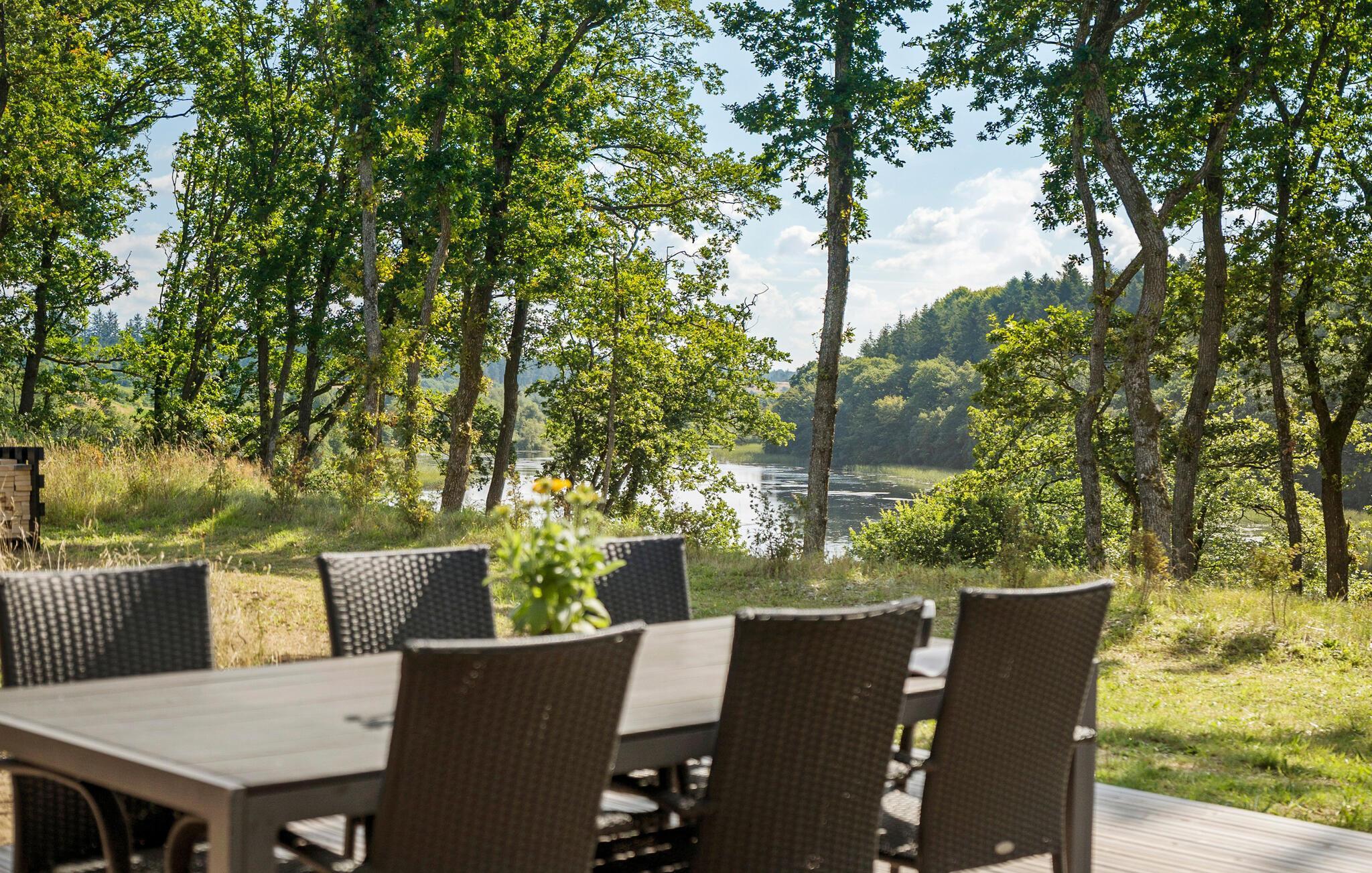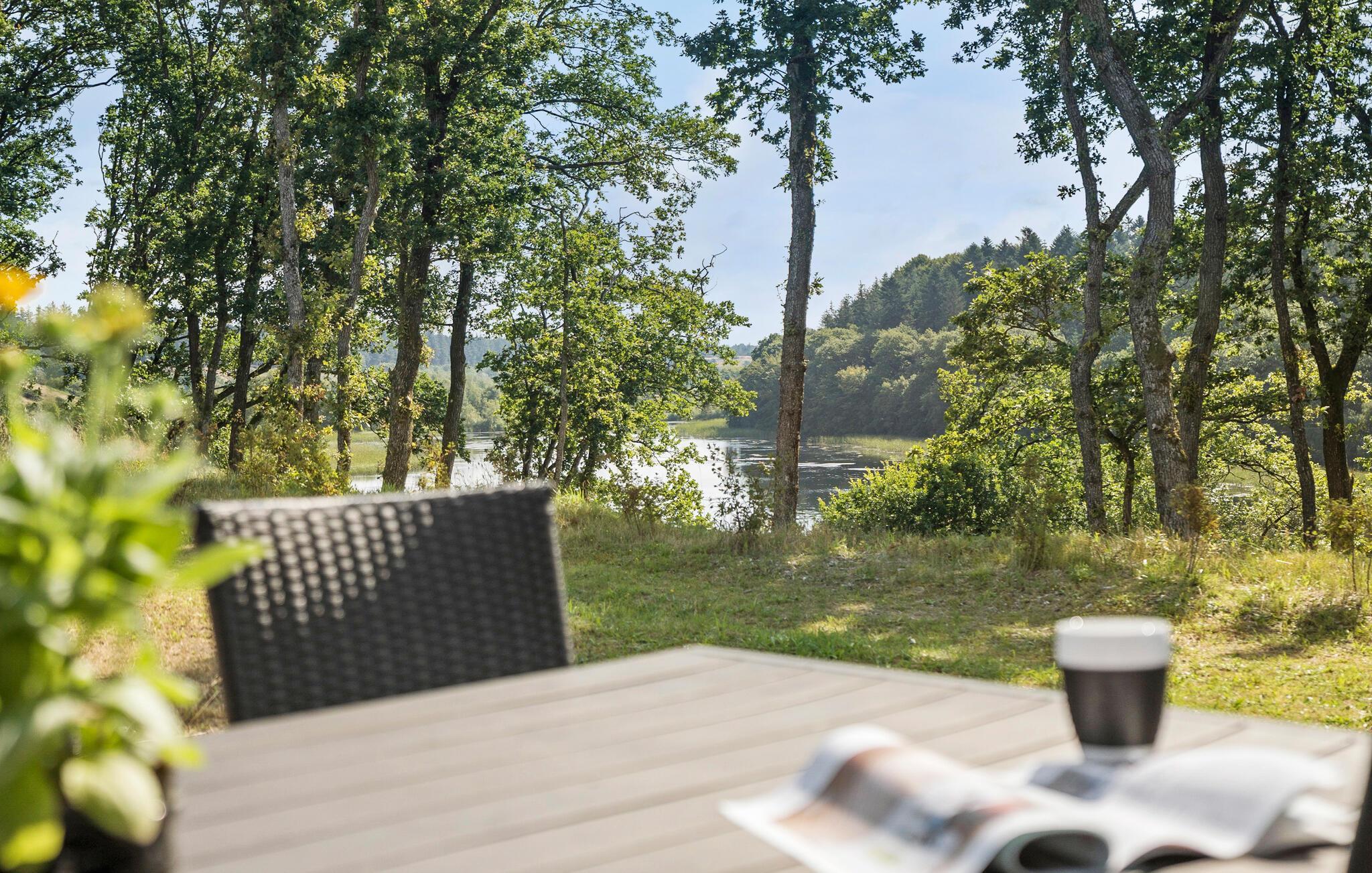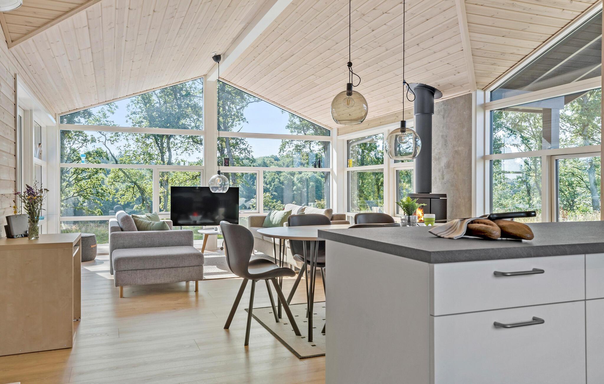 Moderne feriehus ved Rørbæk Sø med panoramaudsigt, terrasse og brændeovn, perfekt til afslapning og naturoplevelser.