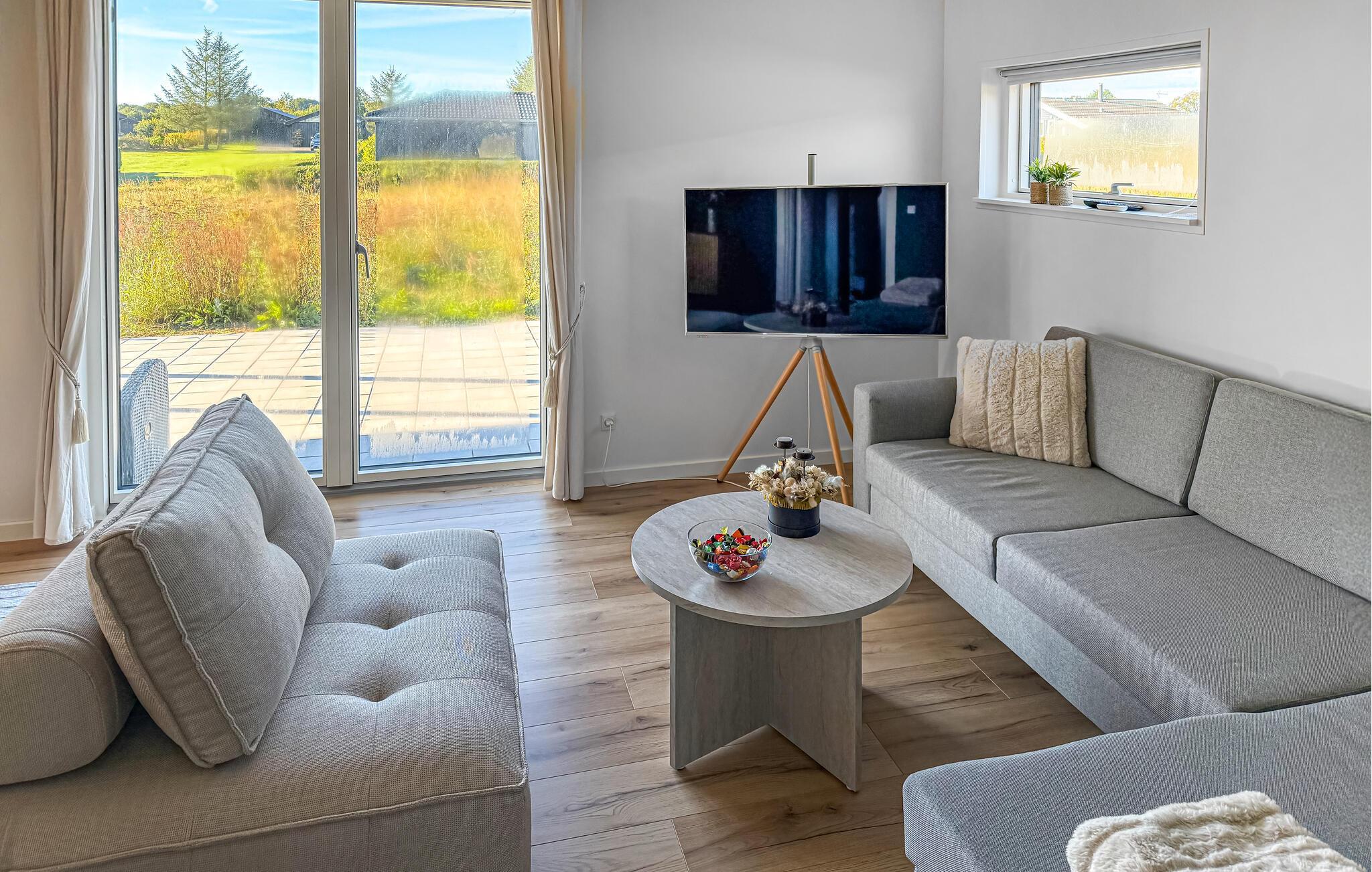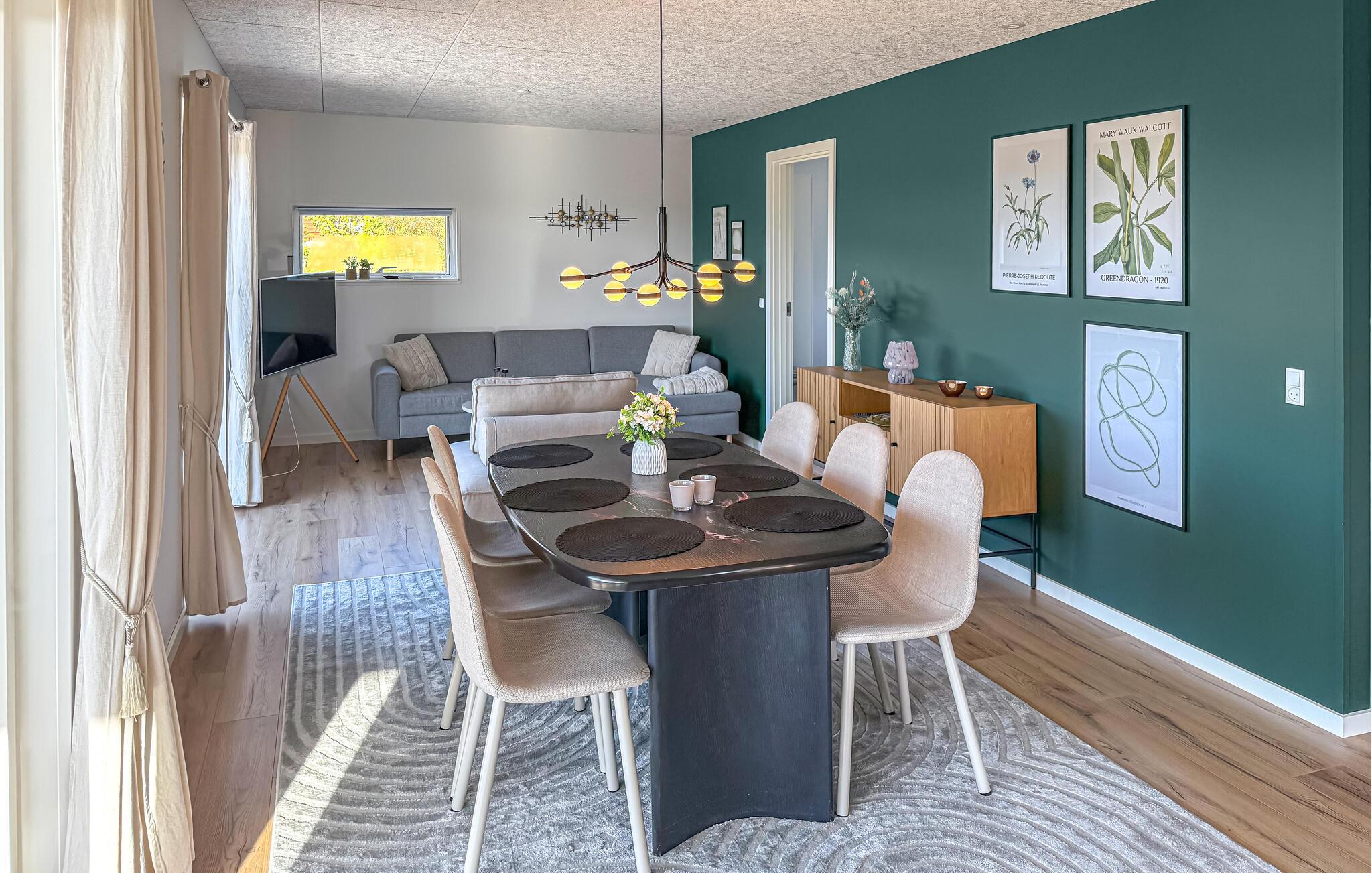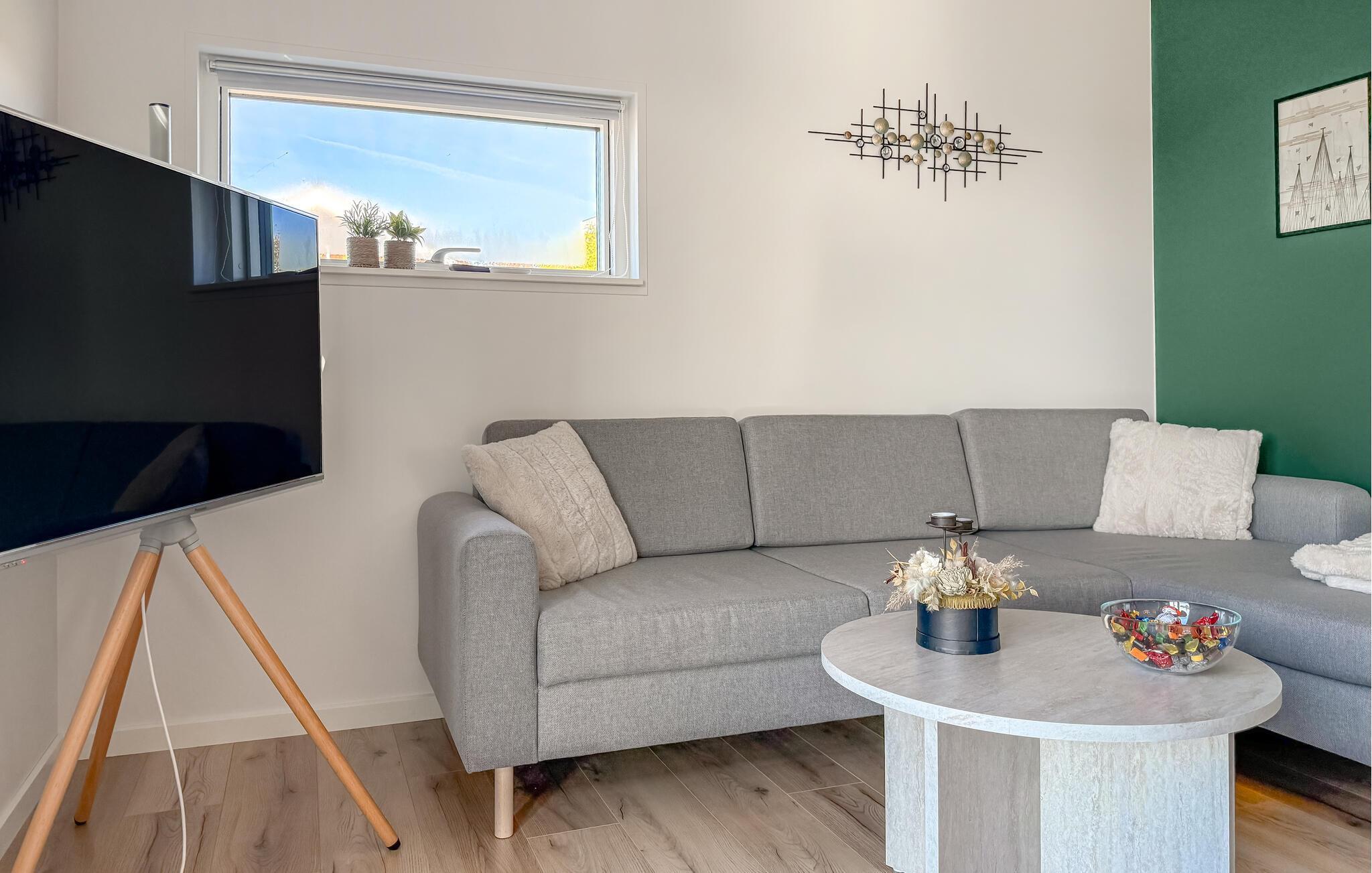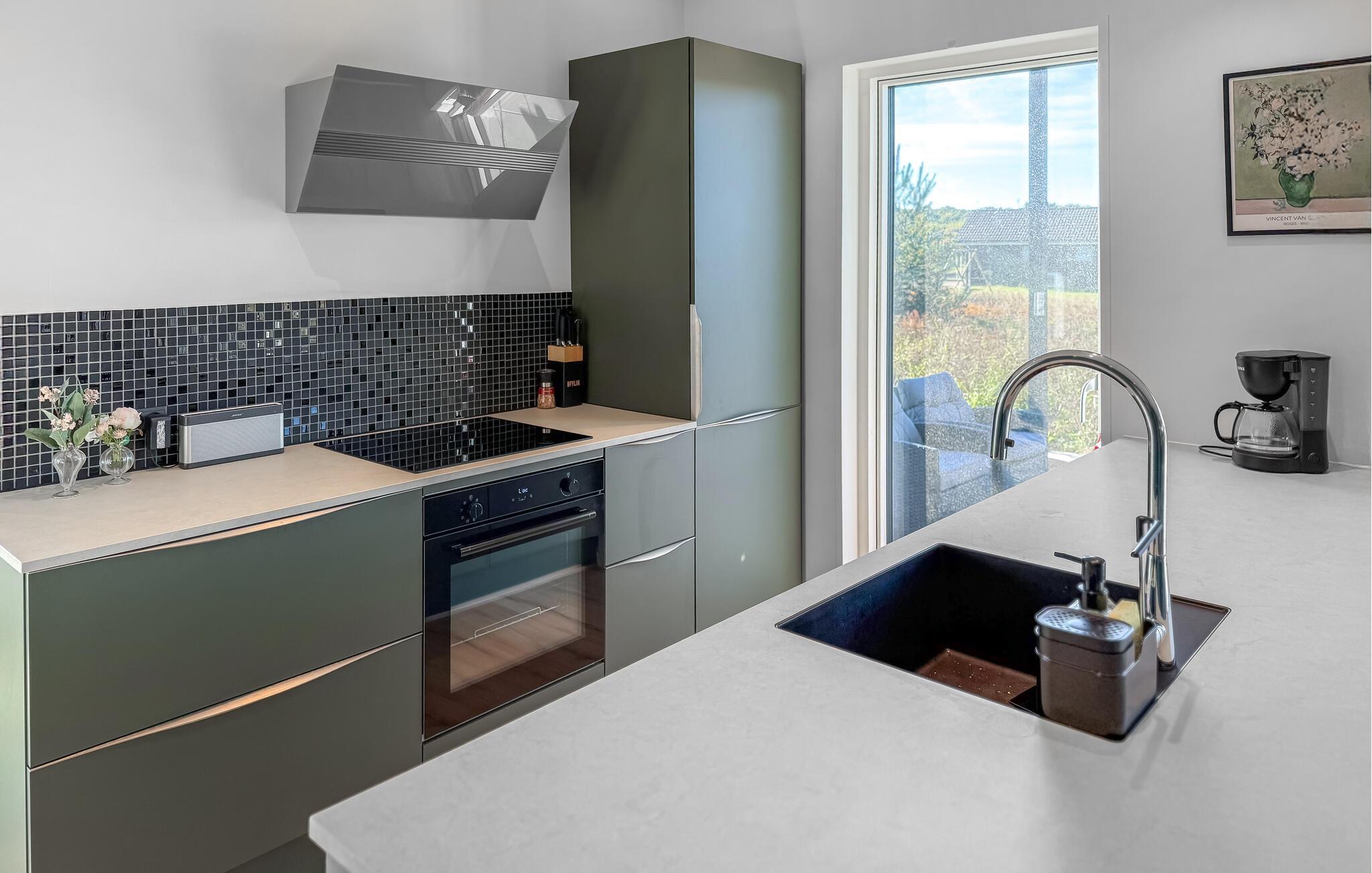 Lyse rum, stilfulde indretningsløsninger og et moderne udstyret køkken skaber en ubekymret feriestemning i dette hus. Slap af og lad batteriene op, mens I nyder en kop kaffe, spiller spil eller lytter til musik. Tilbered lækre måltider i køkkenet og server dem med en god flaske vin.