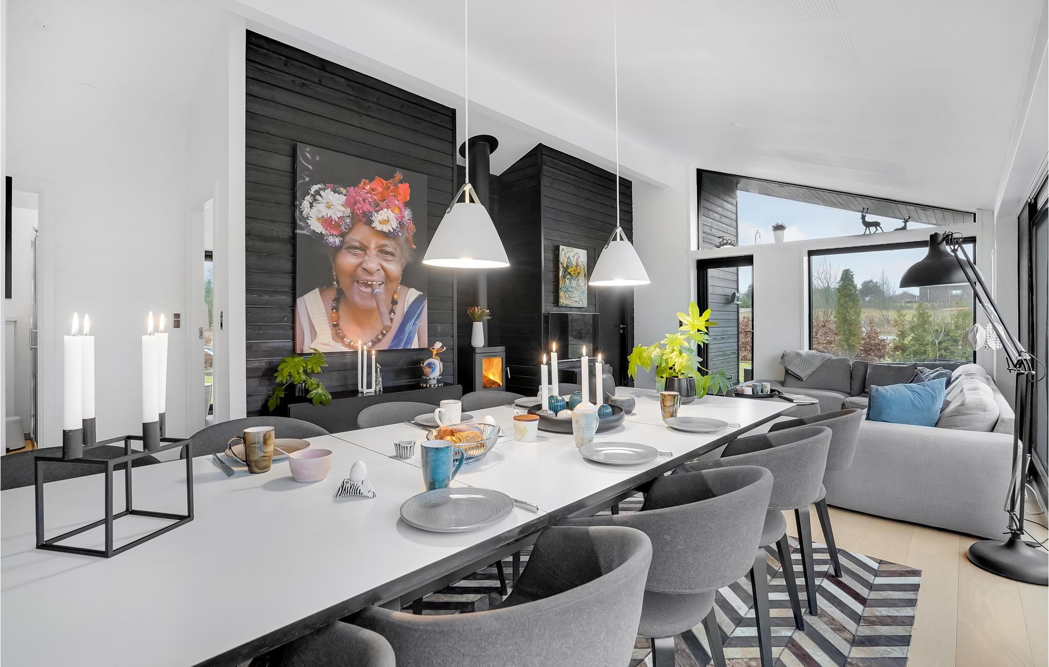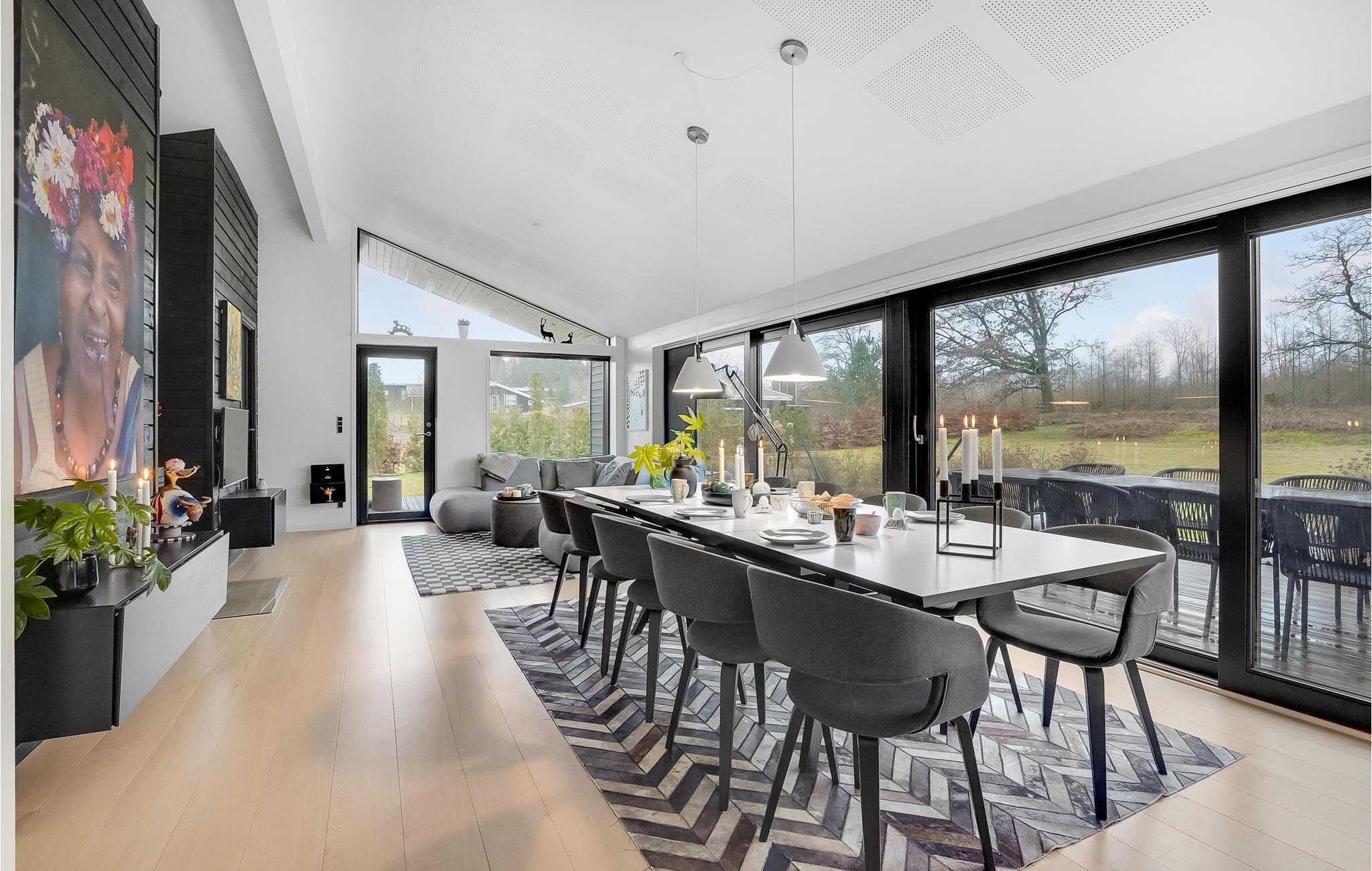 Luksuriøst feriehus ved Rørbæk Sø med spa, sauna, aktivitetsrum og store terrasser til afslapning og leg.