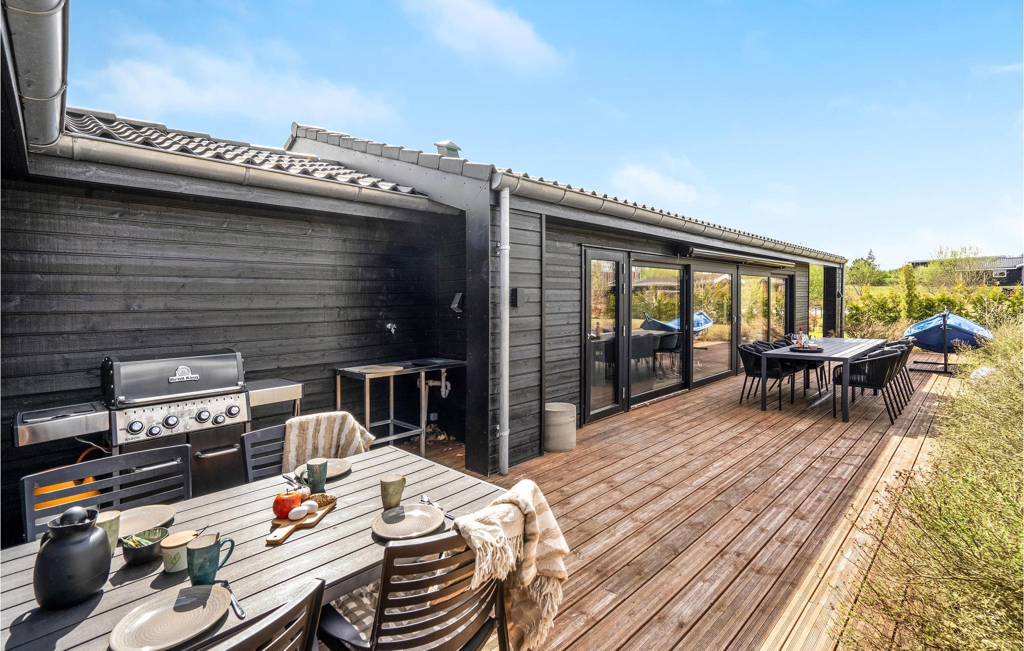 Rundt om huset er der terrasser med gode havemøbler. Den store vestvendte terrasse vil helt sikkert blive samlingssted til hygge, afslapning og skønne feriemiddage med et godt glas vin eller en frisklavet pizza fra den udendørs pizzaovn. Udendørs spaen står klar til jer, når I ankommer, så ferien kan allerede fra første øjeblik begynde med afslapning i tusindvis af bobler - måske afsluttet med en tur i sauna, med indgang fra terrassen.