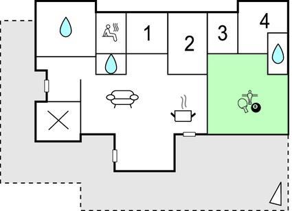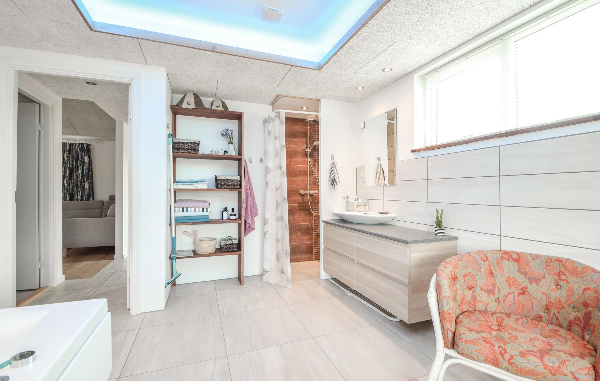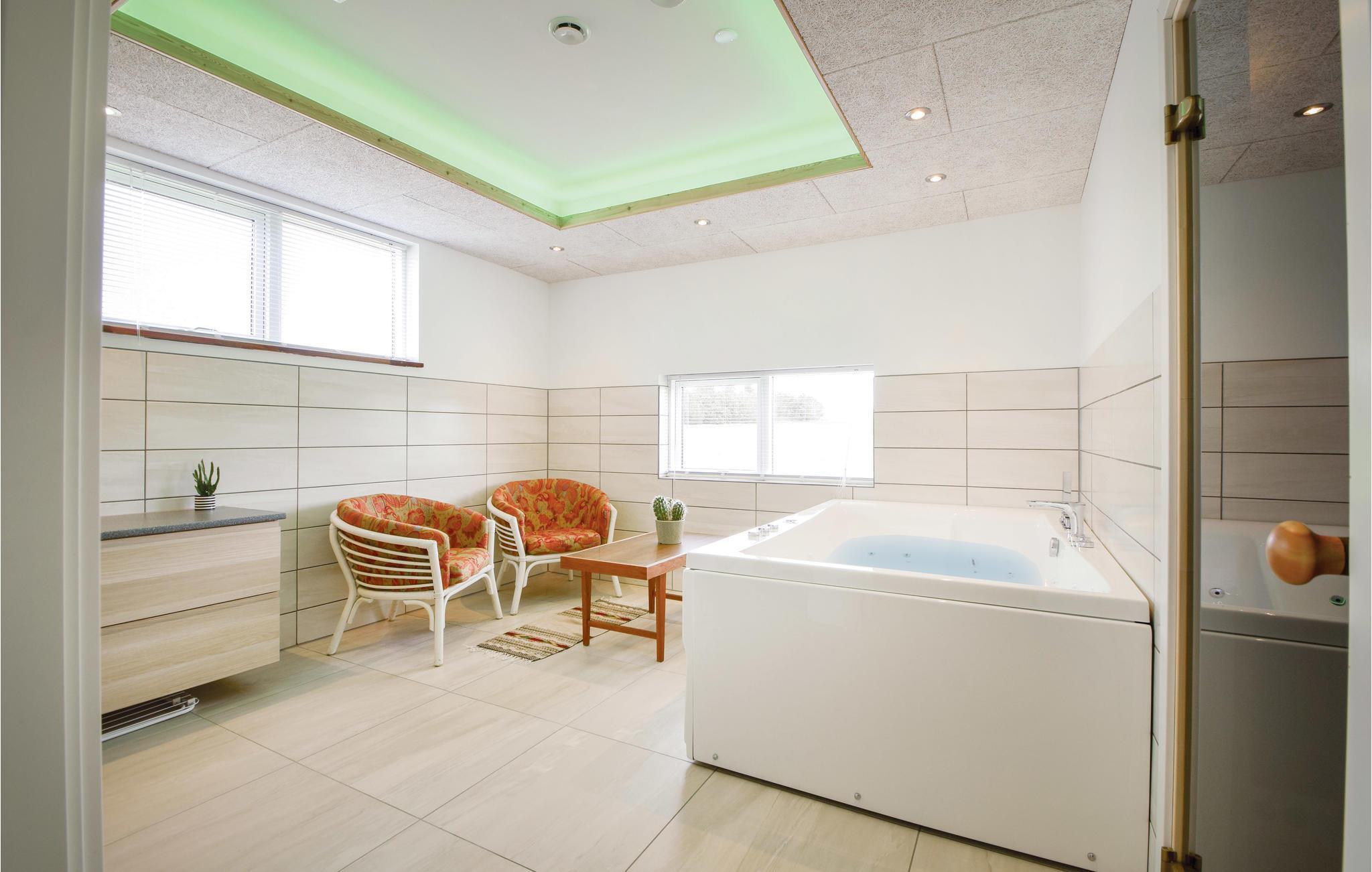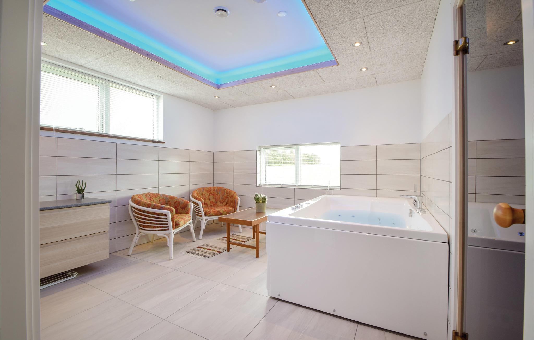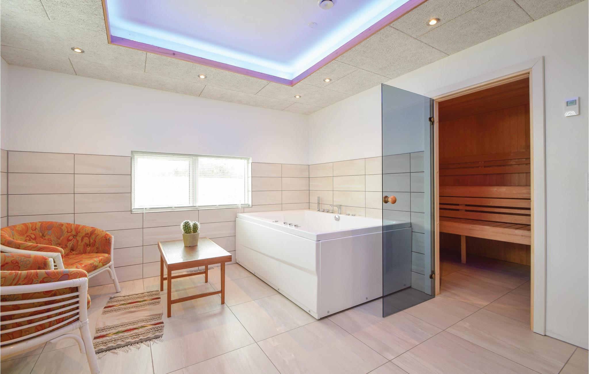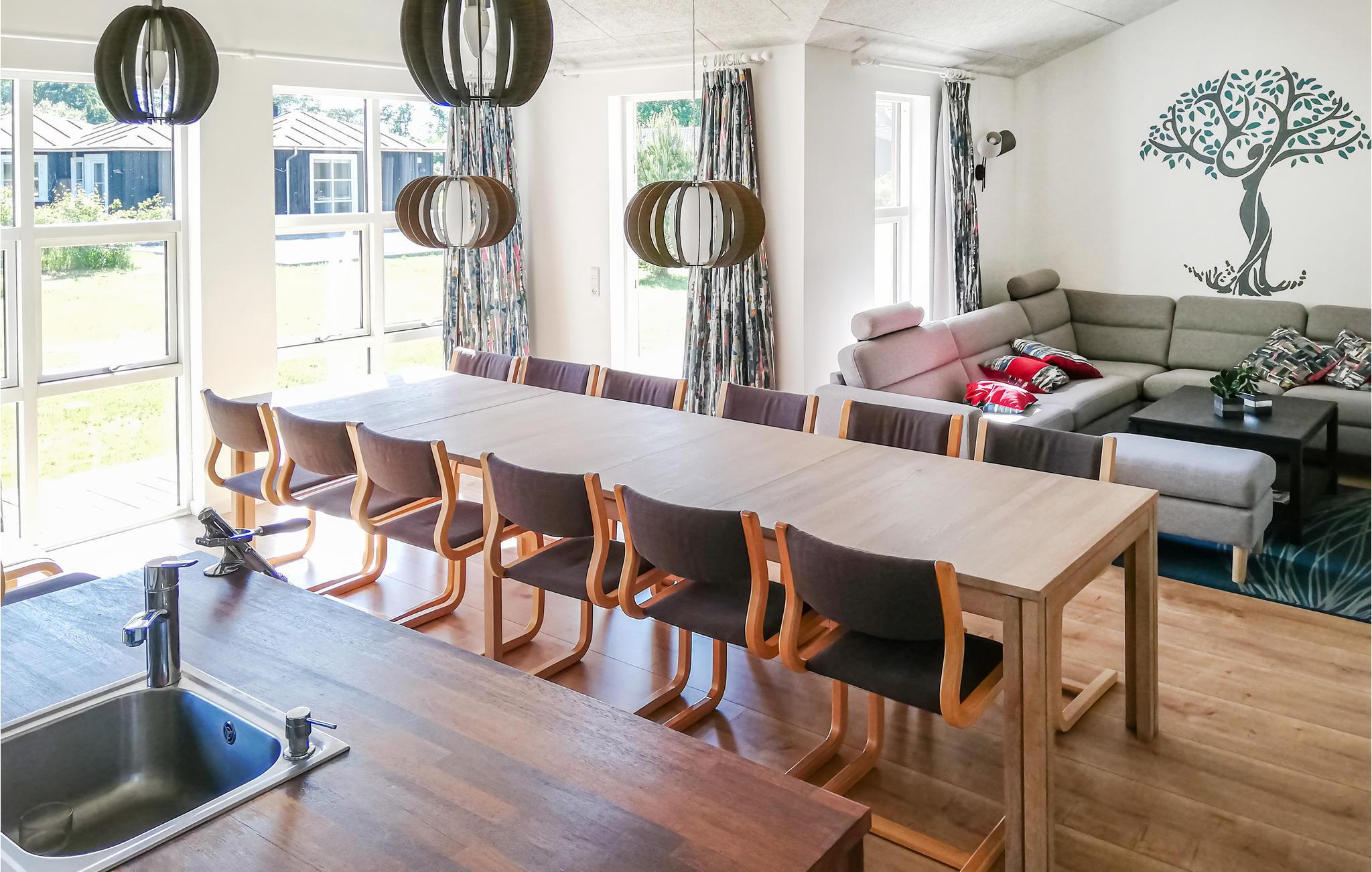 Flot, velindrettet og rummeligt feriehus med plads til en stor familie eller to familier, som gerne vil holde ferie sammen. Der er stort aktivitetsrum med airhockey. Huset indeholder en stor stue med spiseplads til alle samt sofagruppe. Der er trådløst internet med høj hastighed samt apple-tv, der er ikke kabel eller satellit-tv i huset. Stuen ligger i åben forbindelse med det lækkert indrettede køkken. Der findes tre badeværelser i huset, så der behøver ikke at være kø, når I skal afsted på udflugt fra morgenstunden - det største af badeværelserne er ren wellness, her findes både spabad og sauna, og loftslyset er lavet så det er specielt beroligende og kan skifte farve. Endvidere er her fire gode soveværelser; tre med dobbeltsenge og et med to køjesenge, så her kan hele fire personer overnatte. Køjesengene har et stort liggemål, så selv en teenager kan få en god nattesøvn her.