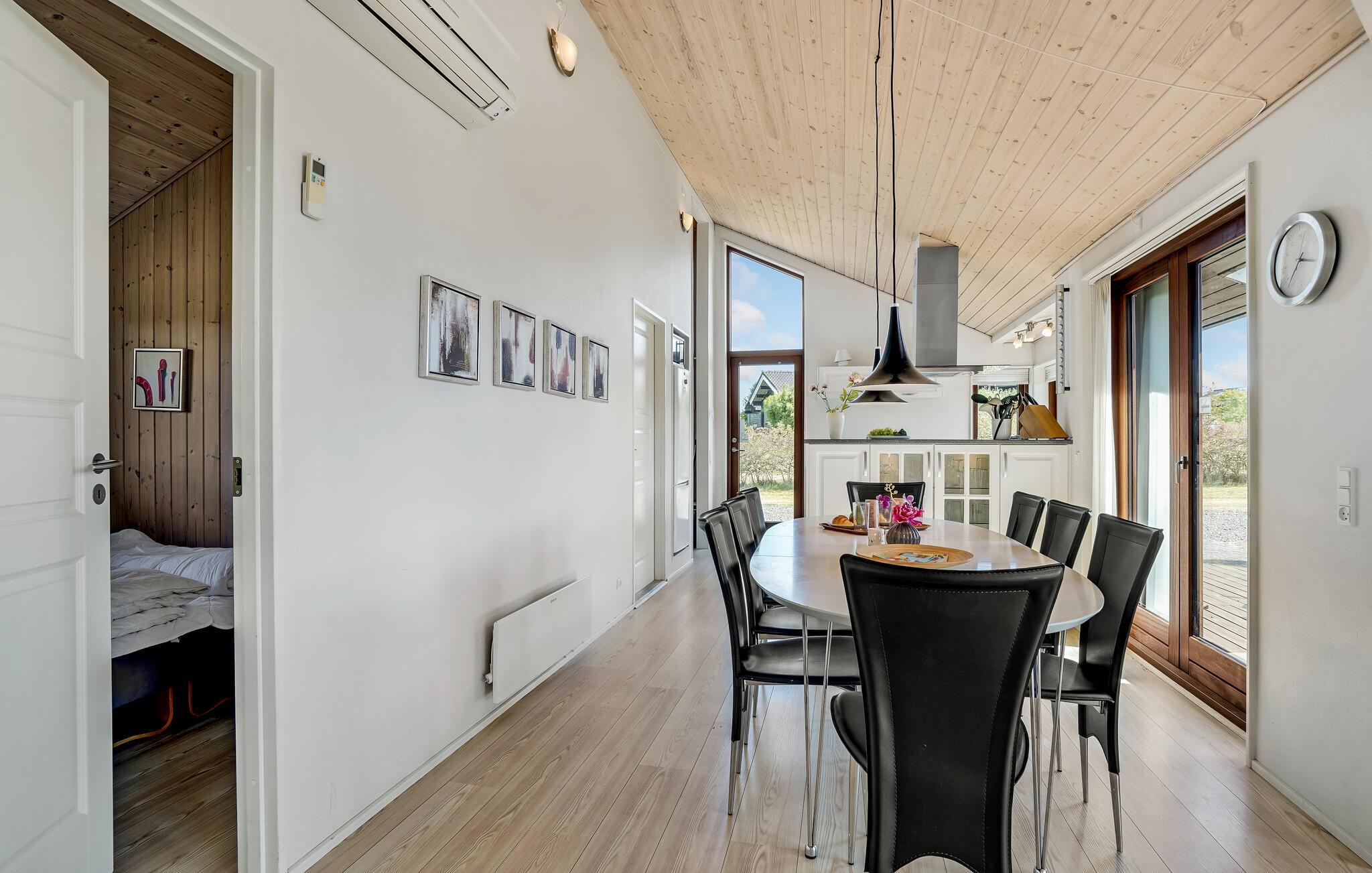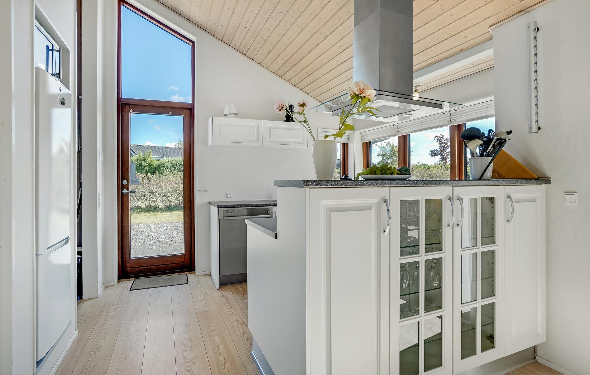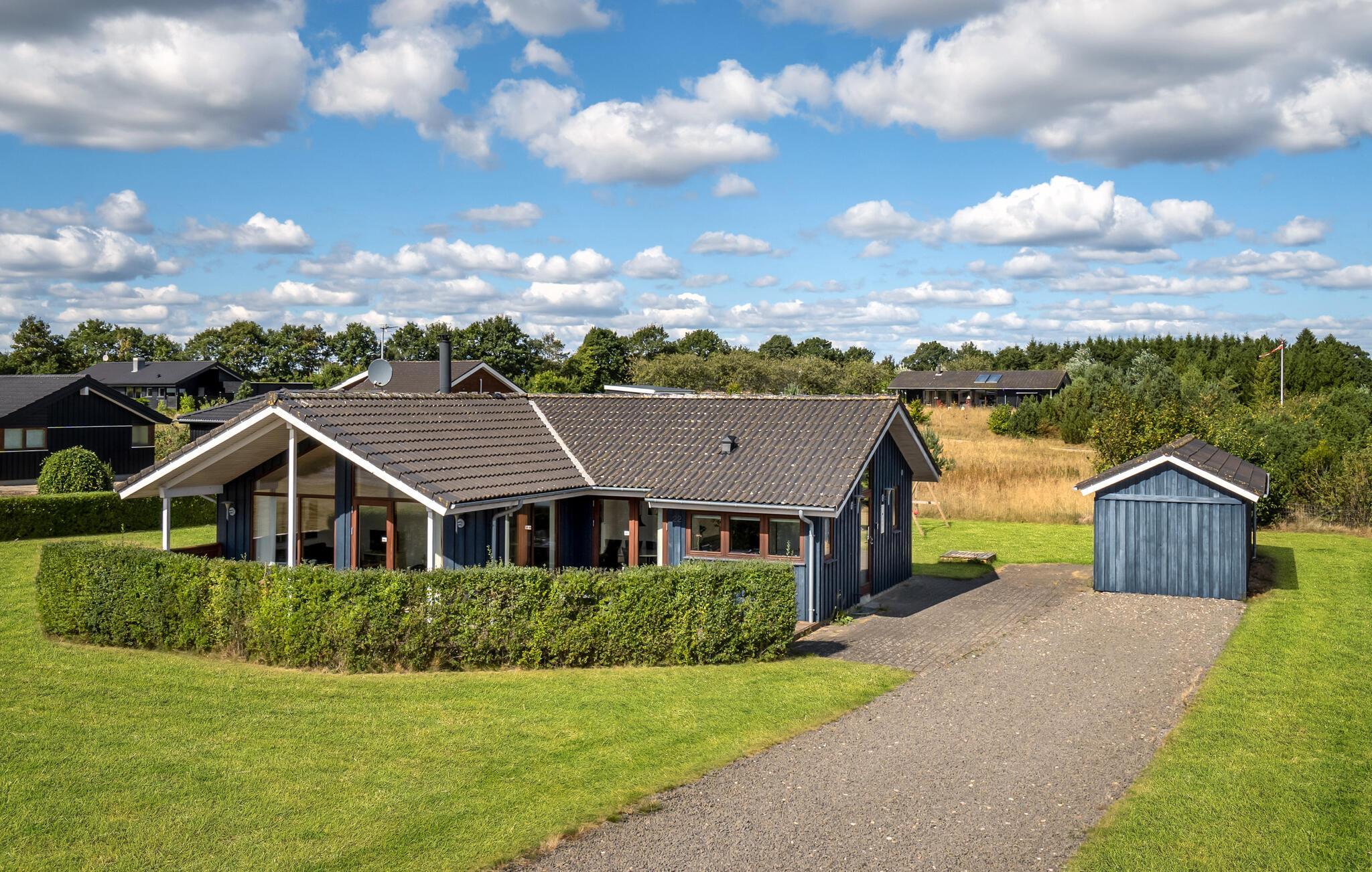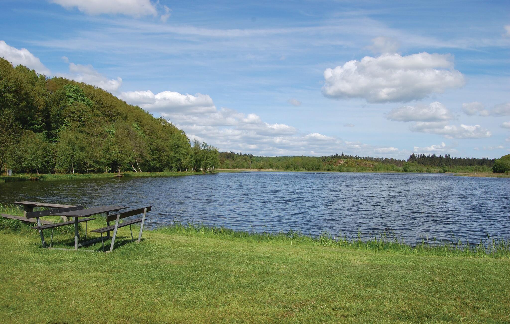 I et naturskønt område ved Rørbæk Sø ligger dette flotte feriehus. Huset er indrettet med moderne og komfortable møbler. Her er sauna, og hvis I kommer uden for sommerperioden, er det herligt at kunne få varmen her efter en frisk gåtur. Huset er rummeligt, og den store terrasse indbyder til hygge med god mad og hyggeligt selskab. Her er mange muligheder, hvis I har lyst til at fiske eller tage på udflugter, og ikke mindst naturen i området er betagende. Fiskeri i Rørbæk Sø er kun tilladt i den ene del af søen, fiskekort kan købes på stedet. I søen findes bl.a. gedde, brasen og de mest almindelige ferskvandsfisk. Rørbæk Sø er omgivet af fredede skove og bløde bakker, hvor I kan dyrke friluftslivet fuldt ud.