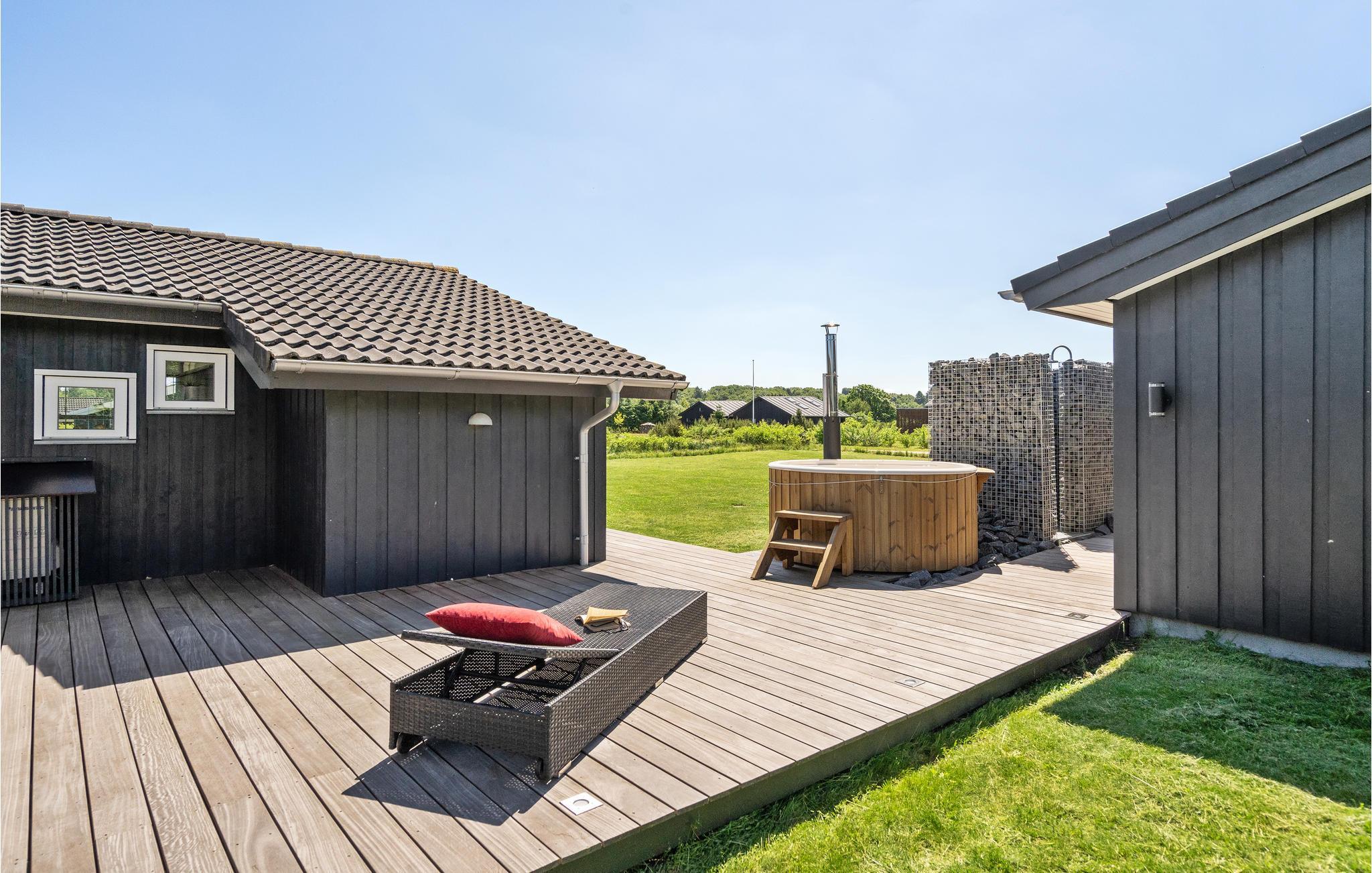 Udendørs kan I glæde jer til at slappe af og komme helt ned i gear i vildmarksbadet, og efterfølgende kan I tage et skyl under den udendørs bruser. Her er også en rygeovn til f.eks. at ryge fisk i.