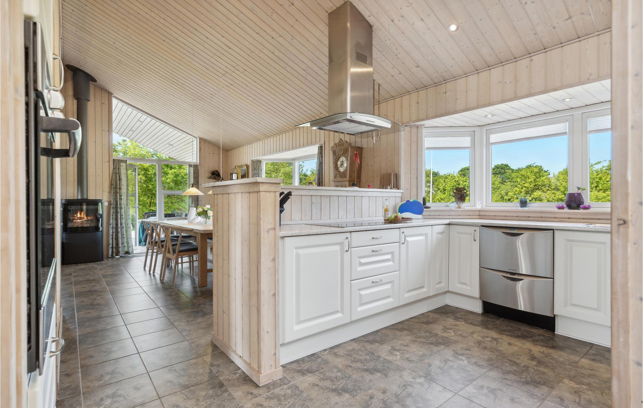 Her kan I nyde livet i fulde drag sammen med jeres børn, og der er masser af plads til leg på husets lille bakketop. Det familievenlige hus er veludstyret og byder på en dejlig træterrasse og en skøn have. Den lyse, smagfulde, åbne planløsning med klinkegulv, loft til kip og store vinduer indgyder hygge og en rolig atmosfære. Glæd jer til aftener med gæt og grimasser og spillehygge ved spisebordet. Nyd solen i græsset med kig til drivende lammeskyer, mens børnene leger i den flotte have med mange gode gemmesteder. Nyd jeres måltider udenfor og mærk, hvordan skuldrene kommer ned. Måske står den på BBQ med efterfølgende koldskål i aften? Senere på aftenen kan de voksne forkæle sig selv med wellness i saunaen og i vildmarksbadet. Slut aftenen af med et glas rosé i havens pavillon.