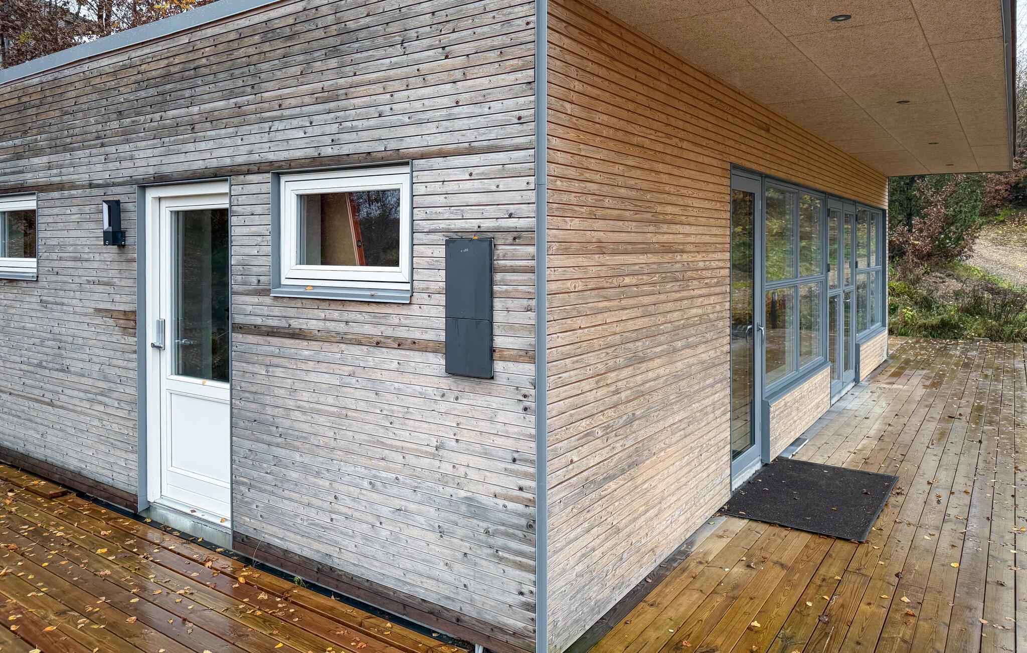Huset falder harmonisk i ét med landskabet. Gå udenfor og nyd den rolige atmosfære på træterrassen. Slå jer ned med en kop kaffe og lad blikket vandre over den store grund. Brug det overdækkede område som et beskyttet sted i al slags vejr eller slap af i solen.