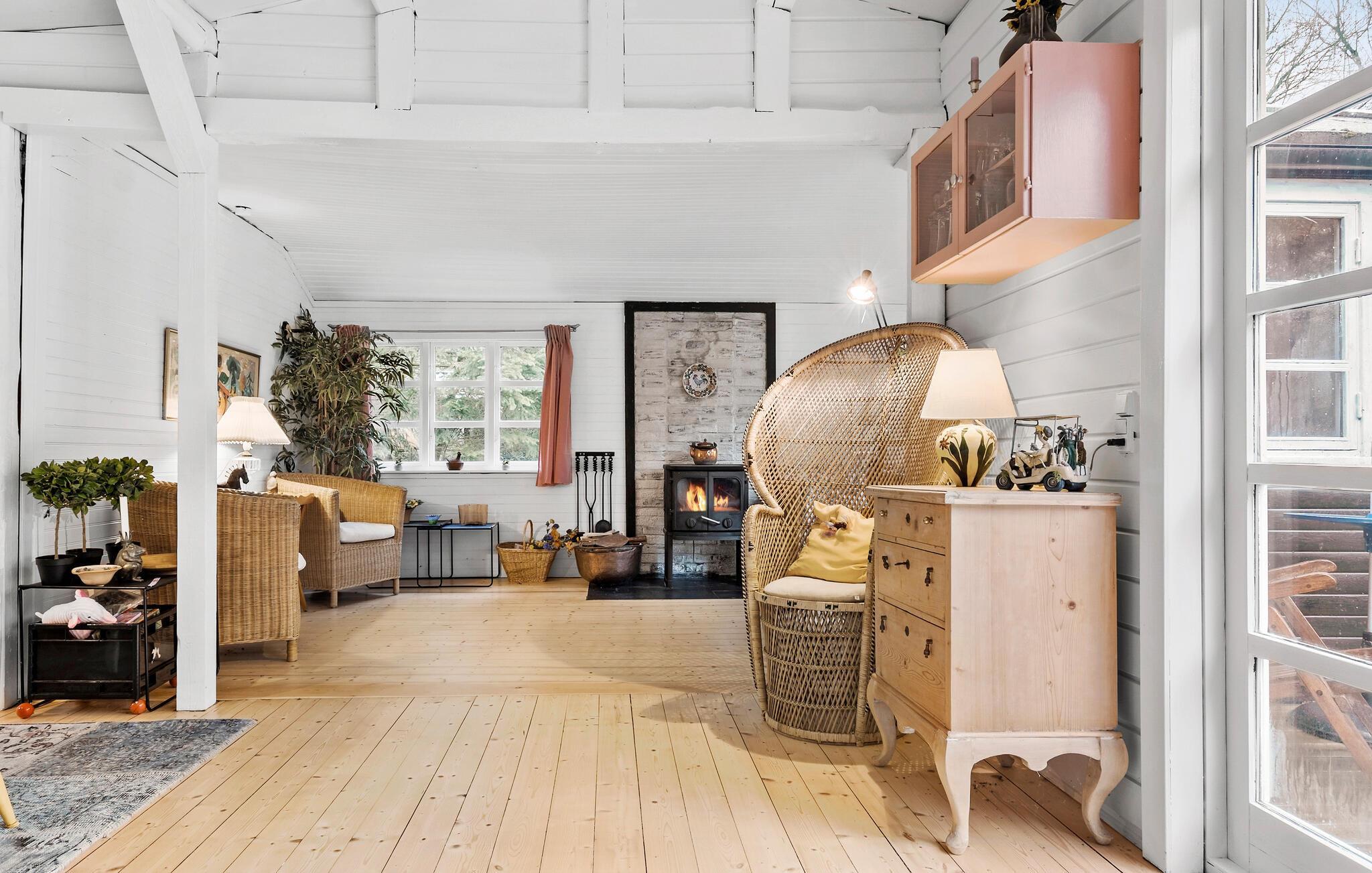 Charmerende træhus i Odsherred med brændeovn, stor have og tæt på både Nyrup Bugt og Nykøbing Bugt.