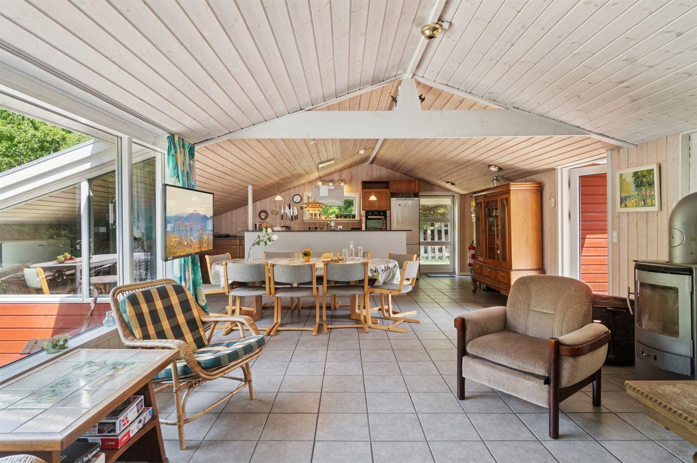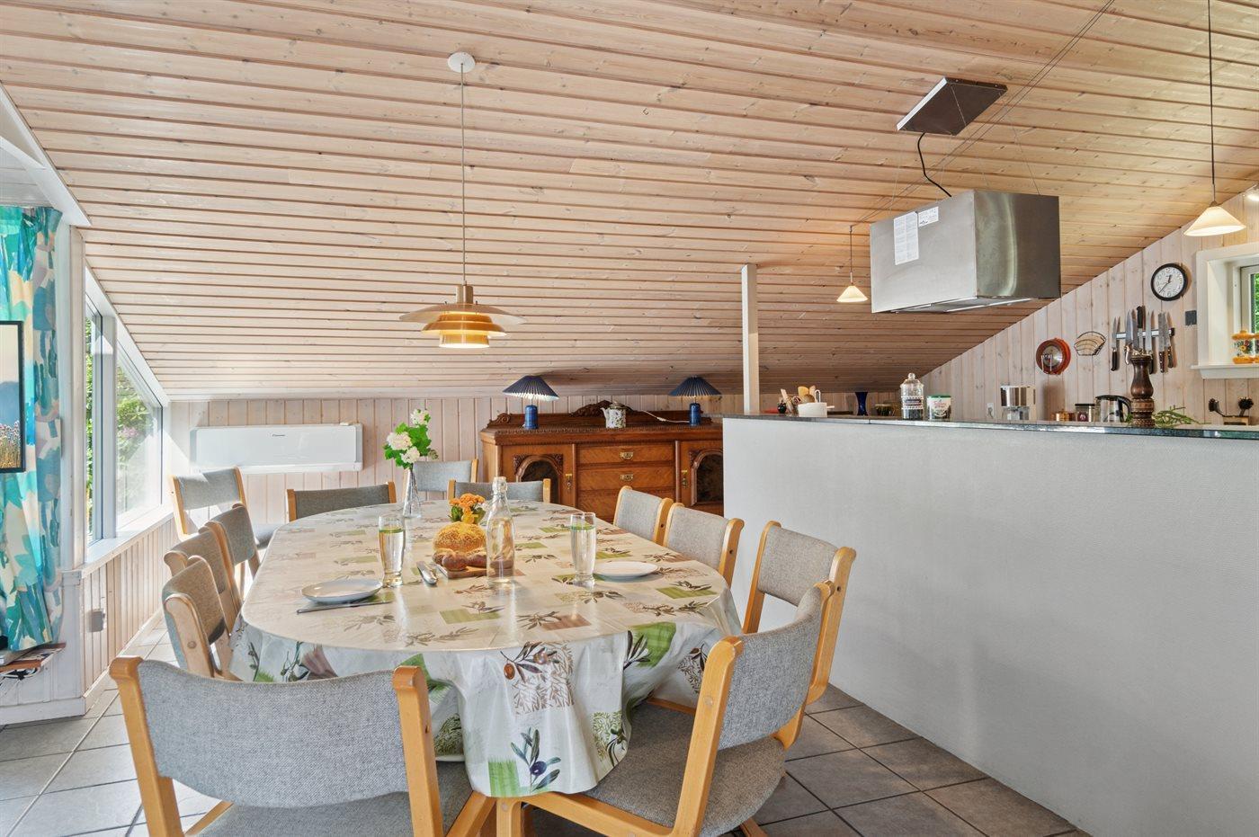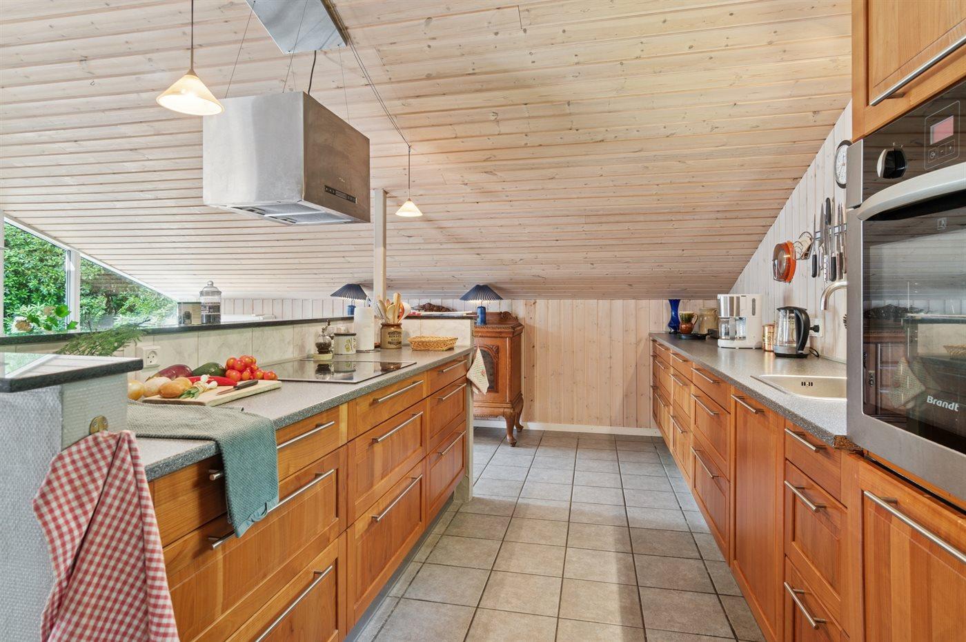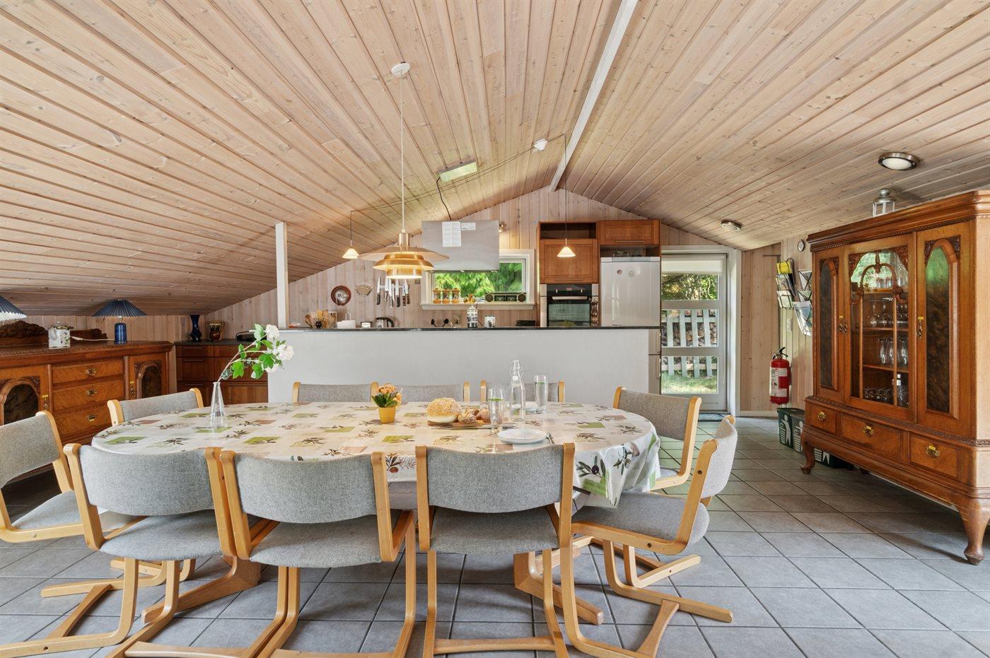 Hjertet i sommerhuset er det store køkken-alrum, som ligger i åben forbindelse med stuen. Der er direkte udgang til terrassen og den lukkede og ugenerte gårdhave.