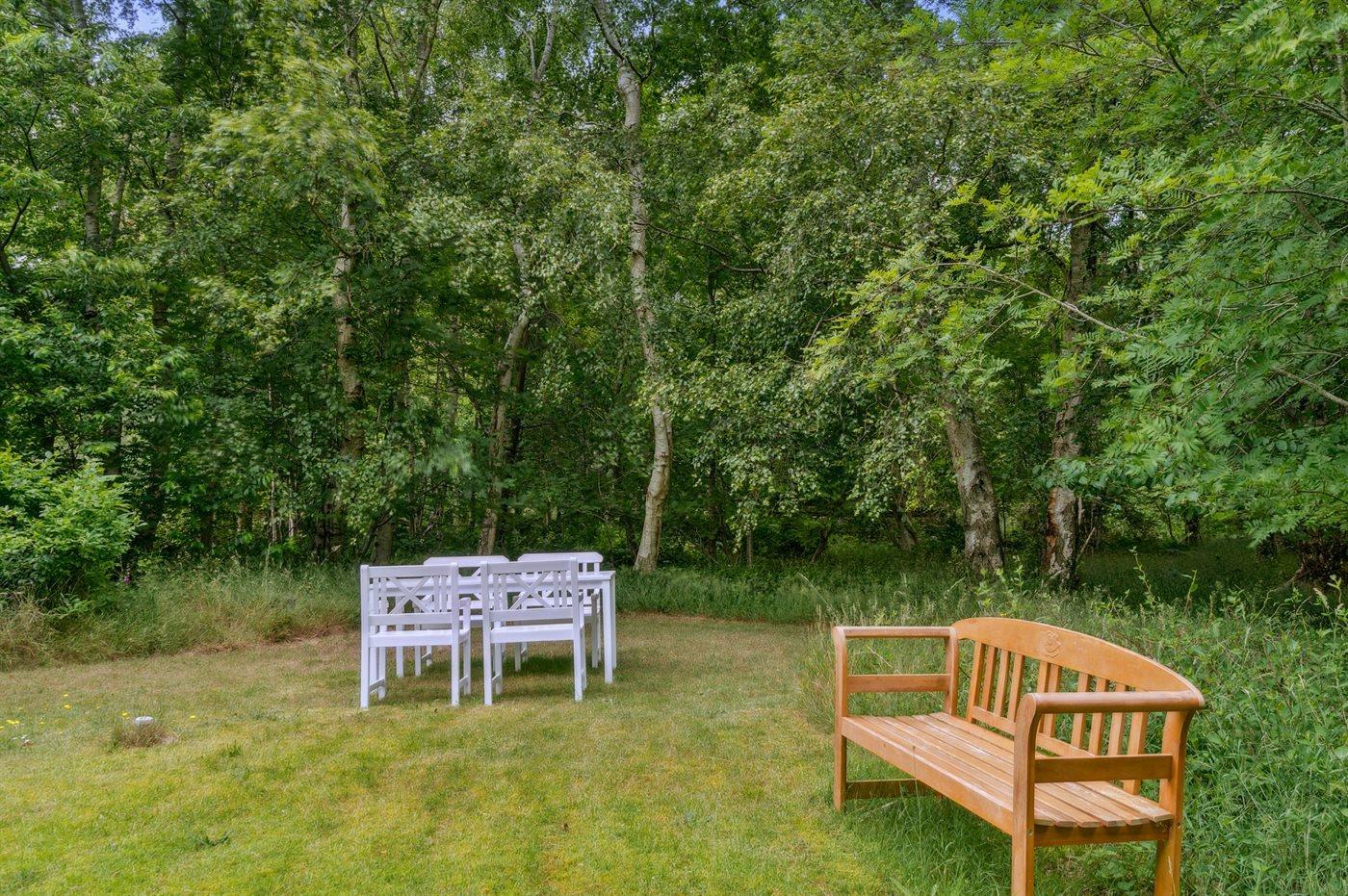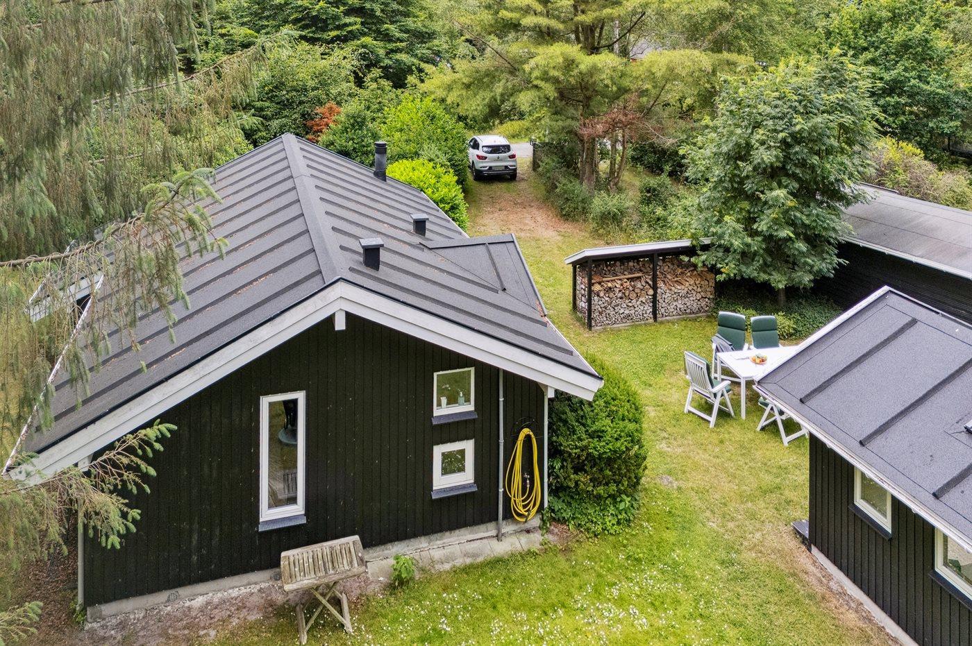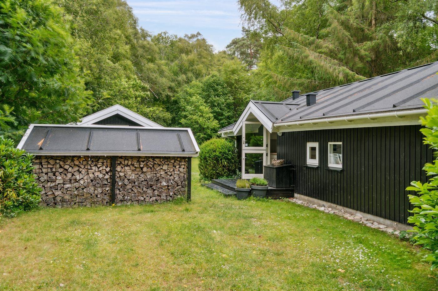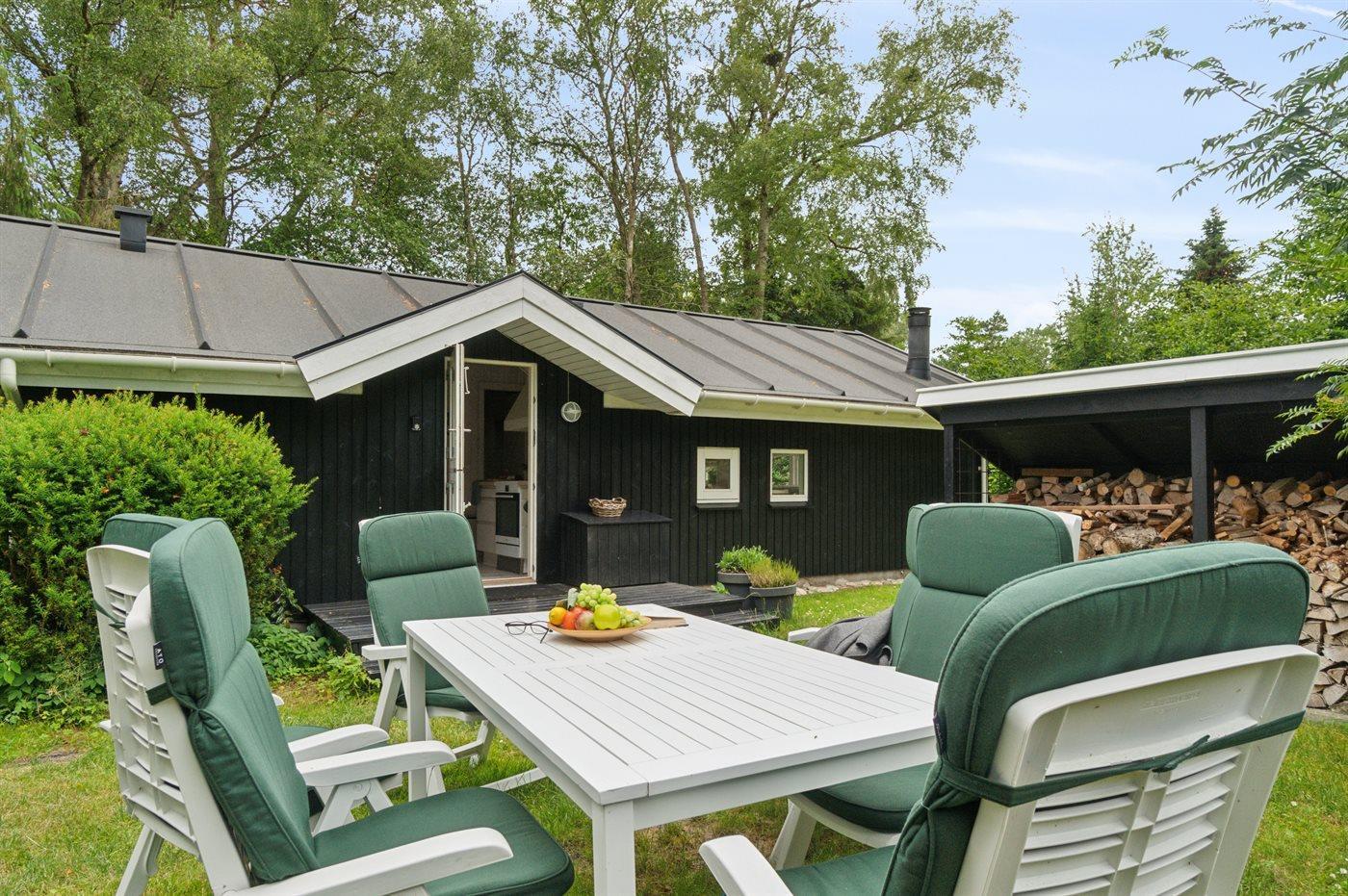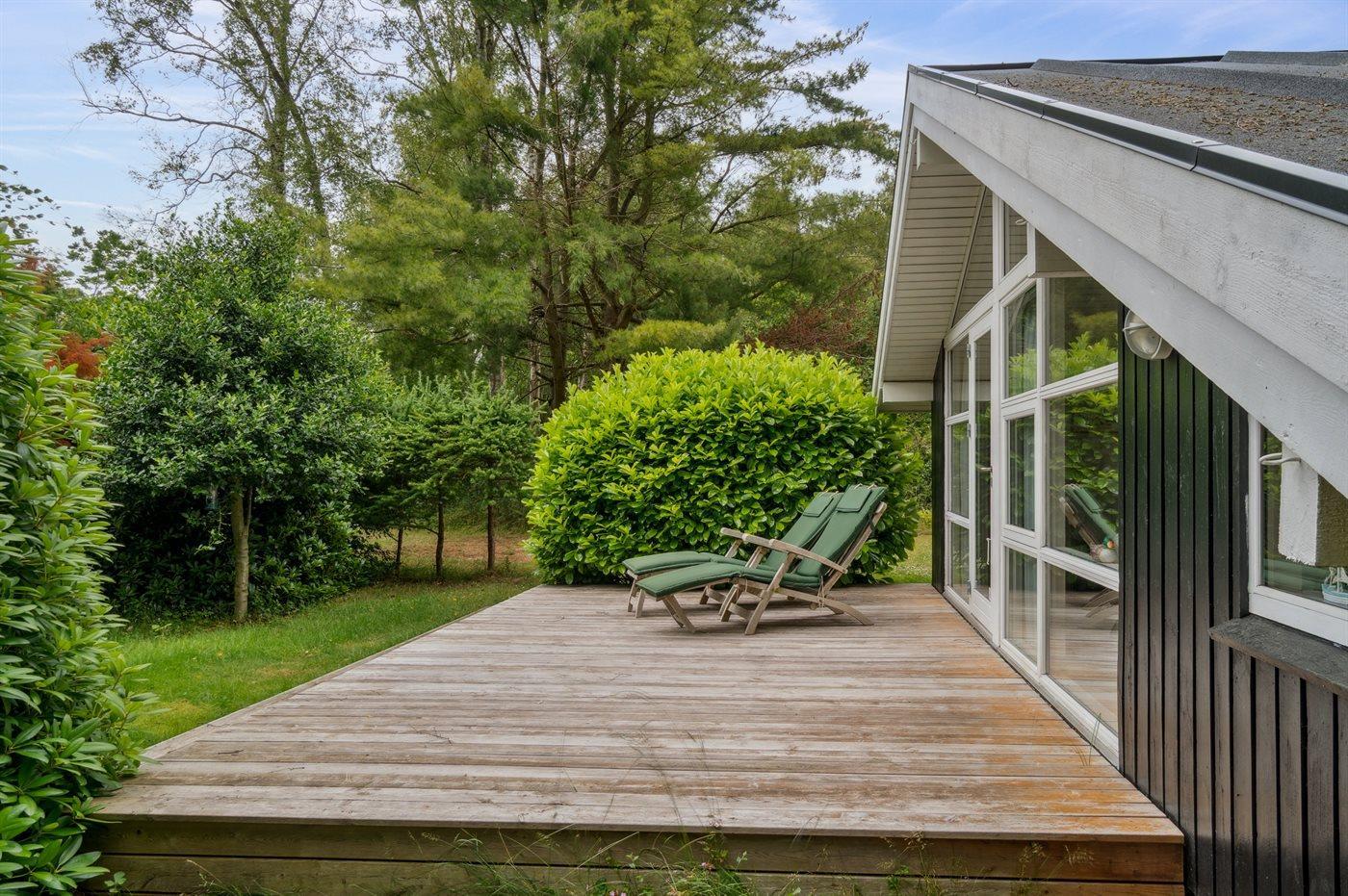 Huset er beliggende på en skøn grund, som er omkranset af beplantning og høje træer og, man kan derfor nyde de fredelige og rolige omgivelser helt ugenert.