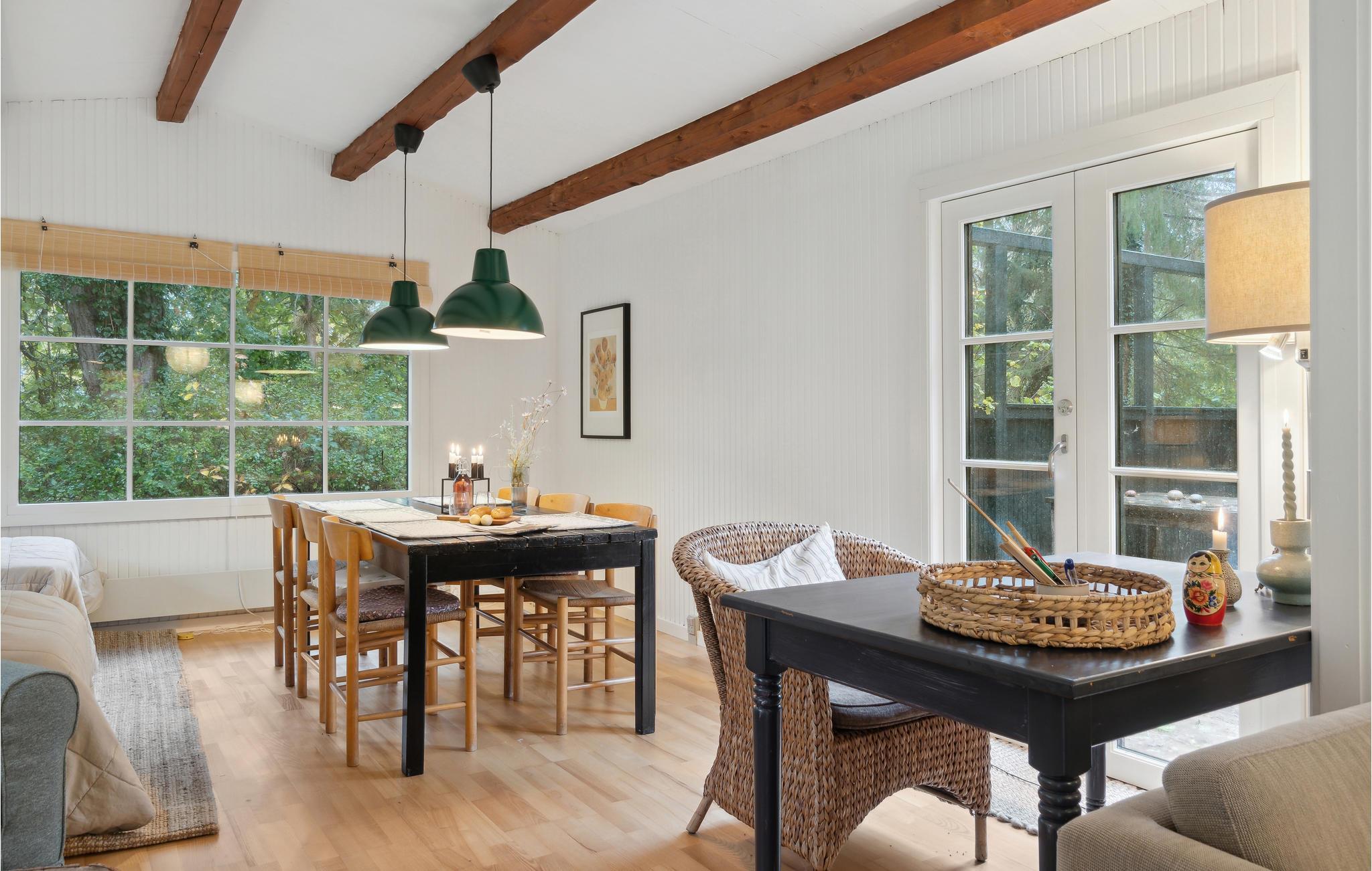 Velkommen til Rørvig og dette hyggelige hus, som giver jer de bedste betingelser for at trække stikket til hverdagen og bare slappe af. Boligen har en varm og hyggelig atmosfære med lyse, moderne elementer, der blander sig med husets oprindelige detaljer. Vinduerne lukker den grønne have ind i fællesrummene, så her kan I sidde og nyde udsigten også på de kølige dage, hvor der er ild i brændeovnen. Fyld dagene med hyggelige indendørsaktiviteter som bøger og brætspil og benyt jer af husets gode faciliteter til madlavning og afslappende stunder i stuen og i haven.