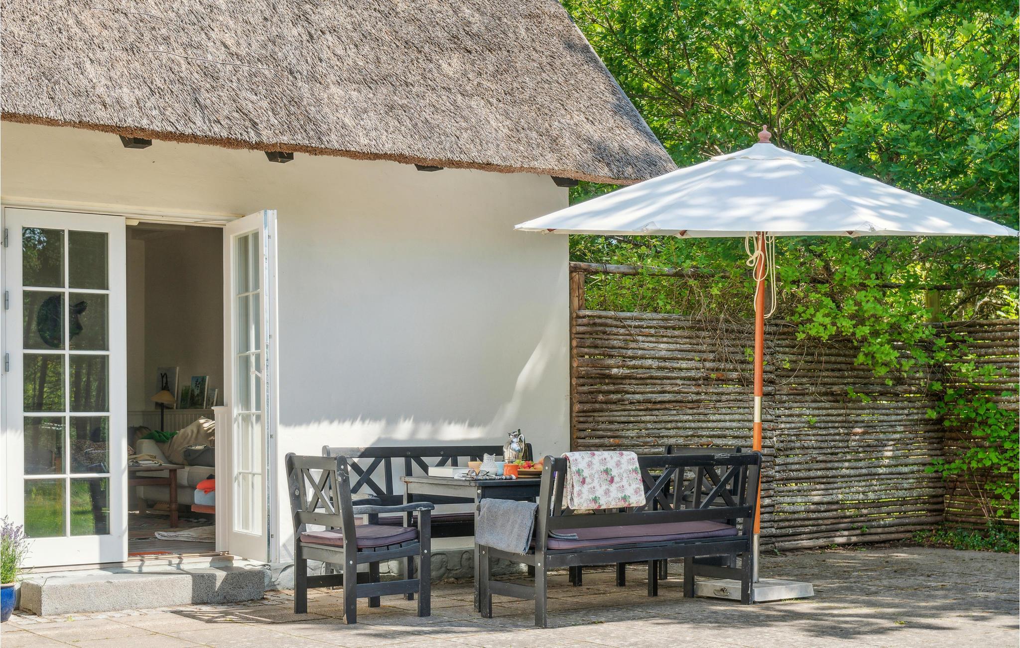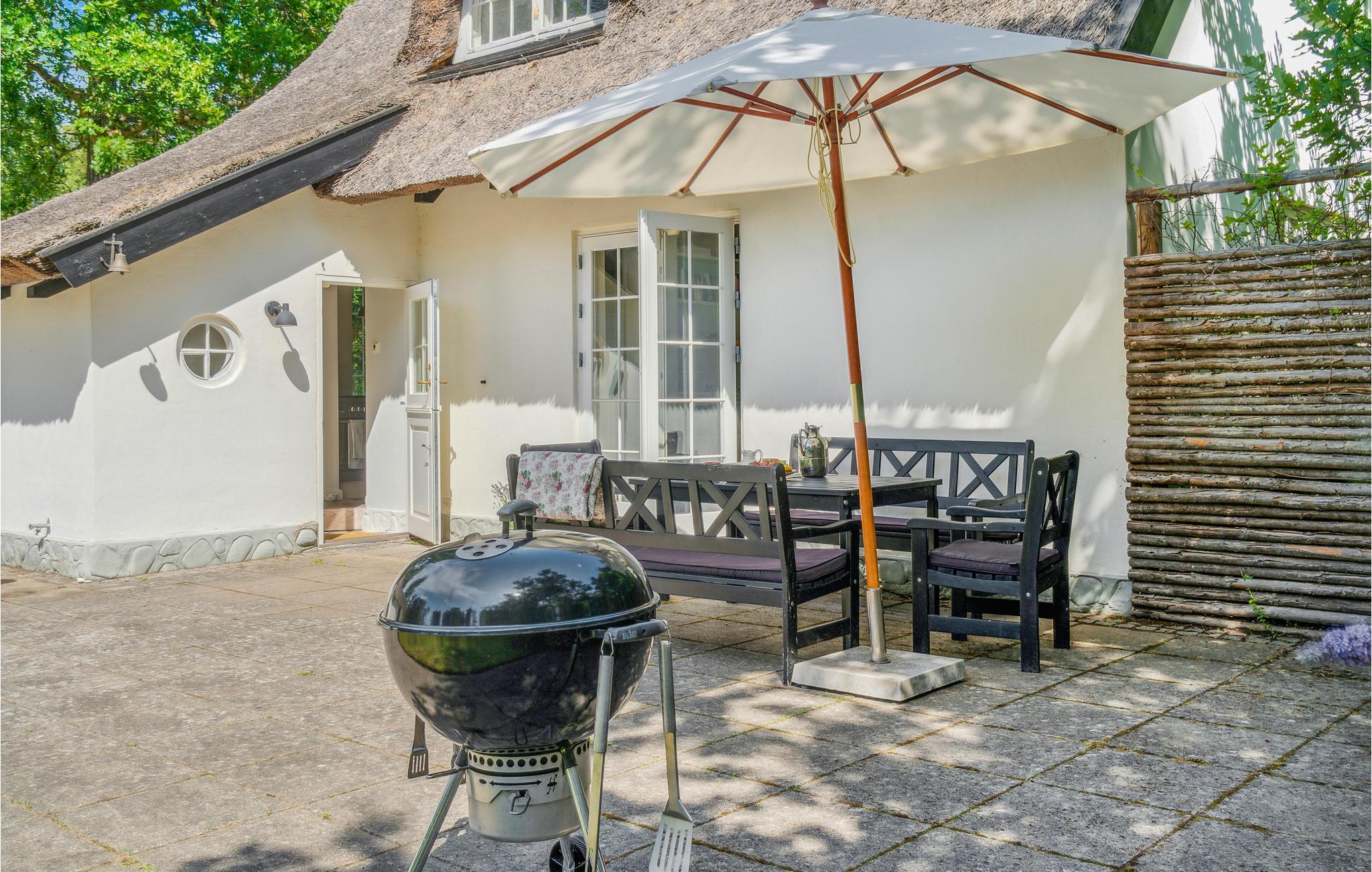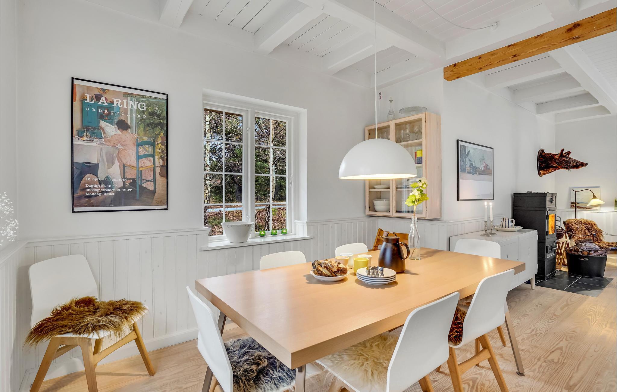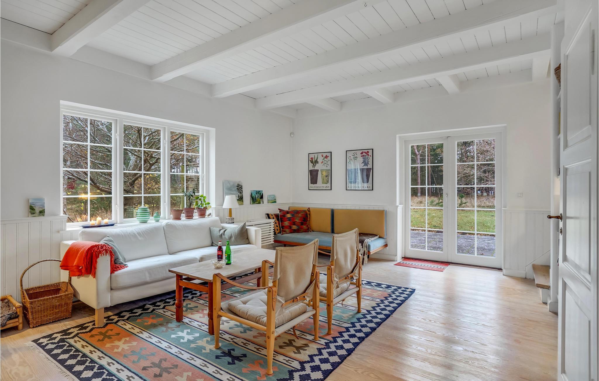 Få hundrede meter fra vandet ligger dette yderst charmerende feriehus i et fredet, smukt naturmiljø. Indretningen er et gennemført miks af klassisk dansk landstil og moderne kvalitet. Her ånder alting fred og idyl, så det er nemt at sænke skuldrene og komme i feriestemning. Sammensæt dagens måltider i det store køkken med udsigt til de grønne omgivelser og tilbring stemningsfulde aftener med brætspil, mens I lytter til ildens hyggelige lyde i brændeovnen.