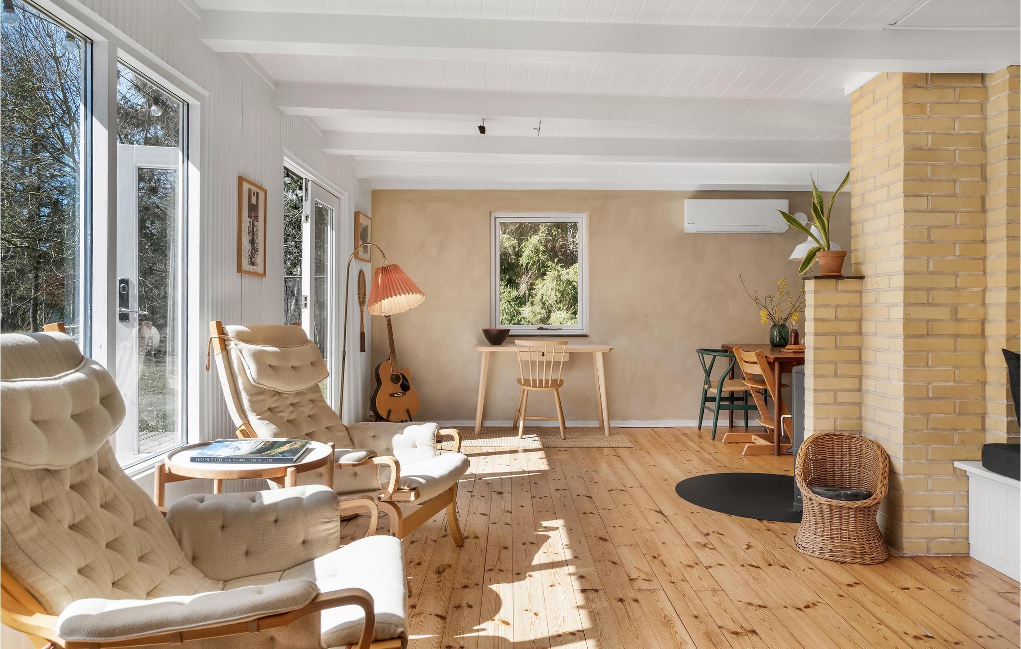 Omgivet af idyllisk natur tæt på havet byder huset jer velkommen. Værelserne får deres hyggelige charme fra velplejede trægulve, den smagfulde indretning og de velplacerede vinduer, der giver en dejlig udsigt over naturomgivelserne. Det hyggelige opholdsrum bliver hurtigt centrum for fælles aktiviteter. Sæt jer til rette ved den knitrende brændeovn efter en begivenhedsrig dag.