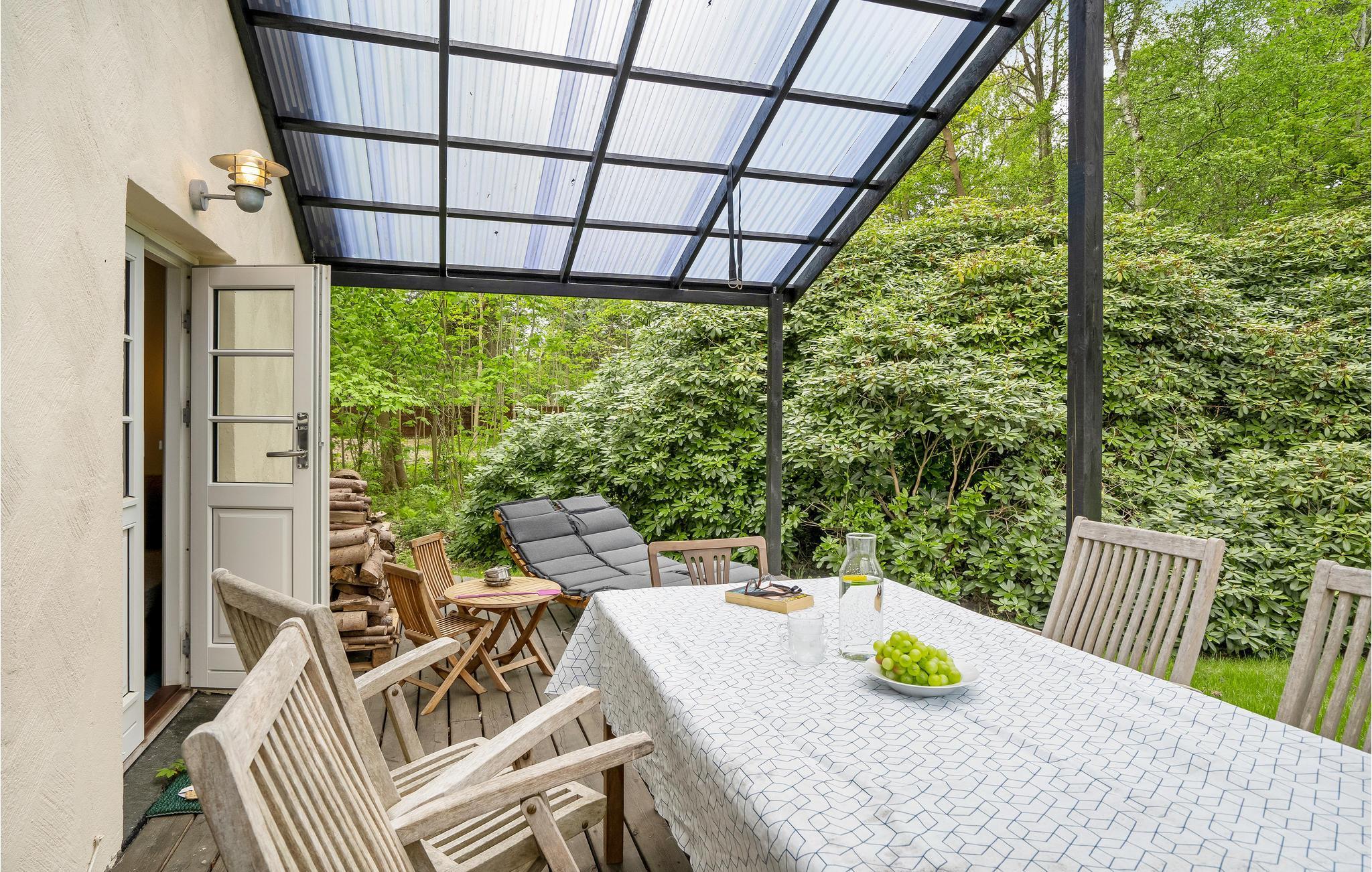 Denne bolig er ideel til familier med børn. Føl jer hjemme i det smukke, lyse og kærligt indrettede hus med stor have og nyd et fredeligt ophold. Spis en lækker morgenmad på terrassen og lad øjnene finde ro i udsigten til det grønne. Lyt til vindens raslen i træerne og lad tankerne vandre, mens børnene boltrer sig i haven.