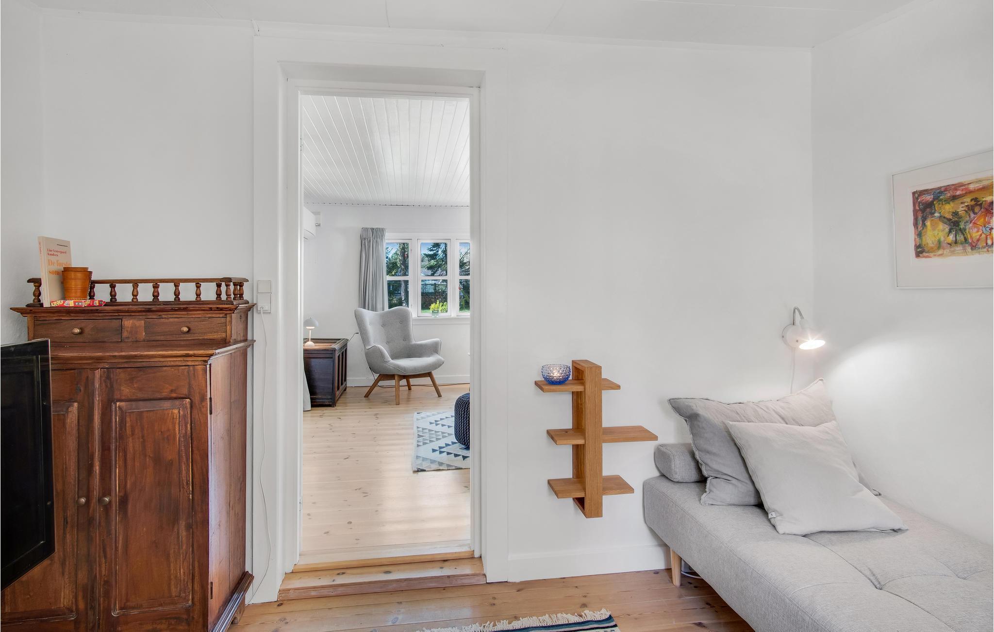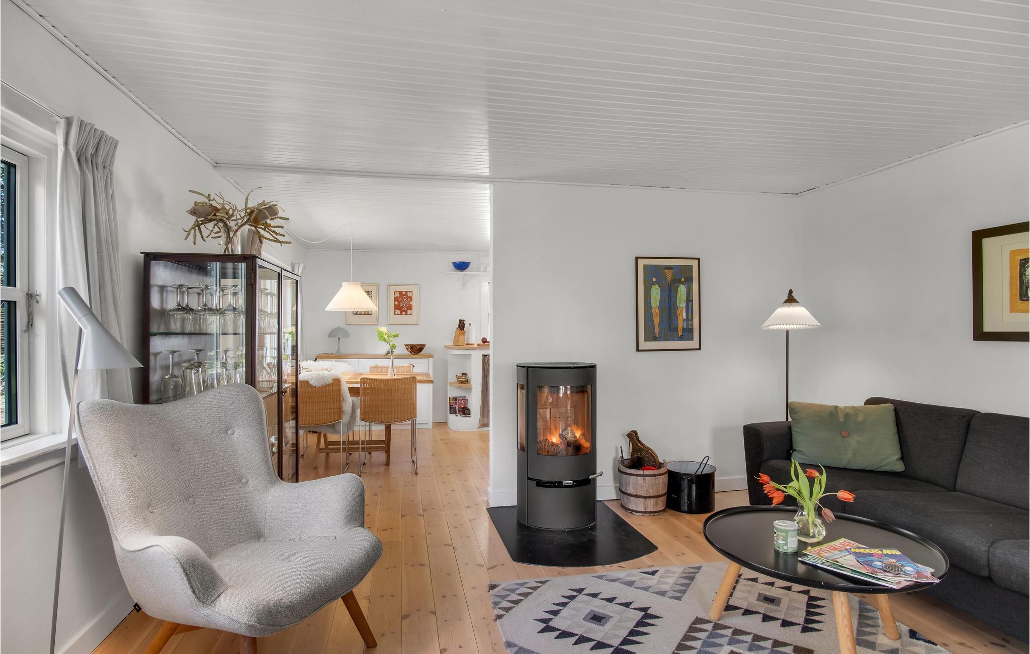 Alt ånder fred og idyl på denne skønne grund, som ligger i et dejligt sommerhusområde nord for Nykøbing. Her slår I dørene op til et charmerende hus med moderne møbler og flotte istandsættelser, der passer godt med oprindelige detaljer som trægulvene og sprossevinduerne. Huset har en rolig atmosfære, så her man kommer helt automatisk ned i tempo. I vintersæsonen kan I fylde dagene med raske gåture og vende hjem til hygge i stuen med brætspil og ild i brændeovnen. Der er også gode rammer til at samles udendørs. Vælg en af ??de to terrasser og dæk op til dagens måltider i fuld solskin.