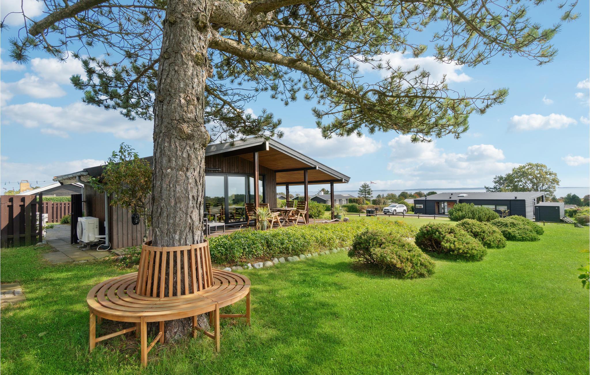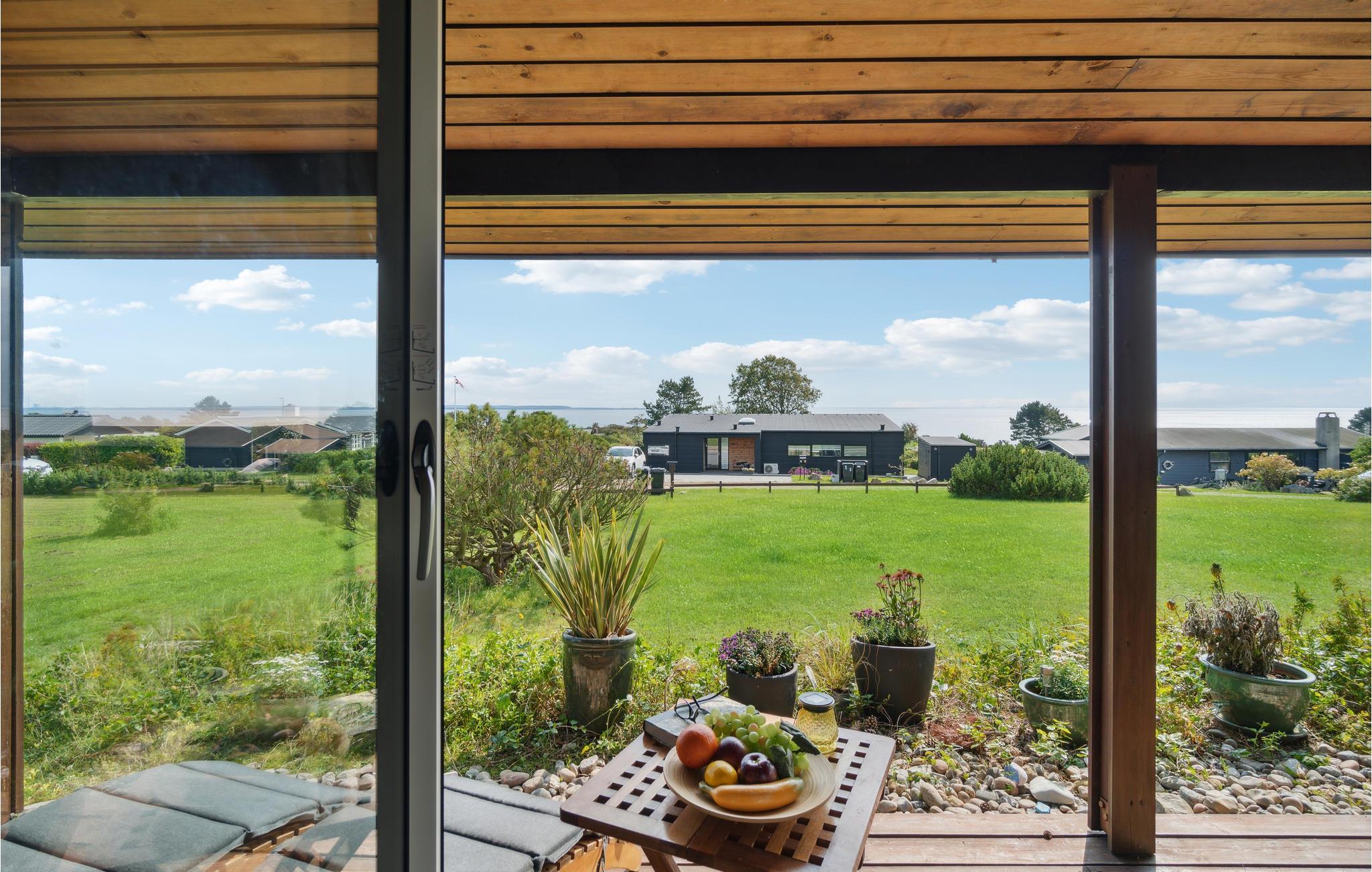Udvendigt venter der dejlige terrasser med både åbne og overdækkede områder, udstyret med komfortable havemøbler til udendørsspisning og solbadning. Naturligvis har I også grill til rådighed, så I kan holde hyggelige grillaftener. På en klar dag kan man se Fyn mod syd, Samsø mod vest og Sejerø mod nord. Den store have byder på mere end rigeligt med plads til leg, boldspil og udendørsspil (der er kroket og petanque på stedet). Jeres hund er også meget velkommen her og vil elske at boltre sig på græsset.