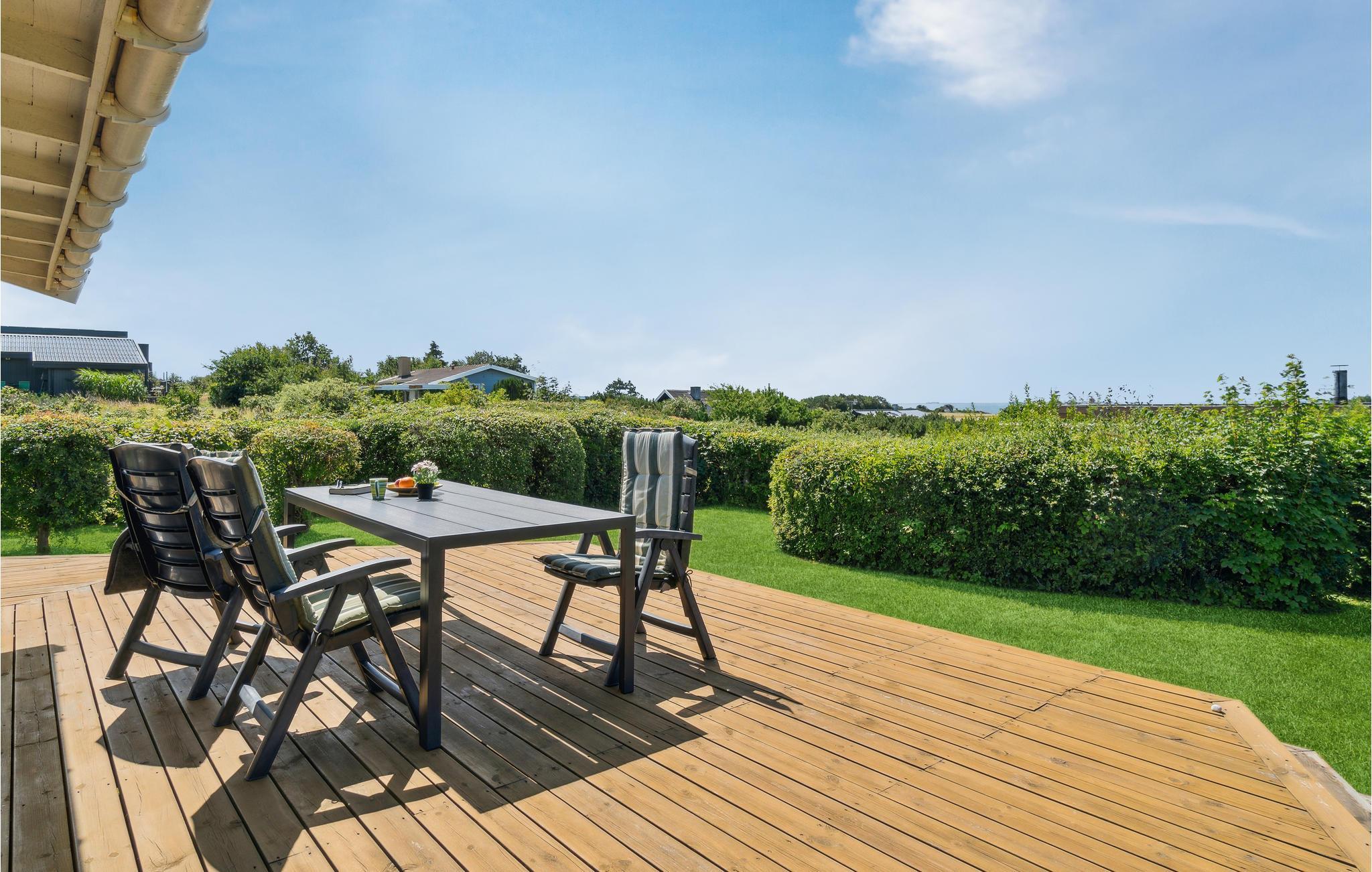Udenfor er der to store terrasser med en fantastisk udsigt over vandet, hvor I kan nyde solnedgangene, de lyse nætter og de tidlige morgentimer. Den store have er fuld af hyggelige hjørner til afslapning, men giver jer også mulighed for leg og boldspil. Hvis der er nogle friluftsmennesker i familien, er der en bålplads, hvor man kan samles om om aftenen, ligesom der selvfølgelig også er en grill.