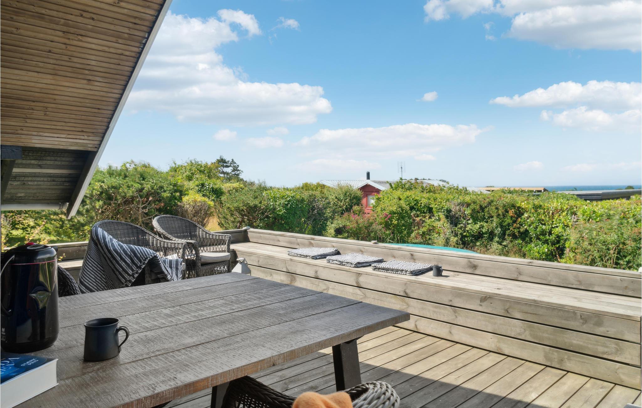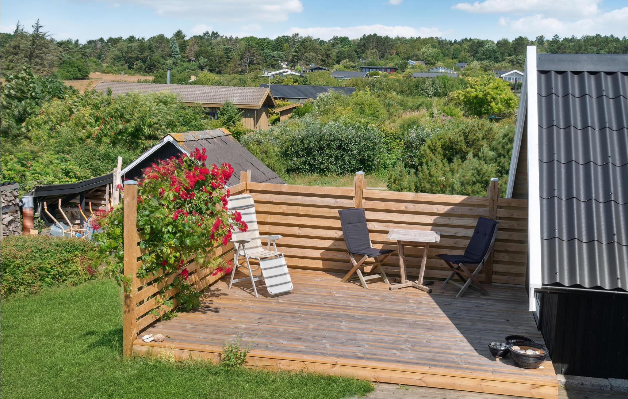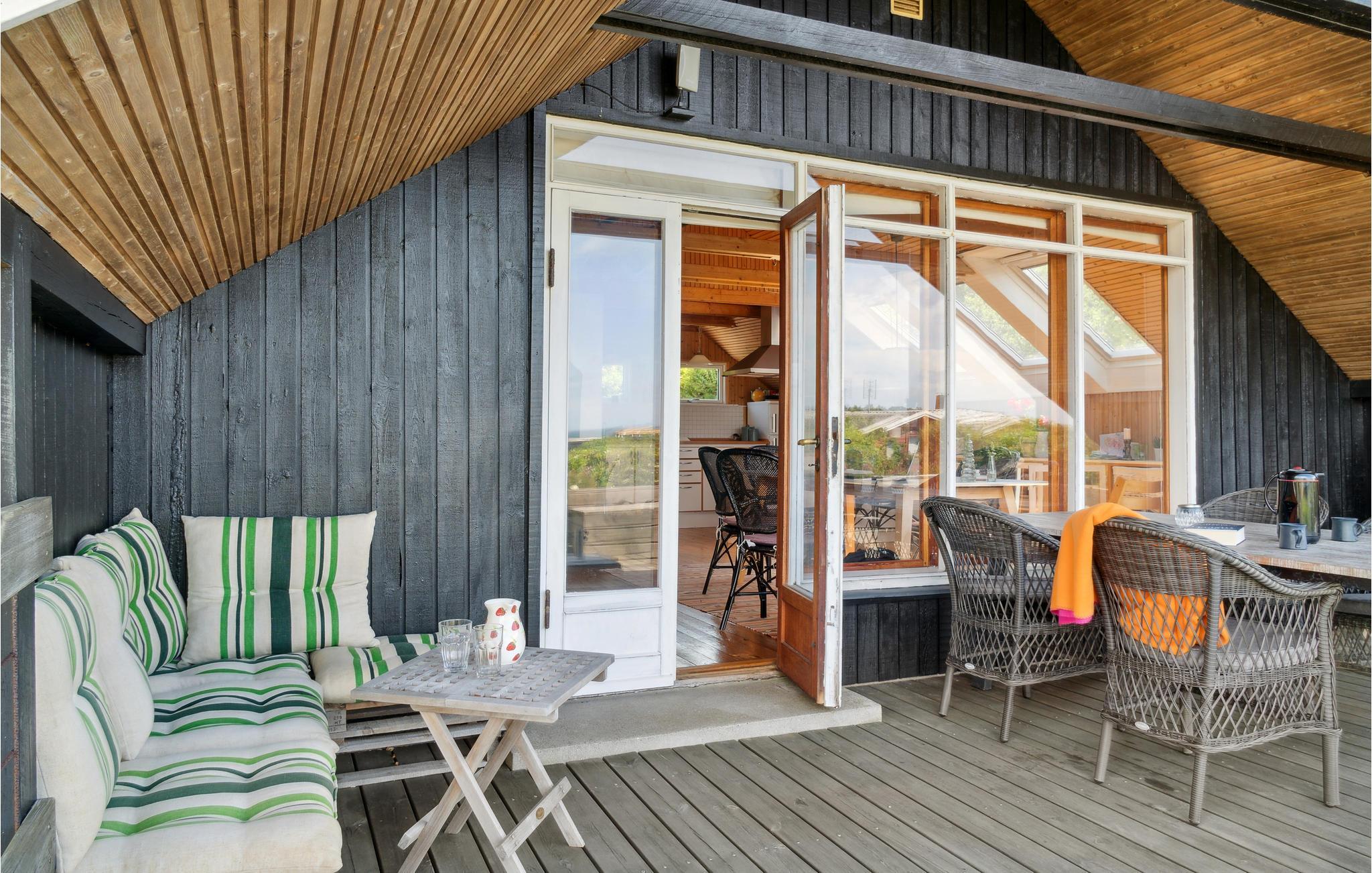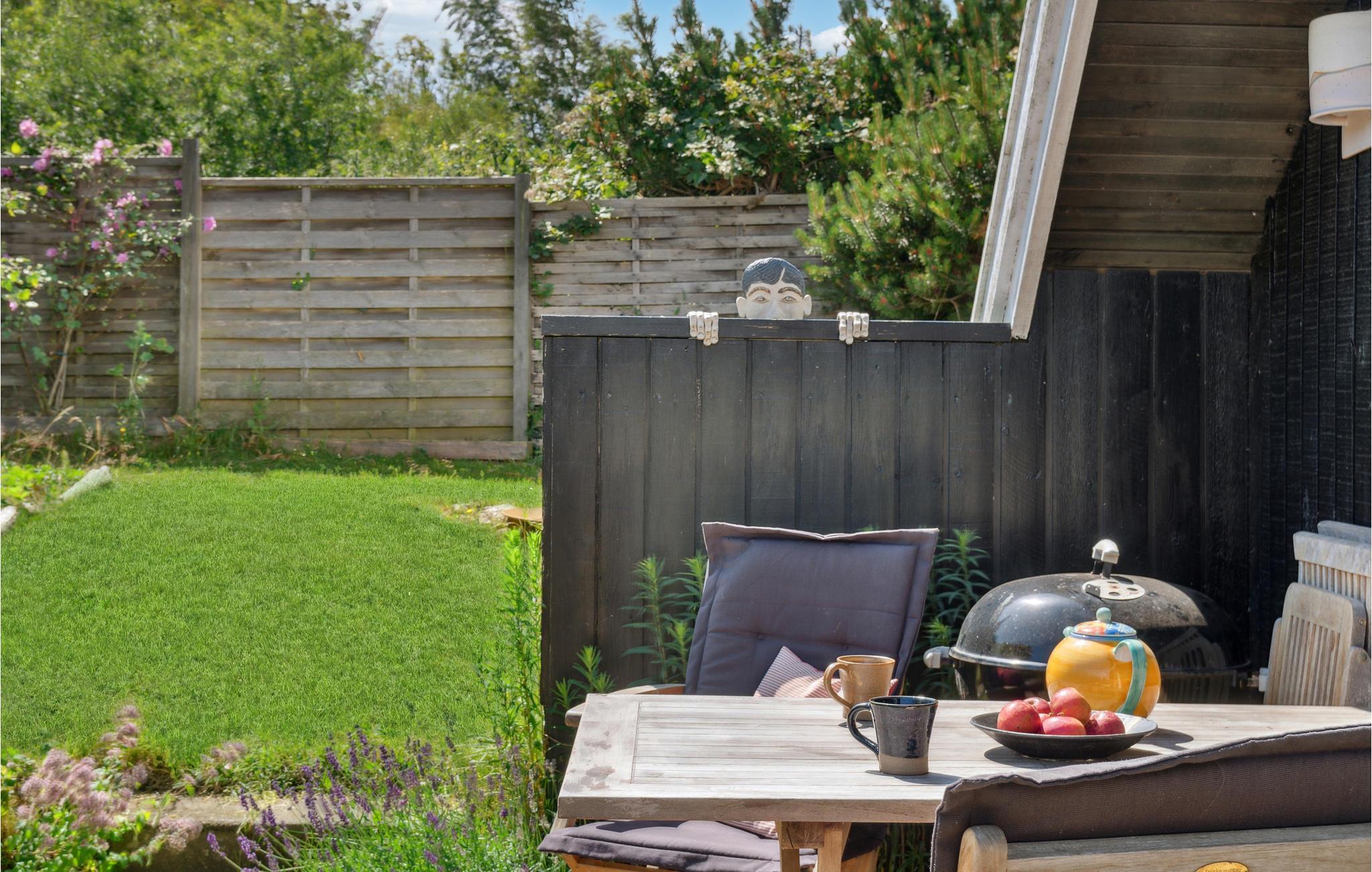 Når sommeren kommer, leves livet på terrassen, hvor I kan sætte jer med et glas vin og nyde en solnedgang over havets blå. Året rundt kan børnene boltre sig i haven, hvor der også er gynger og sandkasse.