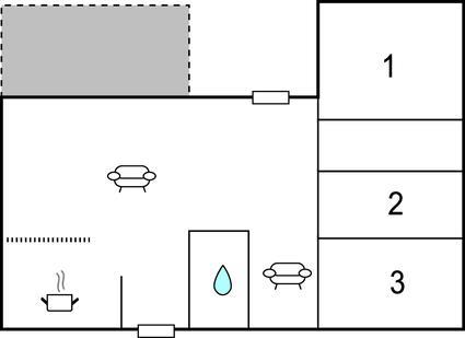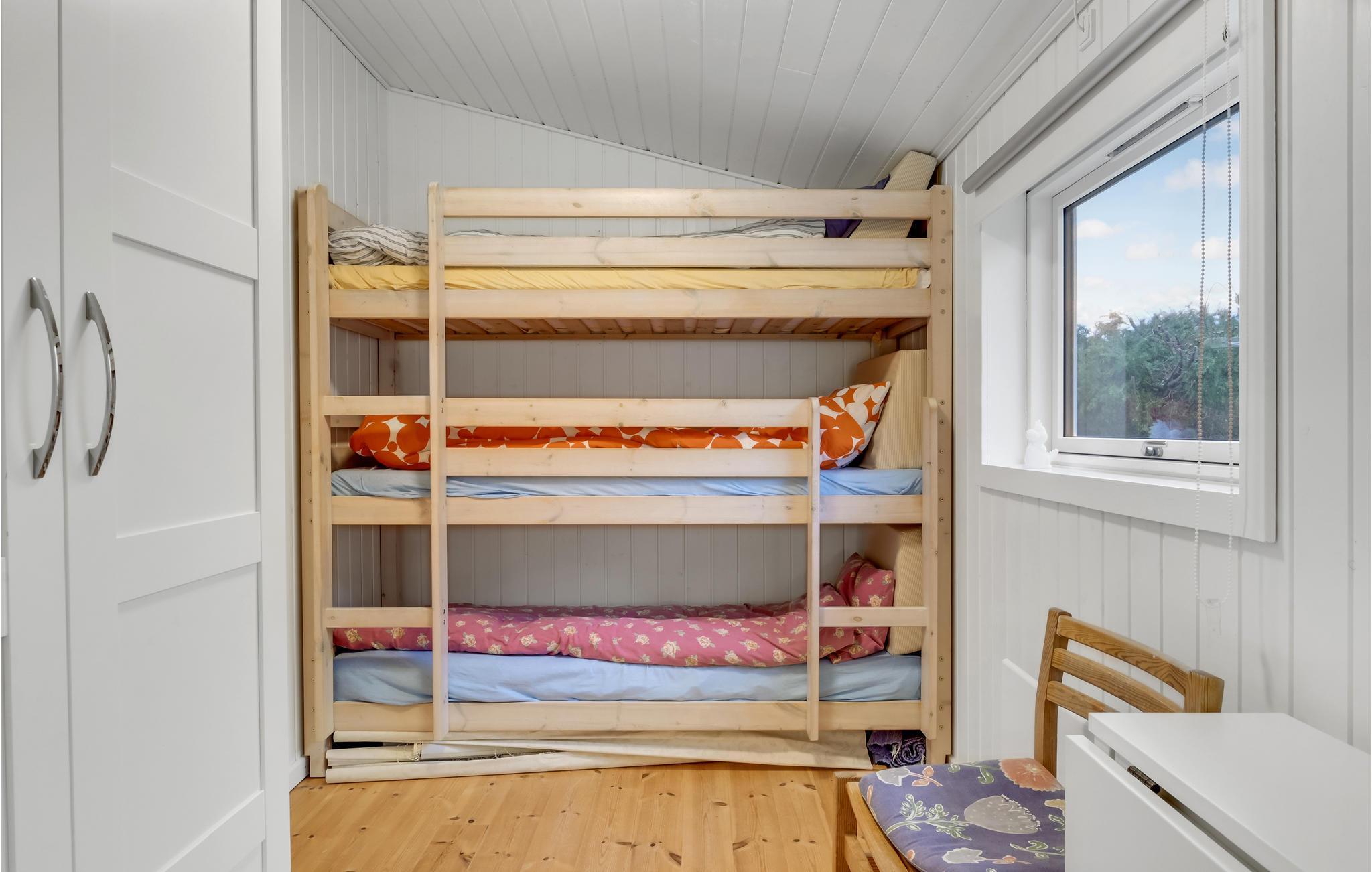 Soveværelse (nr. 1) - 2 Sovepladser. (Dobbeltseng(e)). 3 Sovepladser. (Etageseng(e)).