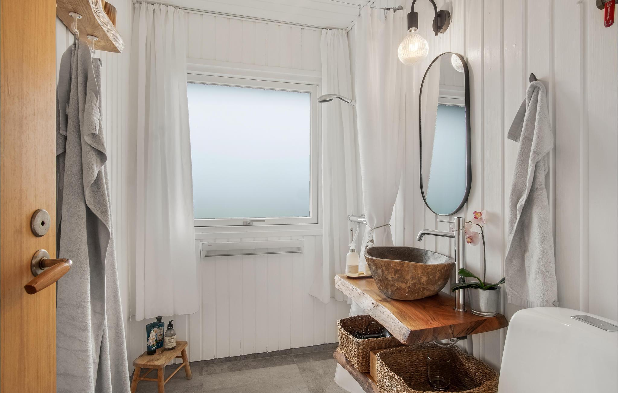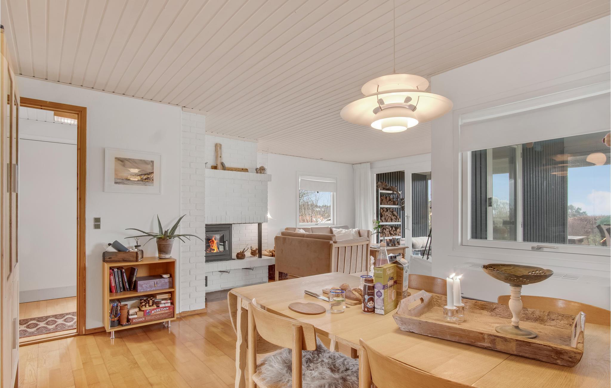 Velkommen til dette charmerende og lyse sommerhus. Så snart I ankommer, vil I føle jer hjemme. Det hyggelige hus med brændeovn er en drøm af hvidt og træ, der bidrager til en dejlig atmosfære. Slå fødderne op i sofaerne, spil kort og se på fugle og det, der sker i bugten, med kikkerten.
