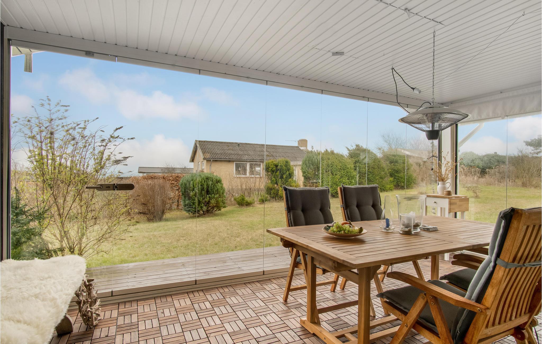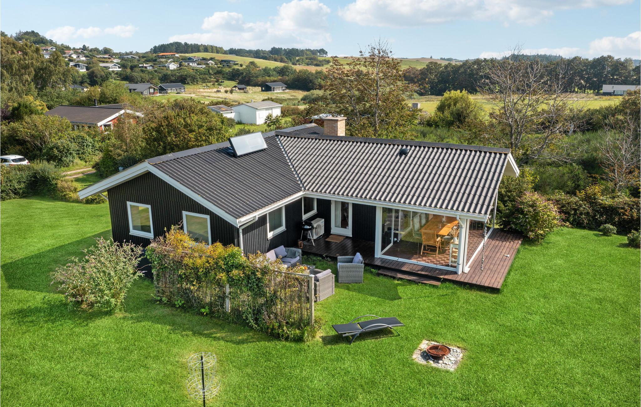 Den indbydende havestue er det perfekte sted at nyde lange aftener med udsigt over haven. Om I holder vinduerne åbne eller lukkede er op til jer. Haven er et dejligt sted at lege og solbade til stor glæde for jeres børn. I kan også grille skumfiduser på bålpladsen.