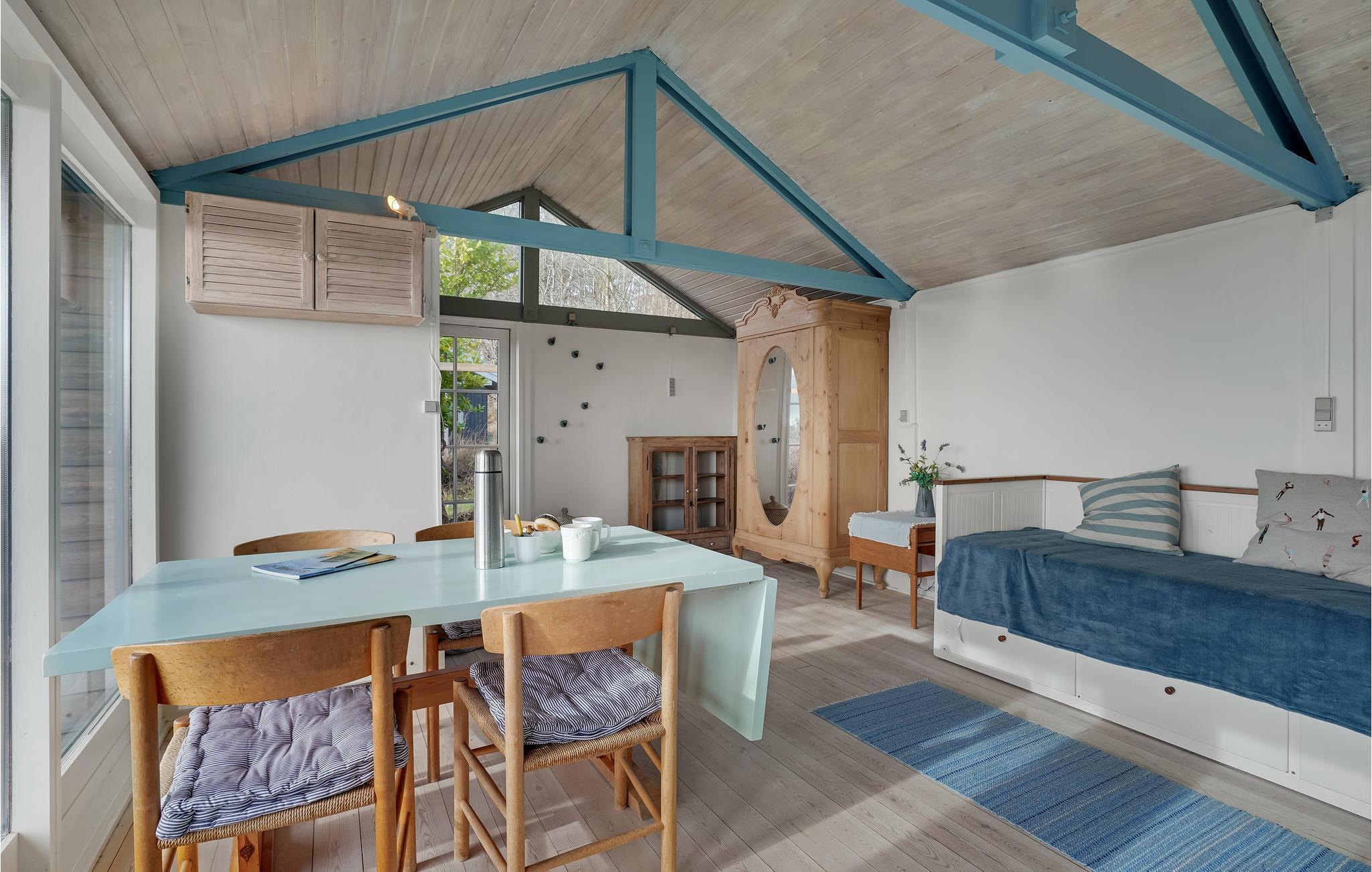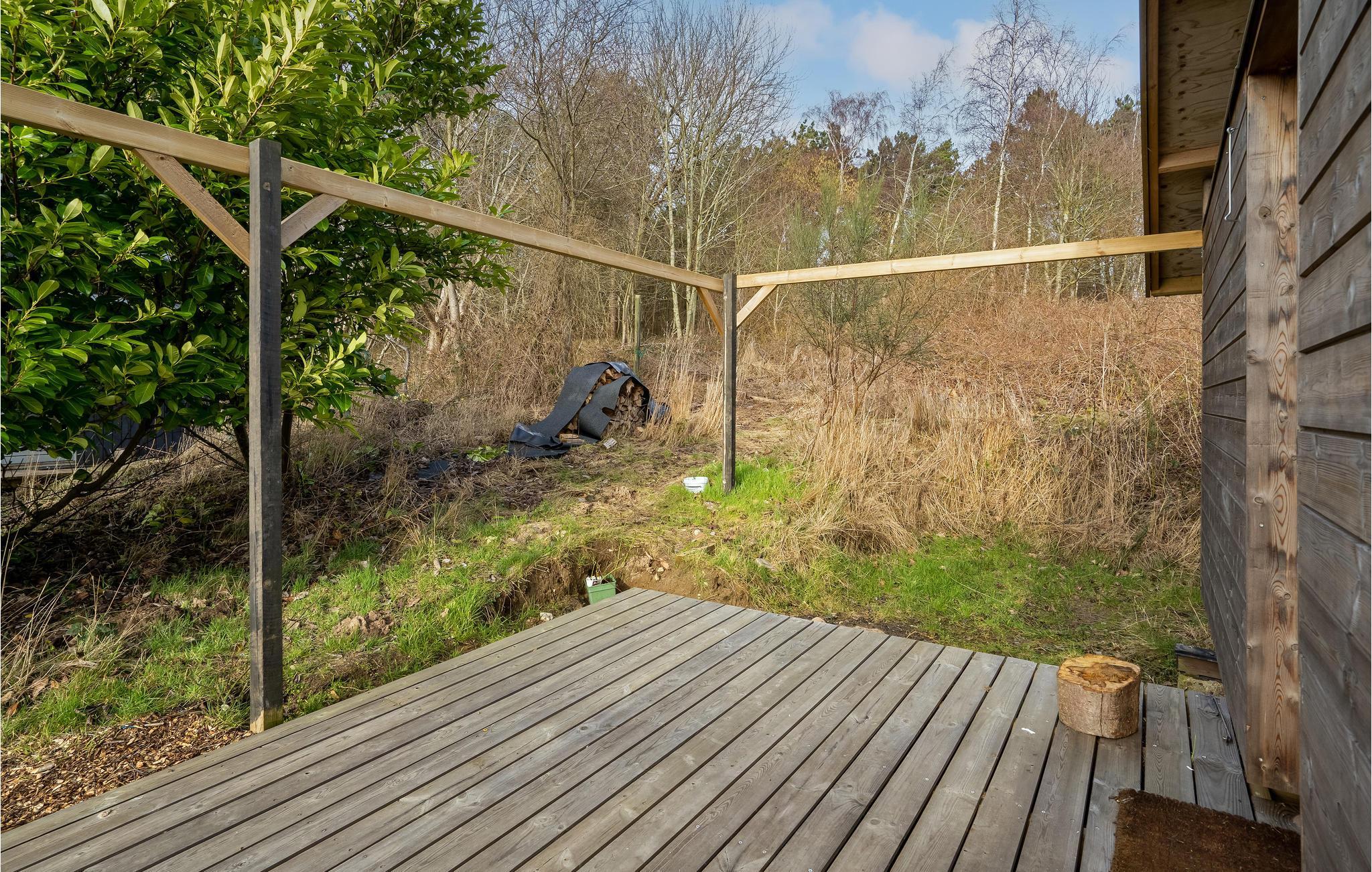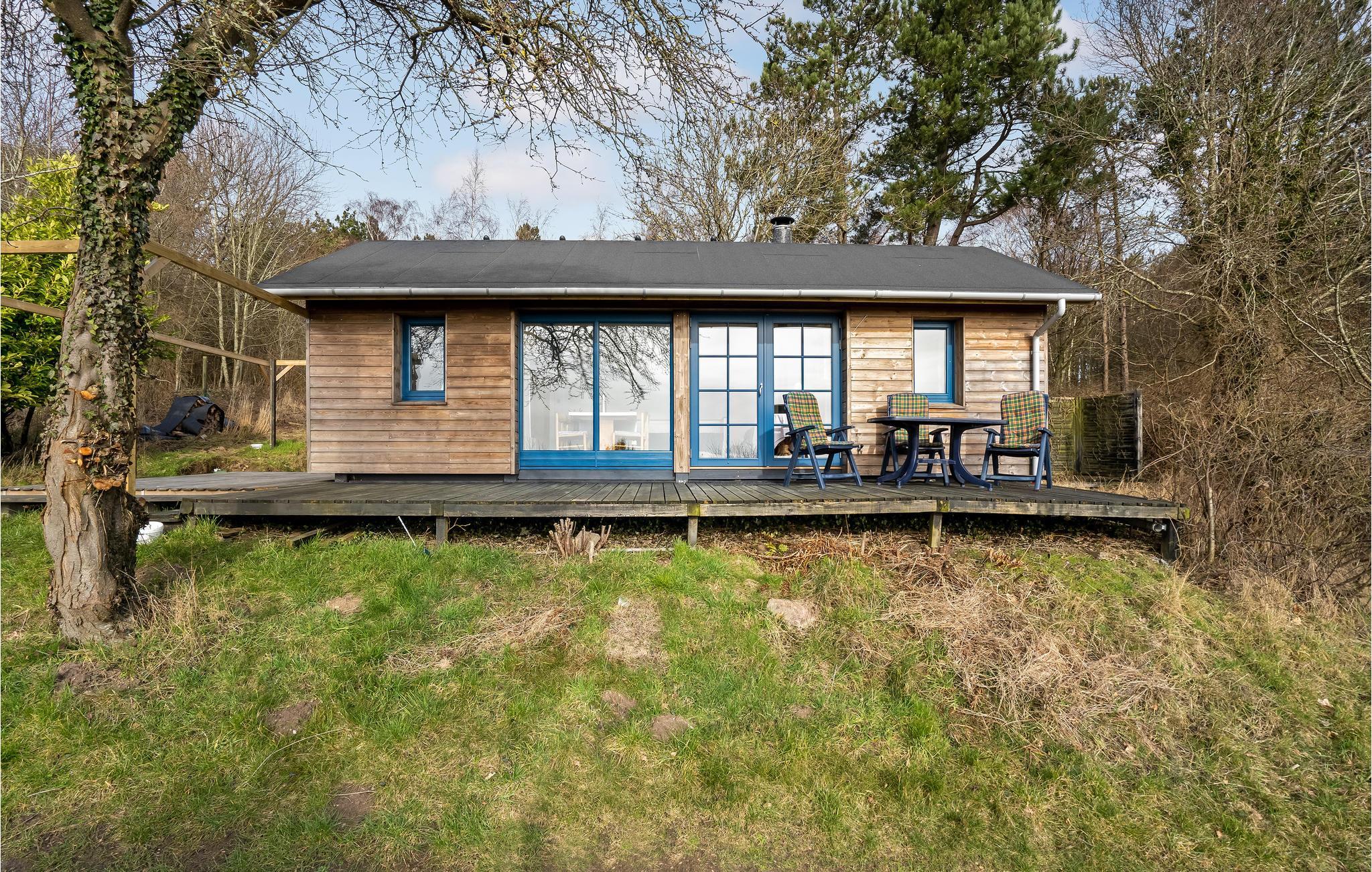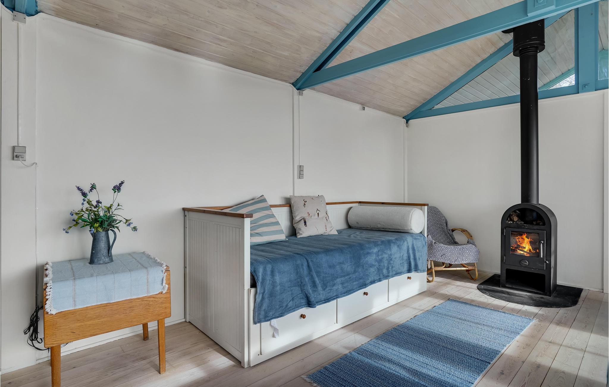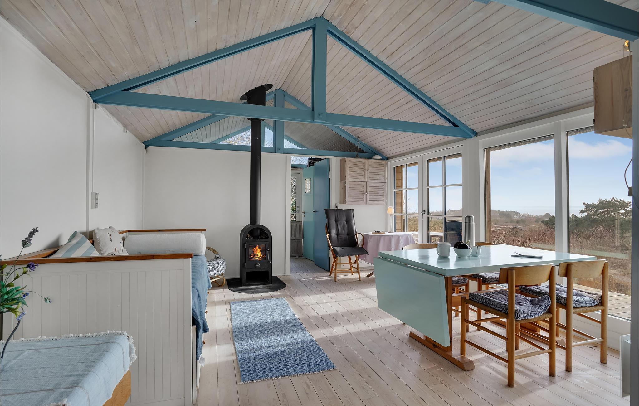 Der er lagt op til nogle dejlige feriedage med familien tæt ved Røsnæs Strand. Her giver dette helt særlige sommerhus jer nogle fredfyldte rammer, hvor I kan lade op inde og ude, læse bøger og spille brætspil, mens ilden buldrer i stuens hyggelige brændeovn. Det lille køkken er udstyret med alt, hvad I skal bruge til at fremtrylle feriens måltider. Den store træterrasse giver jer et dejligt sted at nyde morgenkaffen og afslutte dagene med lækre grillretter.