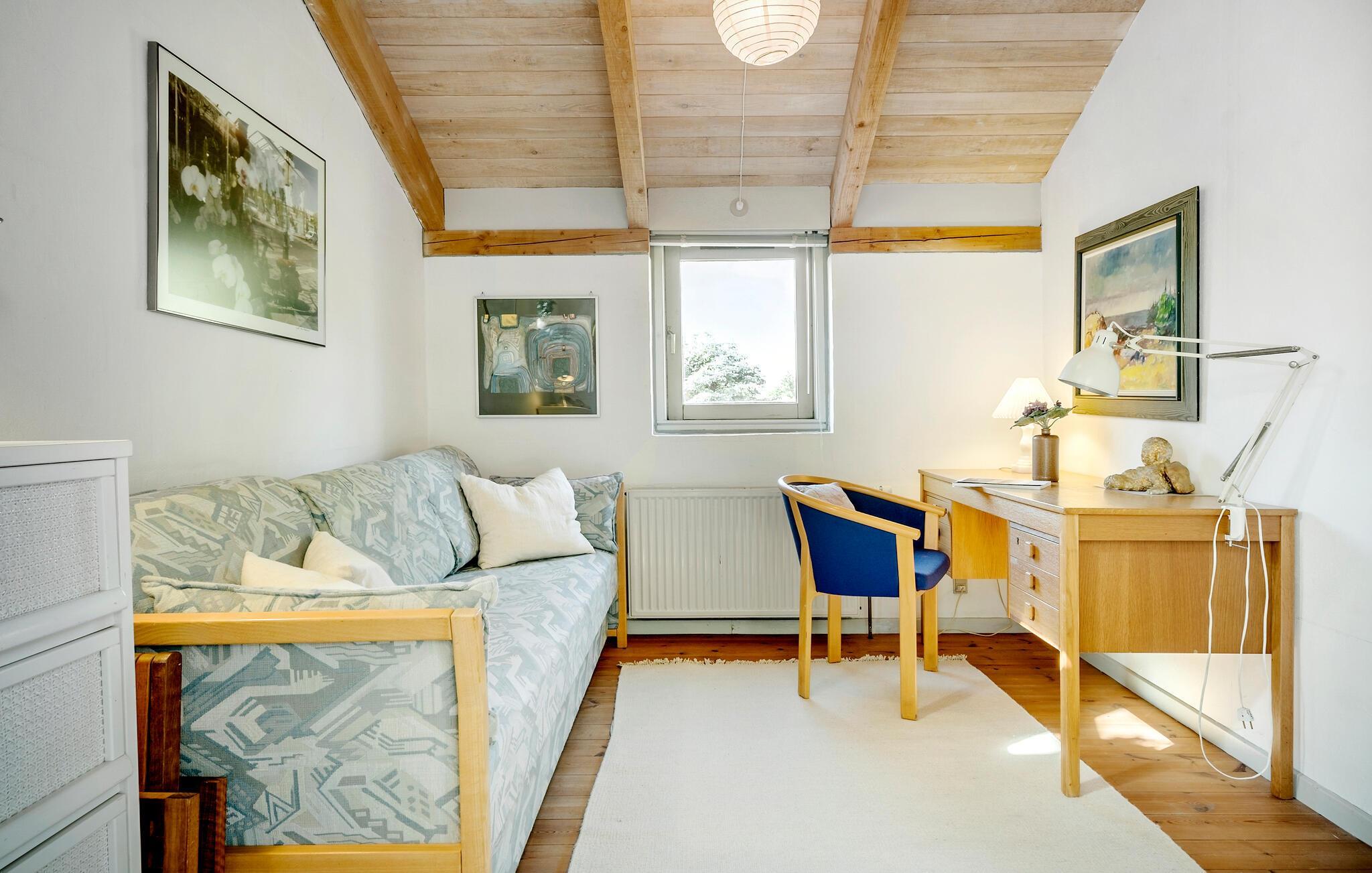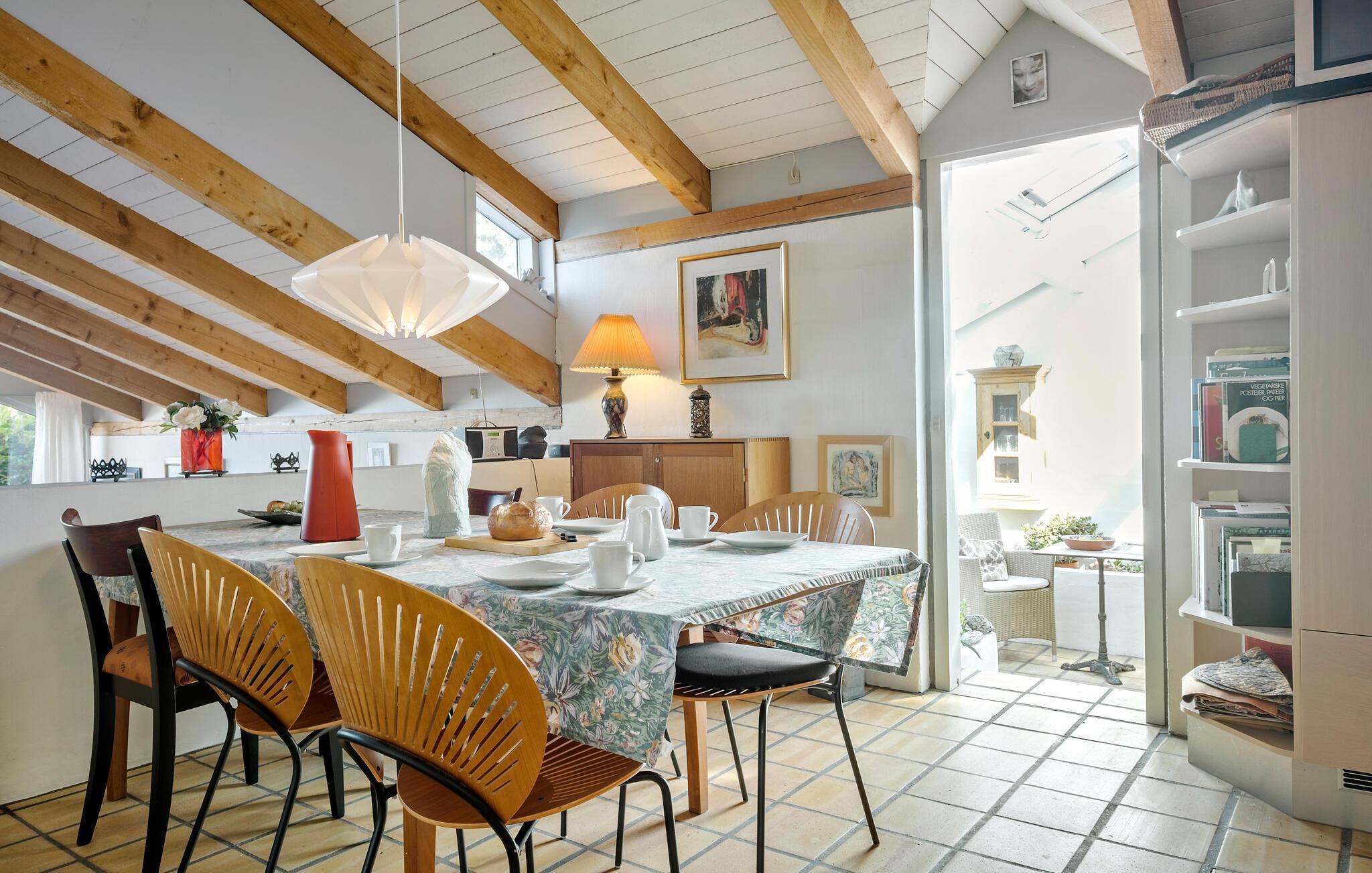 Dette hyggelige hus ved Kalundborg Fjord er det perfekte sted for en ægte drømmeferie. Det stilfulde interiør med synlige træbjælker i loftet og en interessant rumopdeling skaber en fortryllende feriestemning. Det rummelige køkken er ideelt til at tilberede en lækker morgenmad sammen. I udestuen kan I nyde den imponerende udsigt gennem de store vinduer, eller I kan snuse til den friske havbrise på den hyggelige terrasse. Om aftenen byder de rummelige sofaer på afslapning, mens brændeovnen skaber varme og hygge.