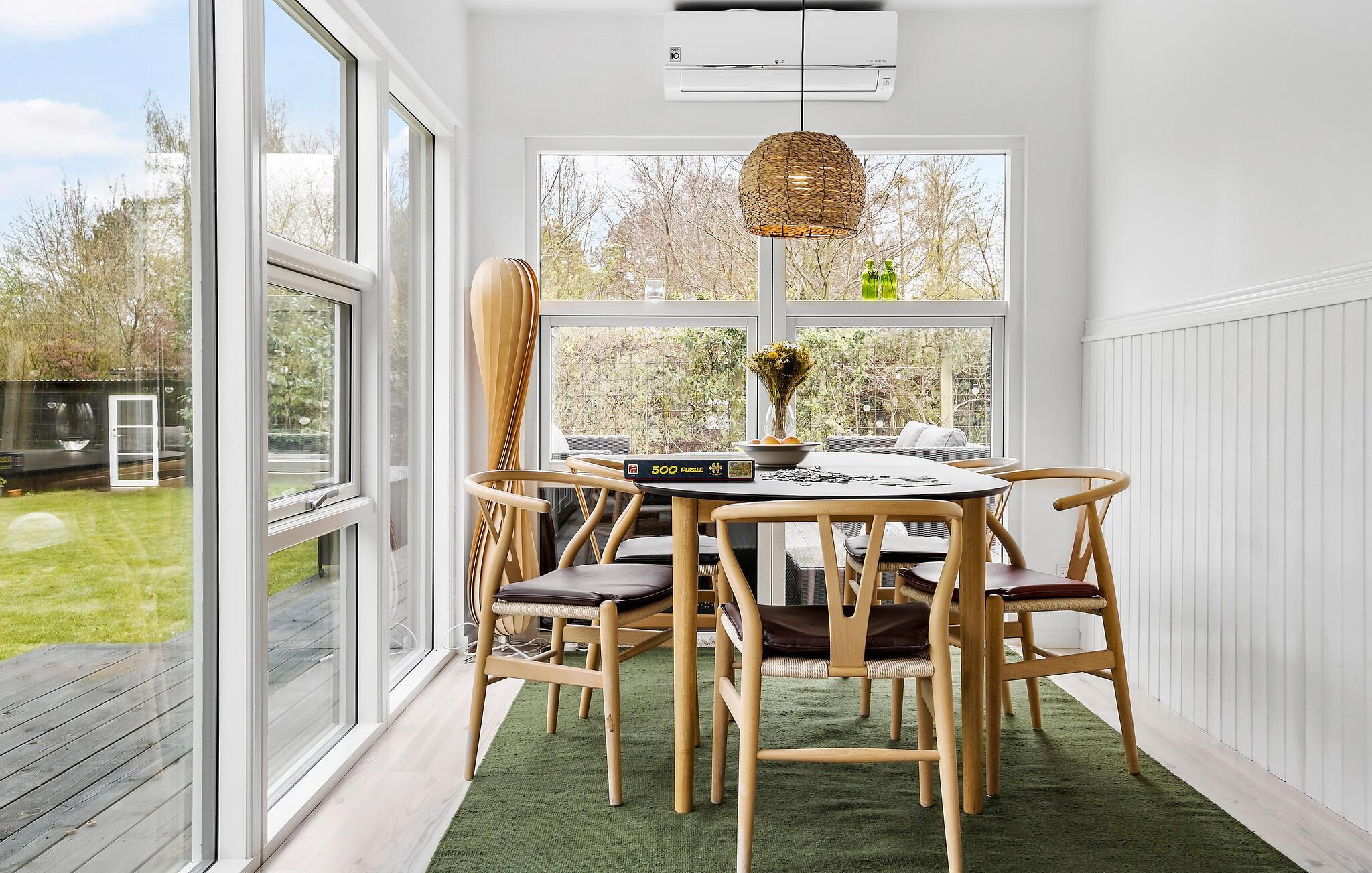 Tag familien under armen og rejs til Røsnæs, Hvor I i dette lækre træhus får de ideelle betingelser til årets bedste uger i godt selskab. Indretningen fremtræder yderst flot og stilsikkert, og med de moderne faciliteter får I alt, I behøver for at kunne sænke skuldrene og bare nyde. Hvis vejret bider lidt, kan I blive indendøre og tænde op i brændeovnen, der giver varme og et hyggeligt lydtapet til madlavningen i det veludstyrede køkken. Nyd måltiderne med en dejlig udsigt til haven, inden I runder aftenen af med snacks, brætspil eller en god film i sofaen.