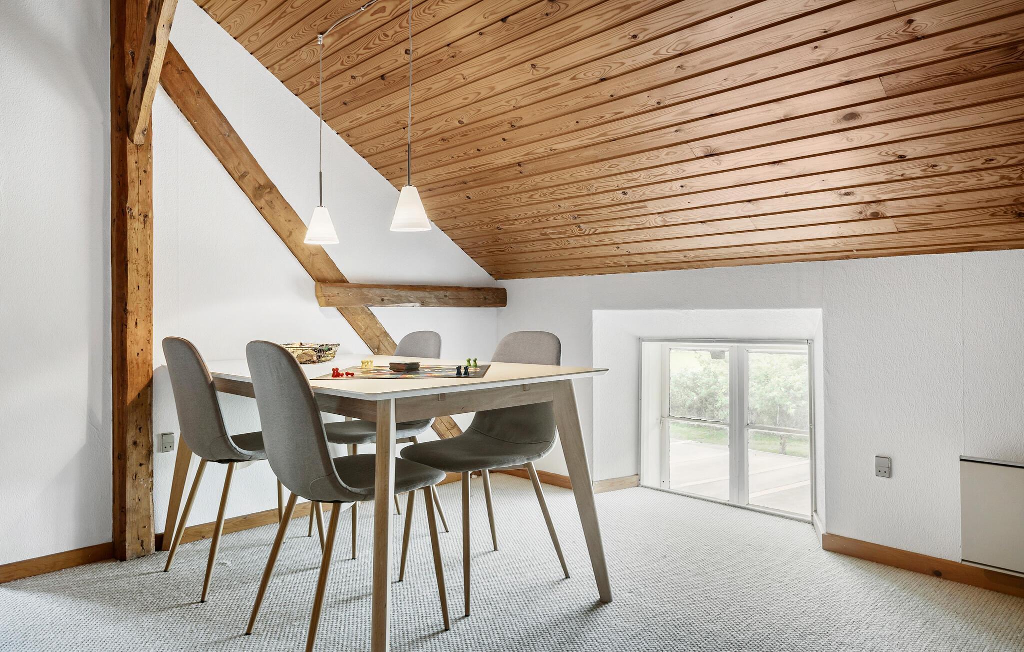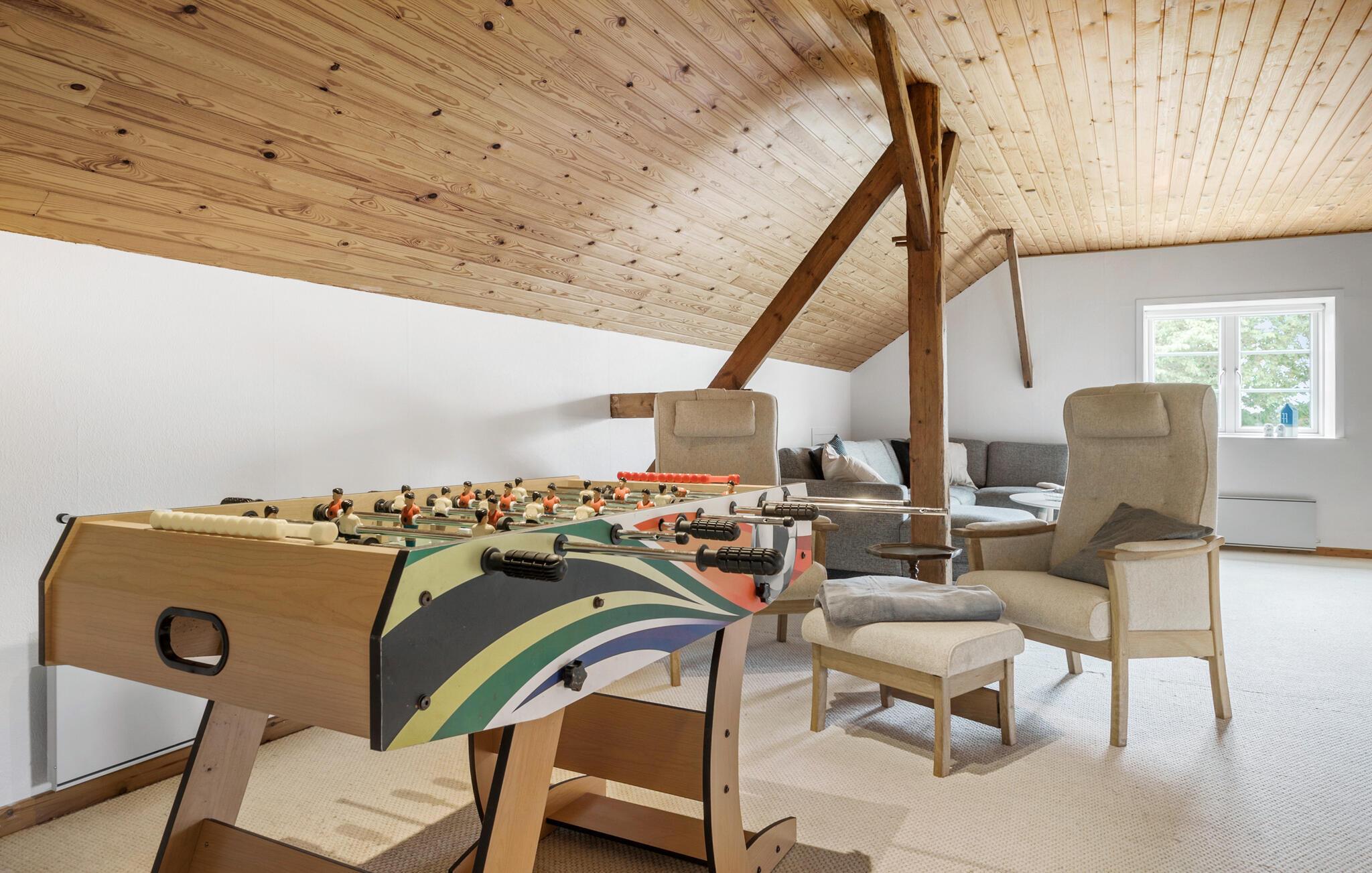 Der er lagt op til nogle herlige feriedage i Rejsby, hvor I kan se frem til fultonet landidyl og en flot, velholdt feriebolig. Huset er dejligt rummeligt og ligger ud til maleriske omgivelser, så her får I det optimale udgangspunkt for nogle afslappende dage med hele familien. Begynd dagene med en rolig morgenstund i det moderne spisekøkken, hvor I kan nyde husets elegante indretningsløsninger. Boligen emmer af lys, luft og elegance, så her sænker skuldrene sig nemt, og I skal bare koncentrere jer om at holde fri. Efter dagens program kan I læne jer tilbage i sofaerne eller sætte jer til rette i udestuen, hvor I har udsigt til de grønne marker rundt om huset. Her kan I også dække op til dagens måltider, læse en bog i fred og ro eller nyde en kop kaffe. På øverste etage er der et spillelokale med et bordfodboldbord, som især vil glæde de yngre gæster.