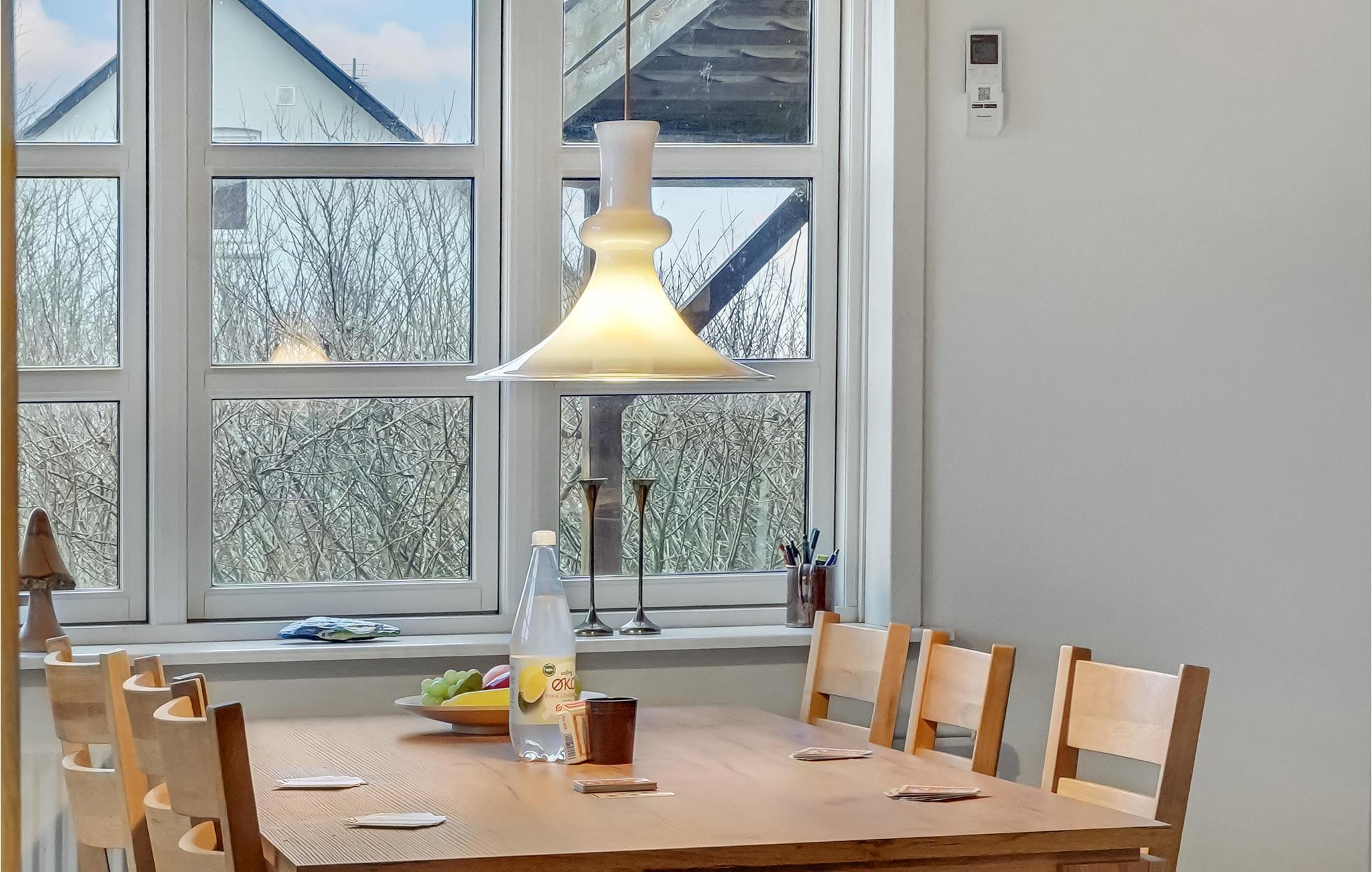 Velkommen til dette store og hjemlige feriehus, der tilbyder jeres store familie den ideelle feriebolig. Nyd jeres privatliv i soveværelserne i stueetagen eller lav mad sammen i køkkenet. På 1. sal byder en indbydende stue velkommen, hvor I kan hygge jer, se film eller spille brætspil. Den tilstødende solterrasse er det perfekte sted at slikke sol eller nyde jeres yndlingsretter i det fri med udsigt over fjorden.