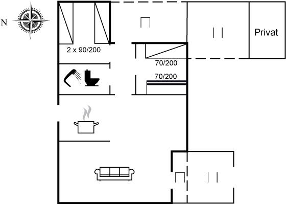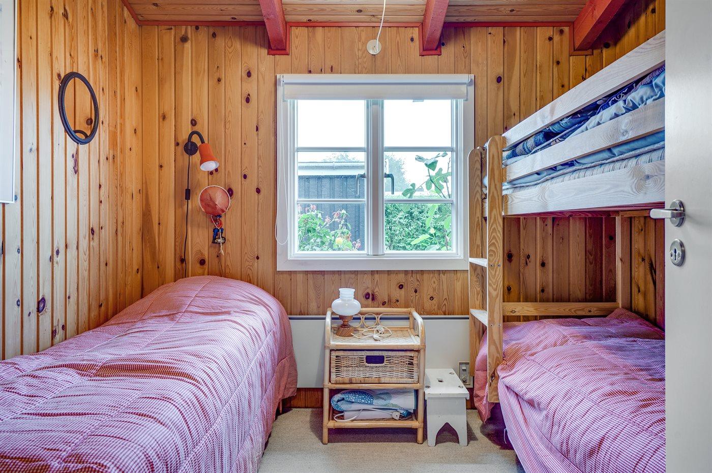 Der er i alt 2 soveværelser. Sovepladserne fordeler sig på: 3 sovepladser i enkeltsenge. 2 sovepladser i køjeseng.