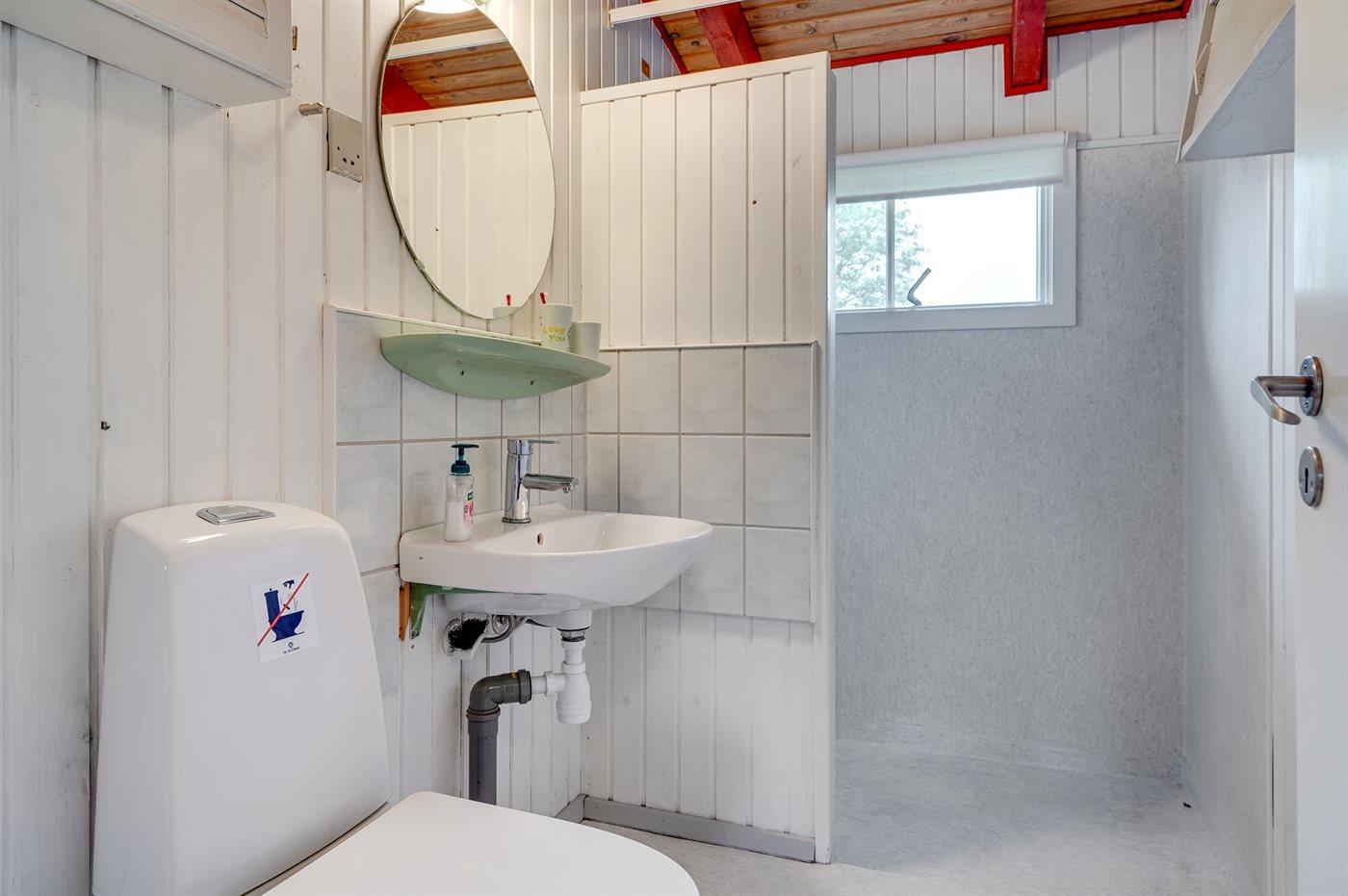 Der er 1 badeværelse med bruseniche og 1 toilet.