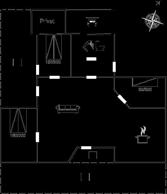 Der er i alt 3 soveværelser. Sovepladserne fordeler sig på: 4 sovepladser i dobbeltsenge. 1 soveplads i enkeltseng. Derudover er der 1 stk. barneseng.