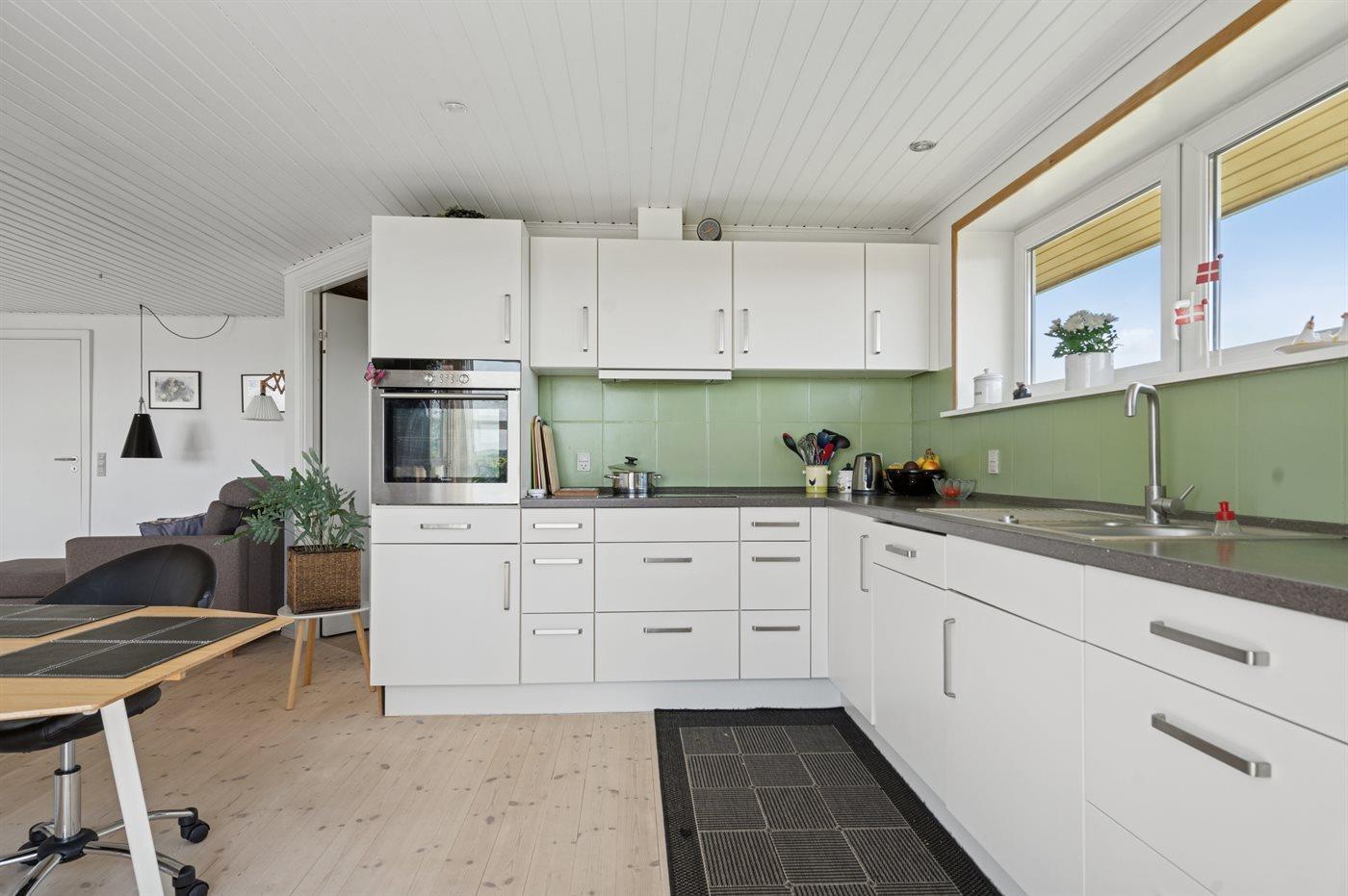 Køkkenet er udstyret med 1 køleskab. Der er 4 induktionskogeplader, varmluftovn, mikrobølgeovn samt opvaskemaskine.