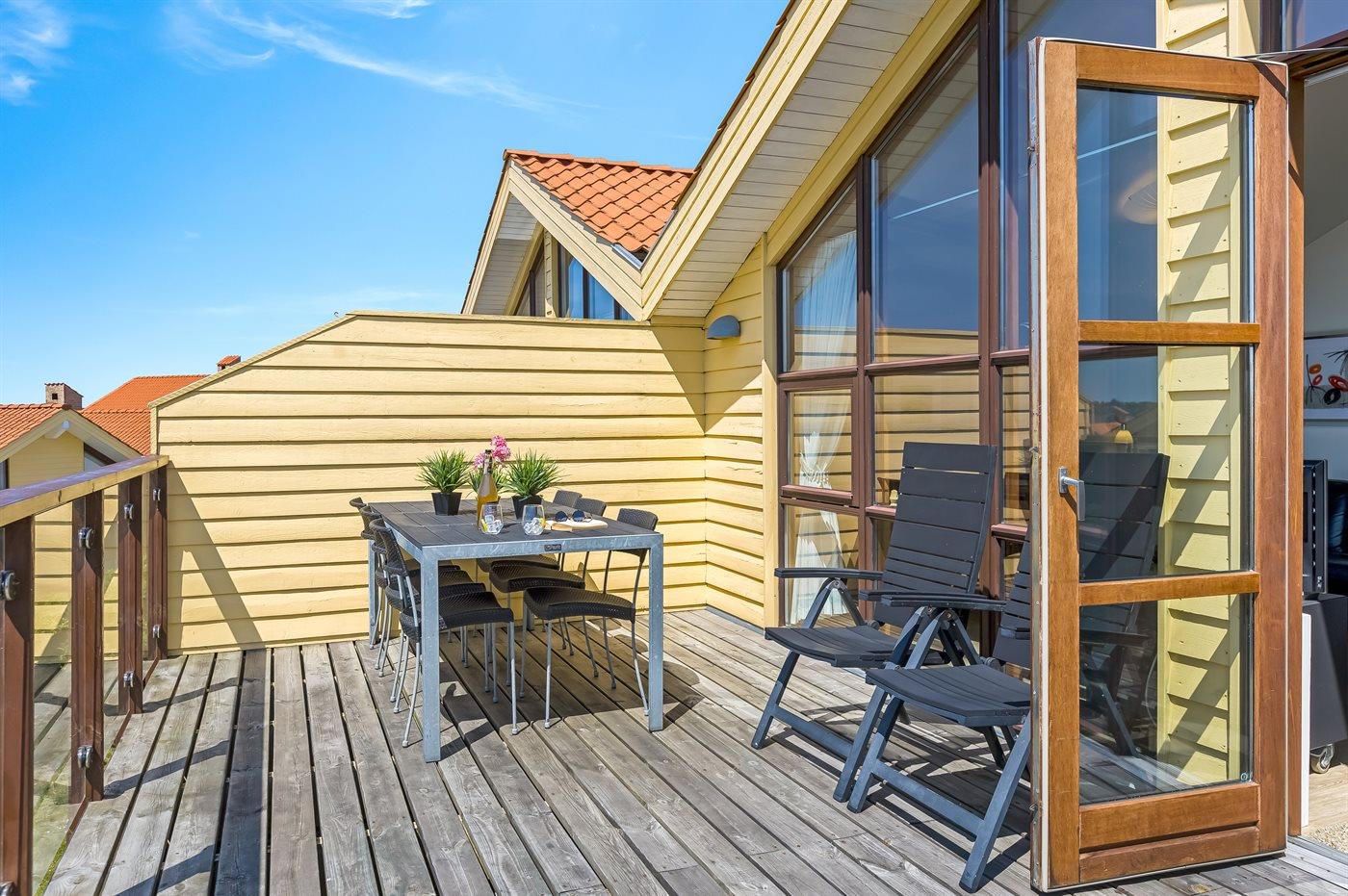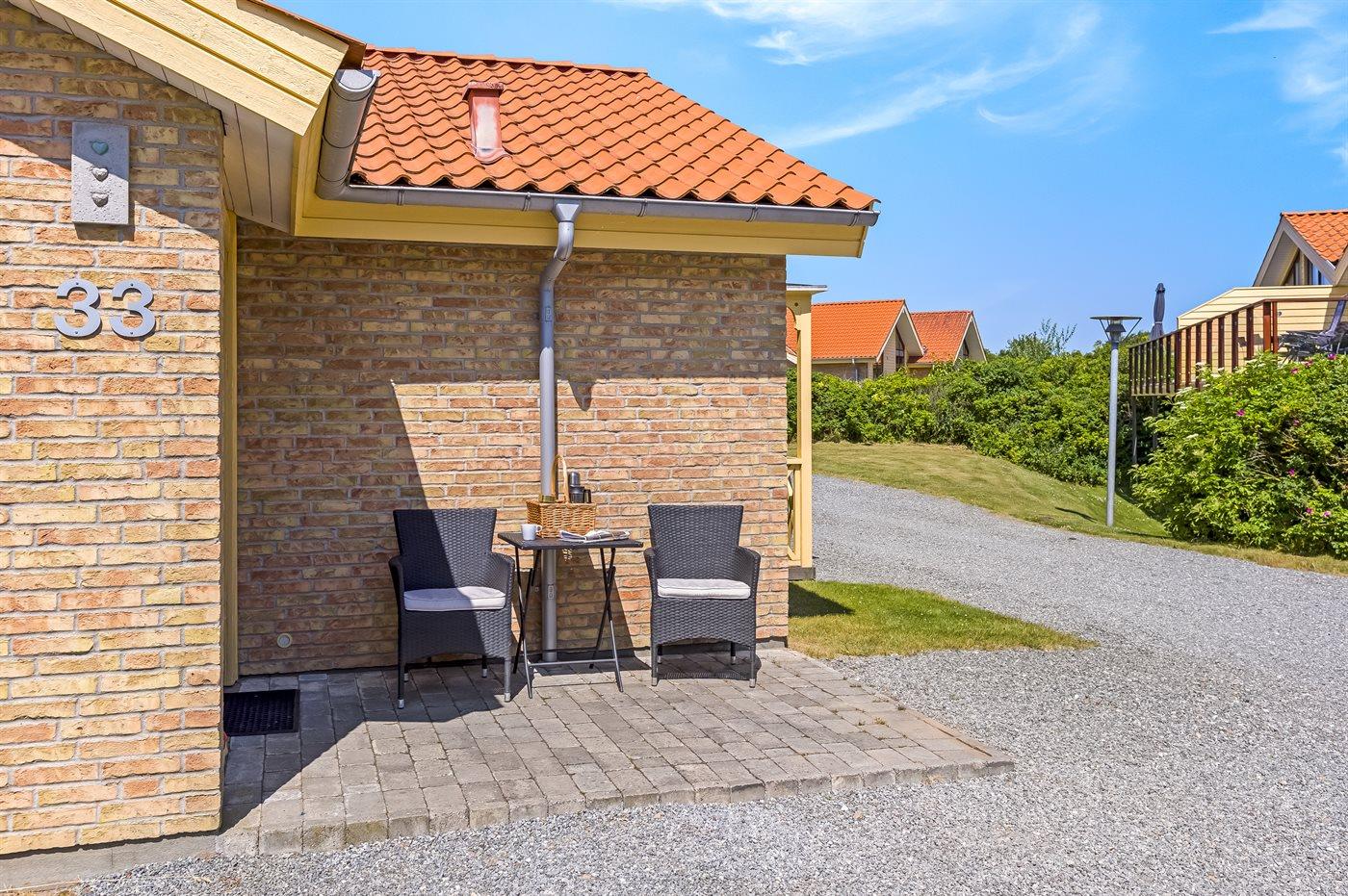 Ferieboligen er beliggende på en 260 m² stor naturgrund. Der er 100 m til havet. Nærmeste forretning er beliggende i en afstand af 4000 m. Der er en golfbane i en afstand af 12000 m. Til ferieboligen hører åbent terrasseareal. Desuden er der overdækket terrasse. Der er redskabsrum. Grill til rådighed. Parkering ved ferieboligen.
