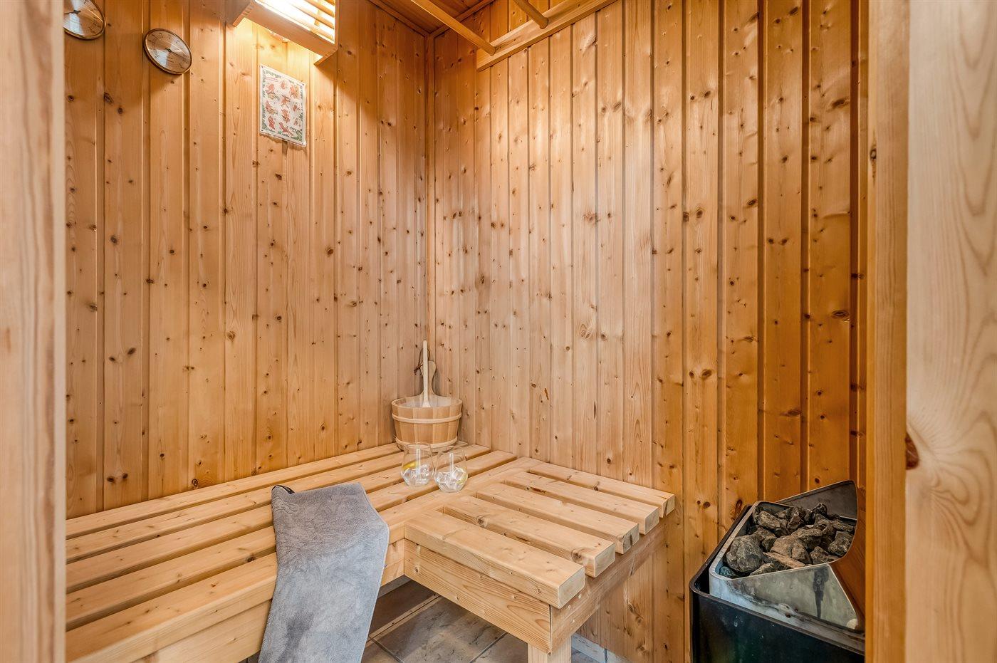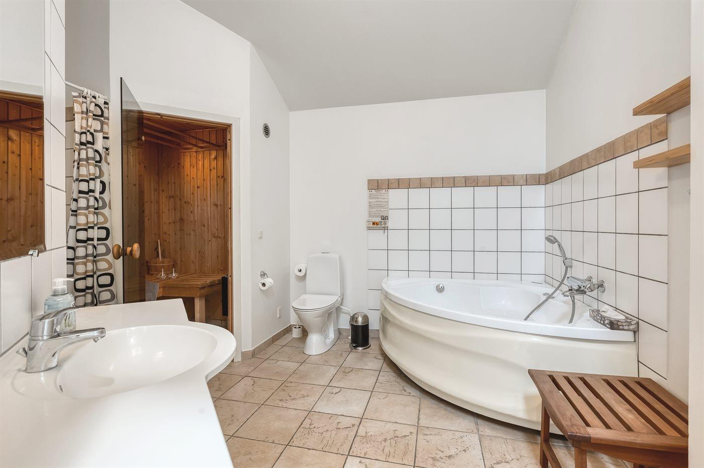 Der er 1 badeværelse med bruseniche og 2 toiletter. Der er gulvvarme på 1 badeværelse. Der er gulvvarme på gæstetoilettet. I saunaen er der mulighed for afslapning.